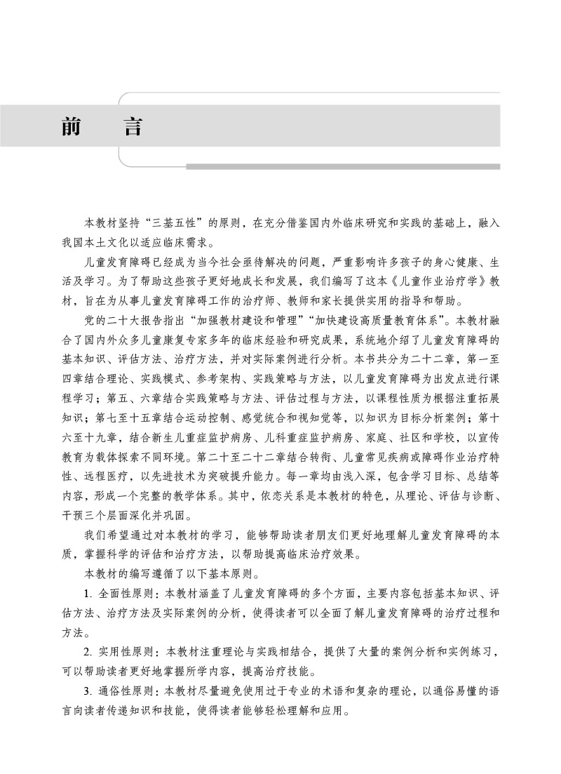 本教材系科学出版社“十四五”普通高等教育本科规划教材之一。本书系统介绍了儿童作业治疗的理论、实践模式、参考架构、实践策略与方法、评估等,以知识为目标分析案例,内容涵盖广泛且深入,旨在帮助儿童克服功能障碍,提升日常生活能力和学习表现。