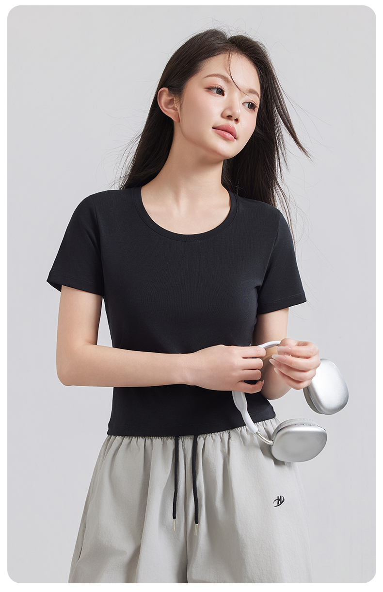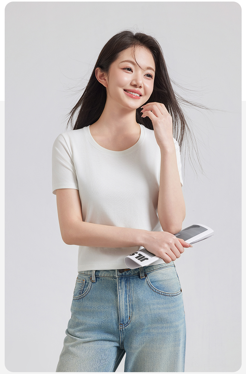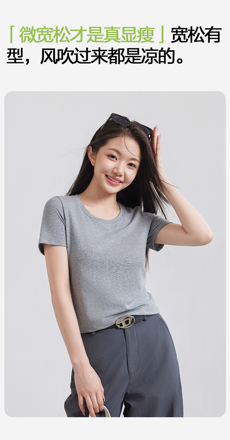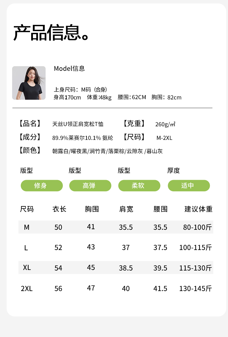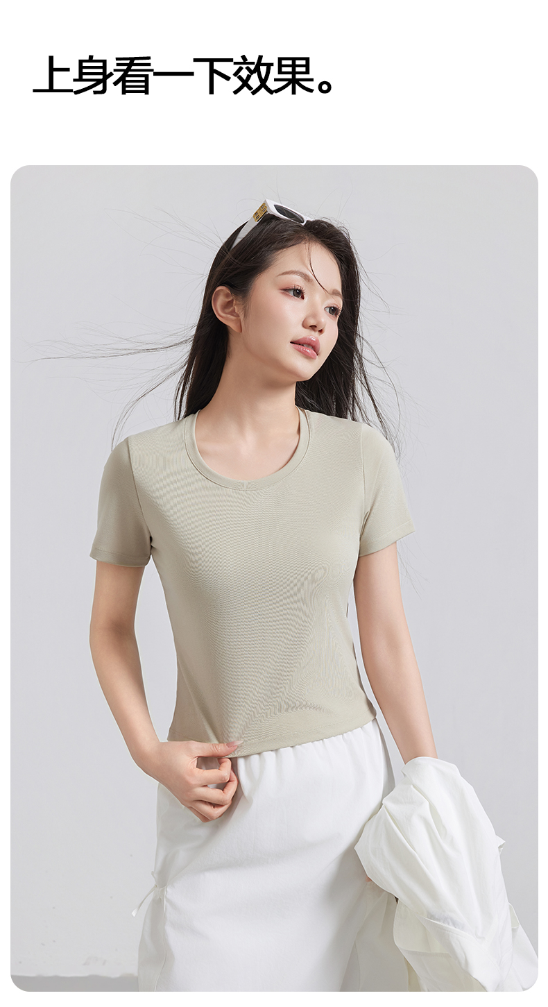 (合作款)天丝U领正肩宽松T恤yc0309026