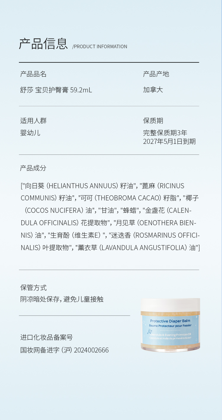 舒莎 宝贝护臀膏 59.2mL 加拿大进口 婴幼儿适用