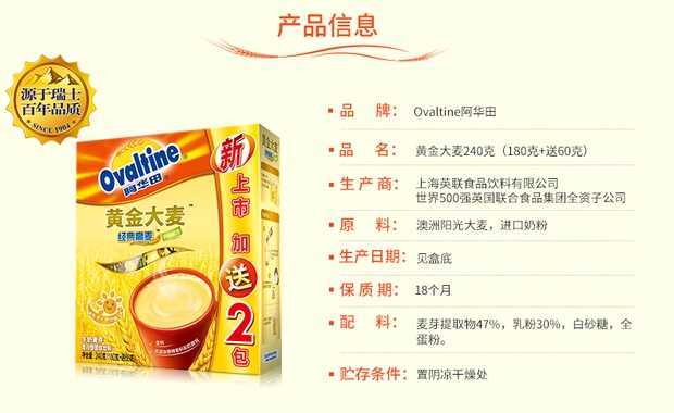 阿华田经典高麦随身包浓香牛奶味麦芽蛋白型固体饮料240g