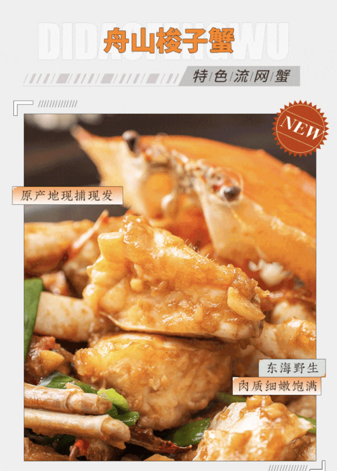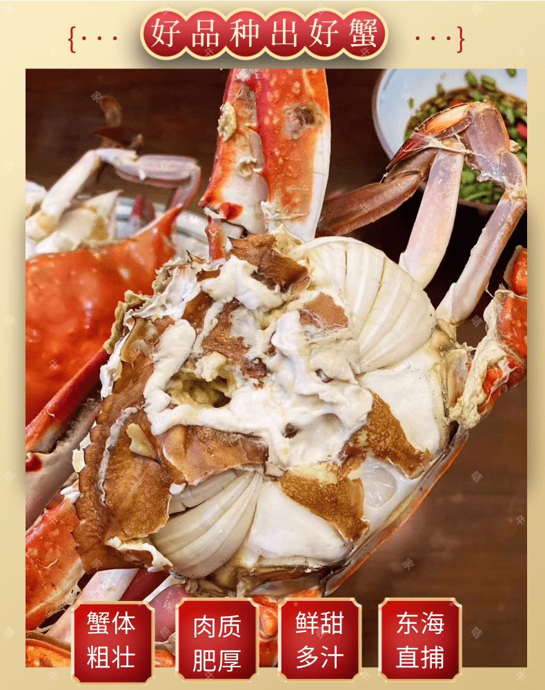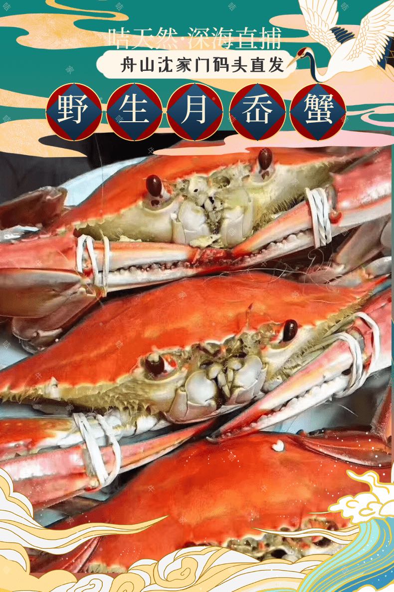 【产品优势】:舟山海域野生梭子蟹,肉质鲜美,充满大海的气息,肥美鲜嫩,咸鲜甘甜。