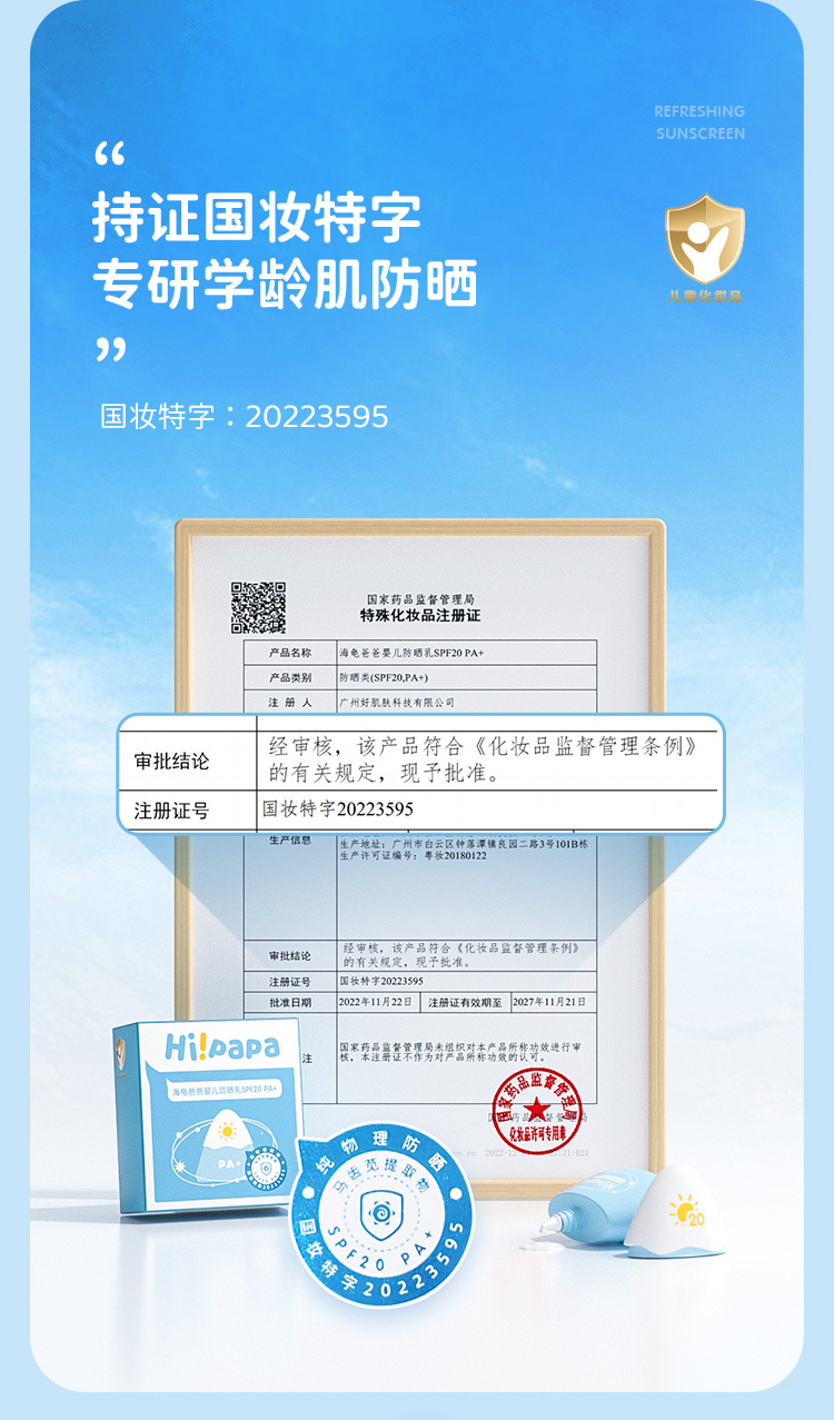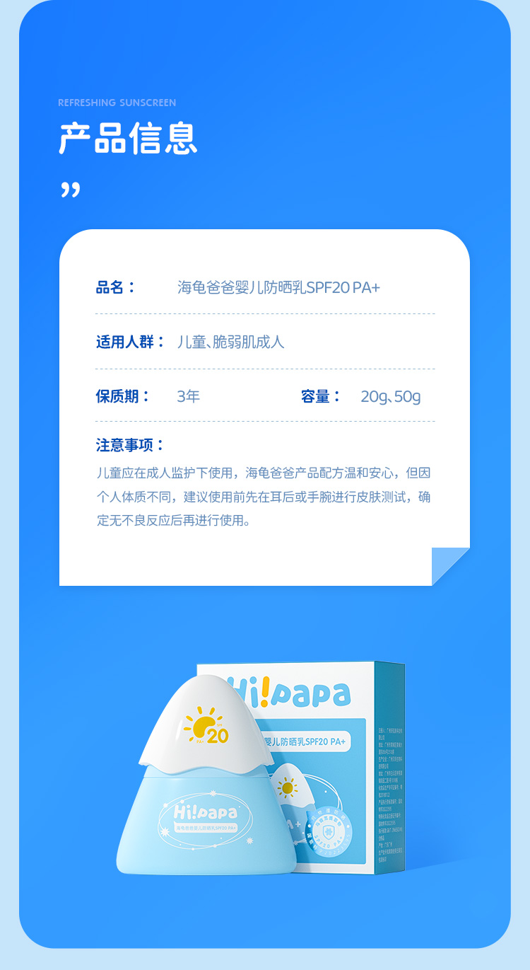 【品牌授权带防伪】 活动链接【海龟爸爸 小雪山防晒3.0版】海龟爸爸婴儿防晒乳SPF20 PA+(新款纯物理防晒)