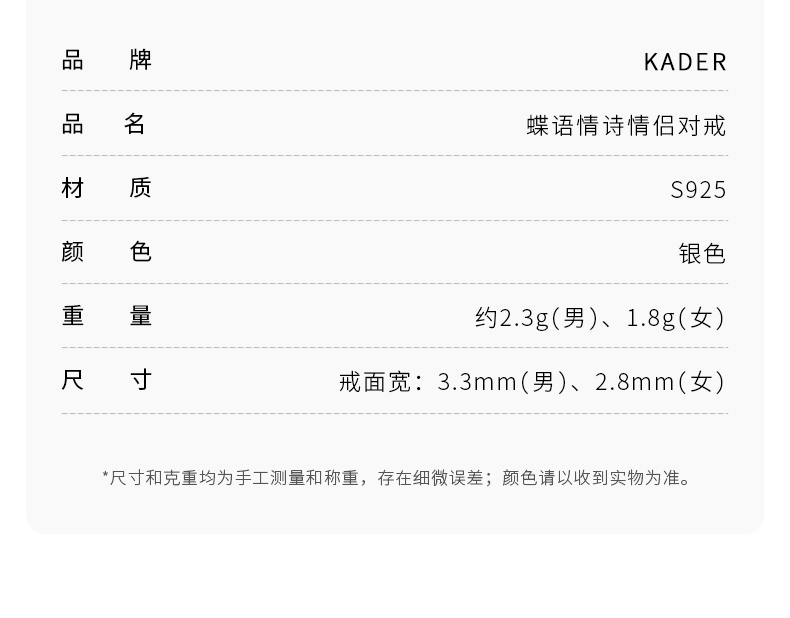 卡蒂罗/KADER 蝶语情丝情侣对戒 携刻蝴蝶对戒不规则纹理碎冰冰 轻奢气质高级感开口调节素圈 浪漫日常百搭#好运