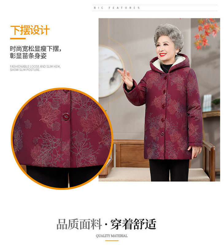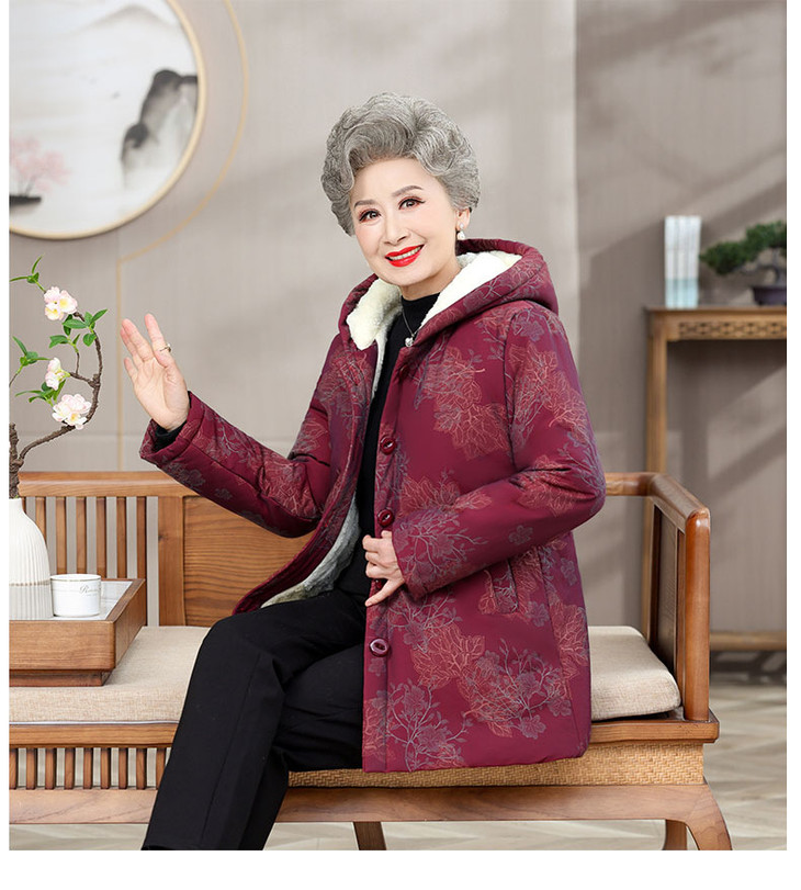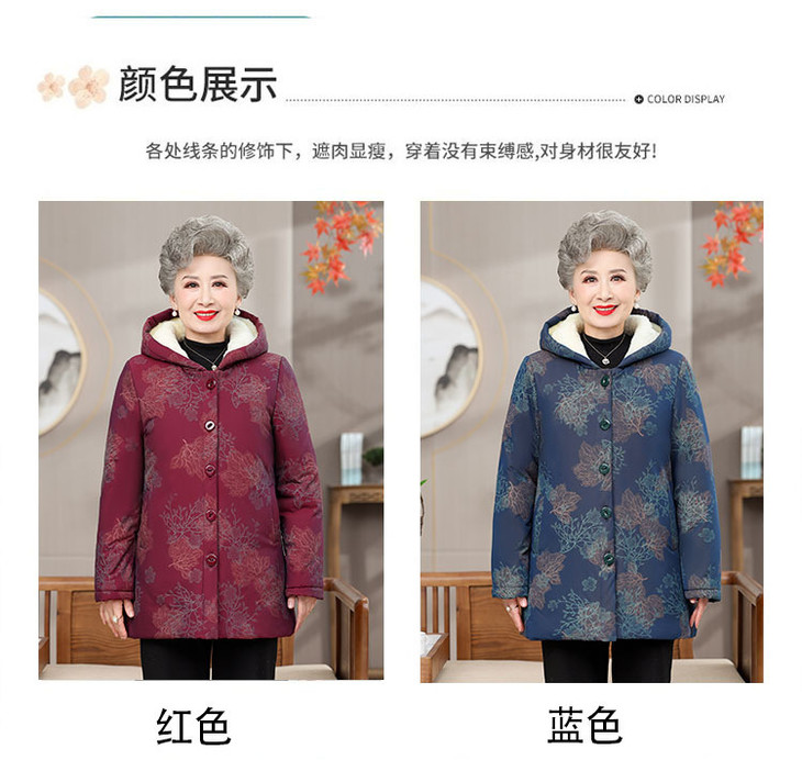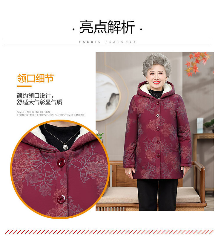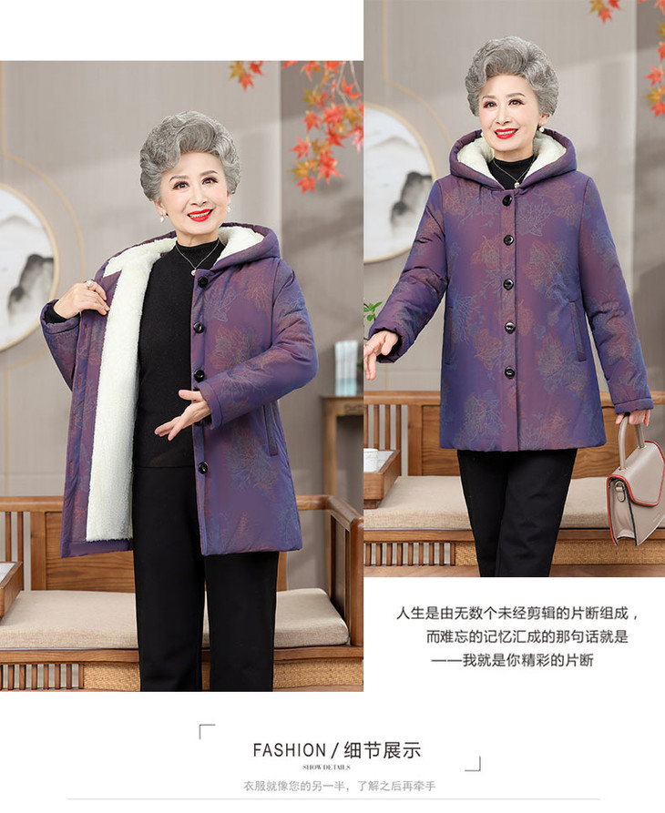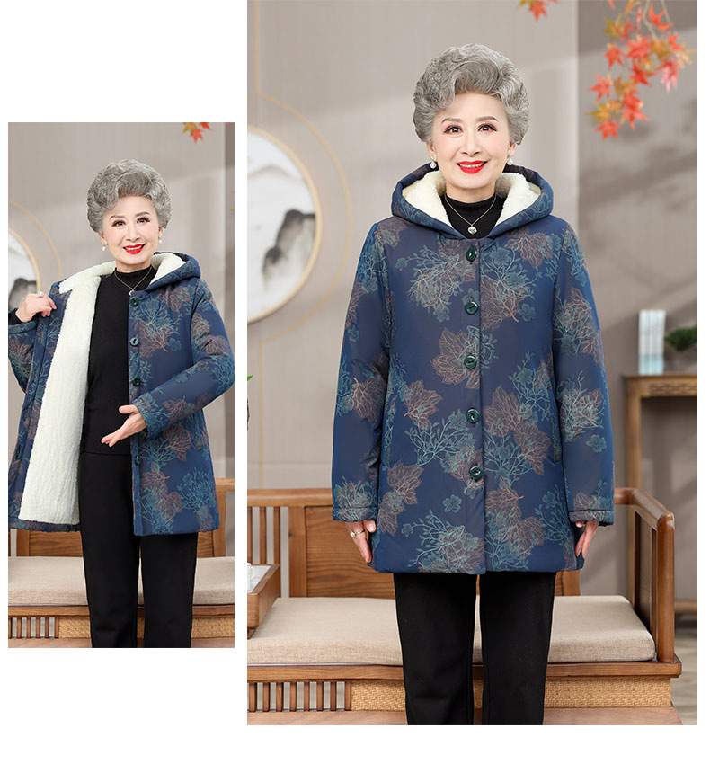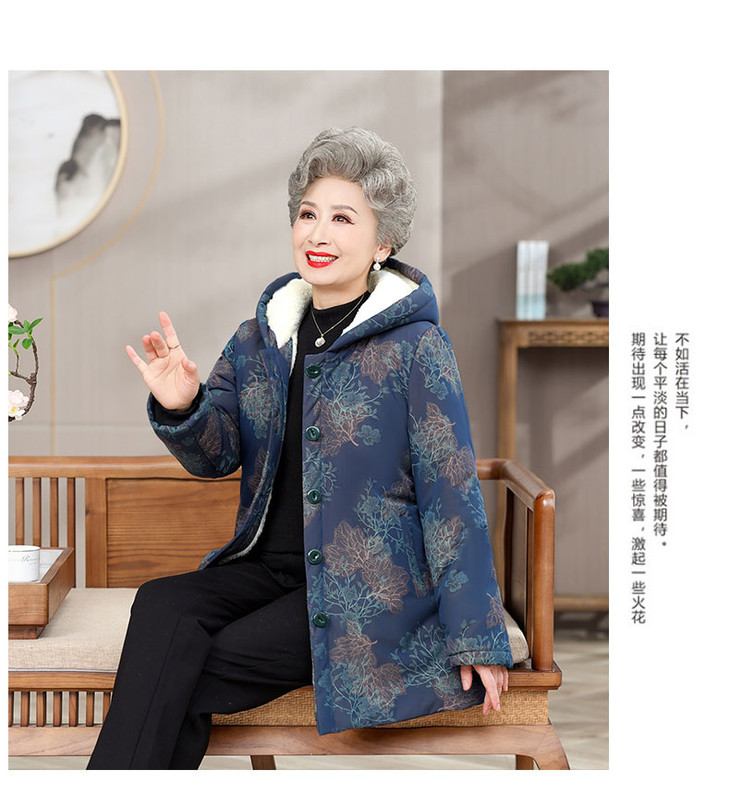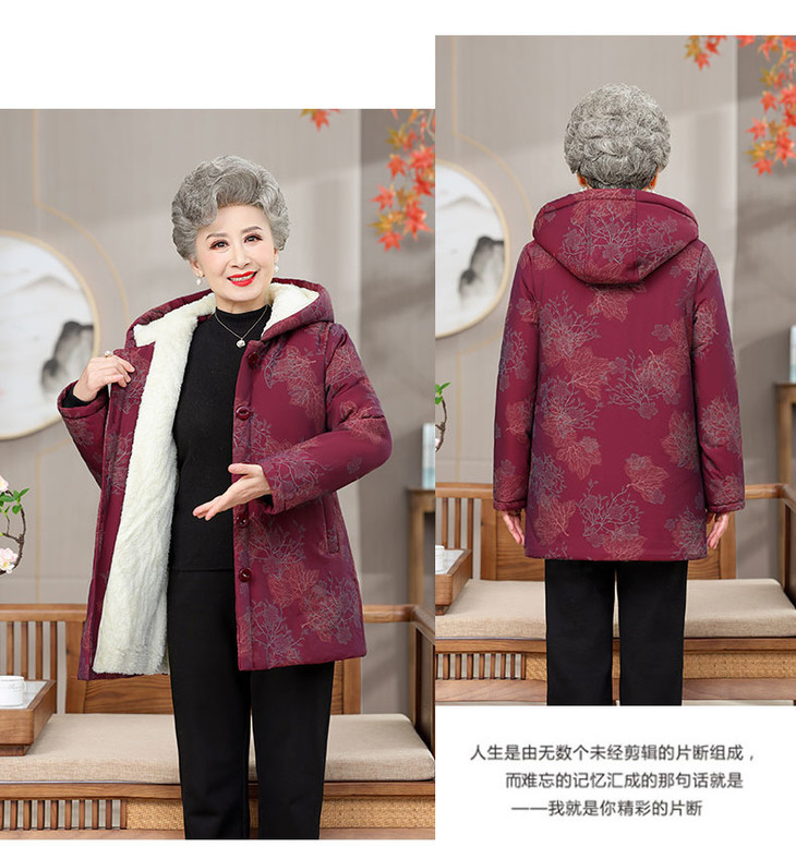 【70岁妈妈羊羔绒棉袄 】老年人冬装连帽棉衣女奶奶加绒加厚大码外套