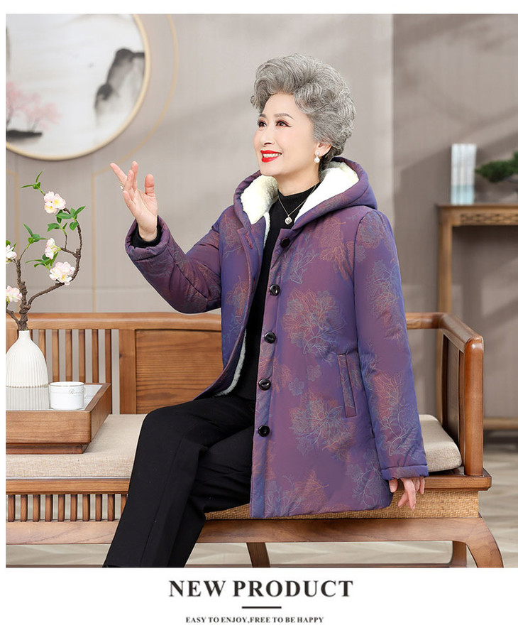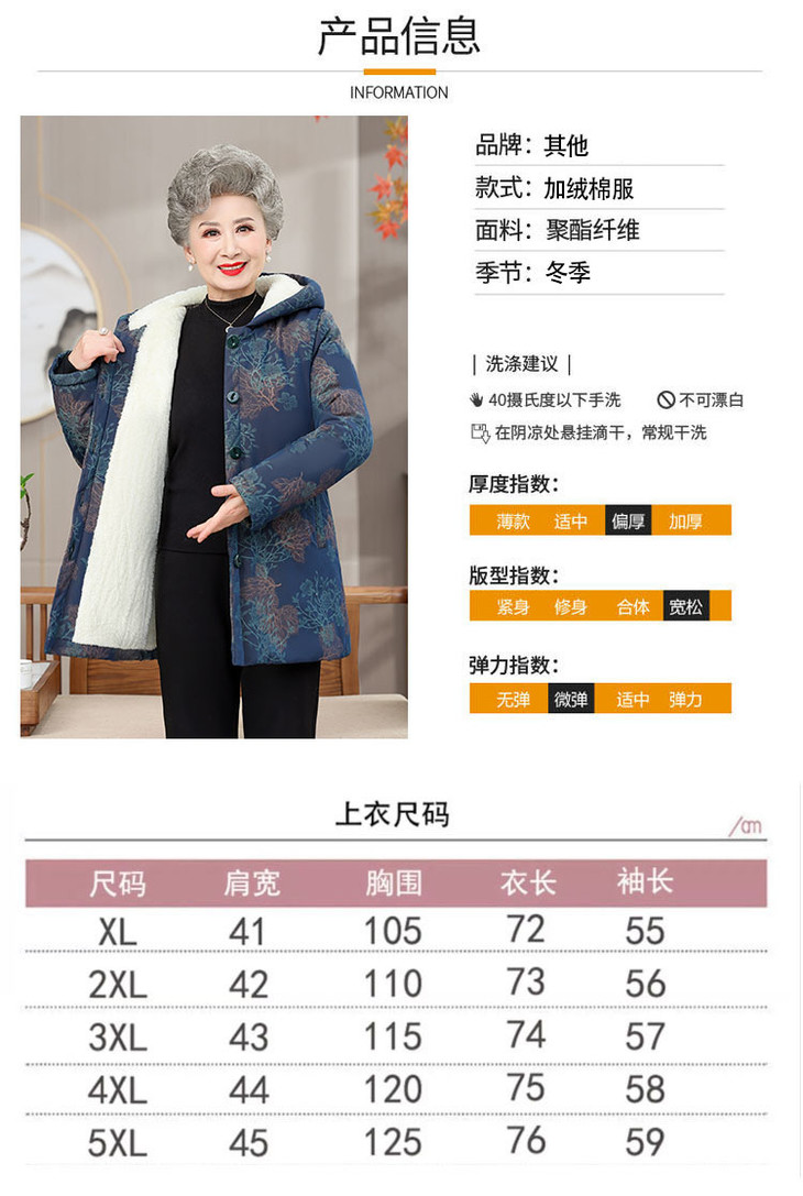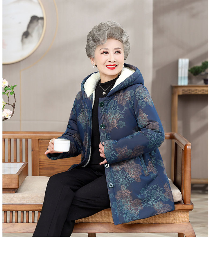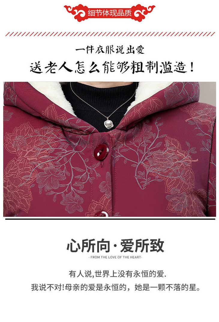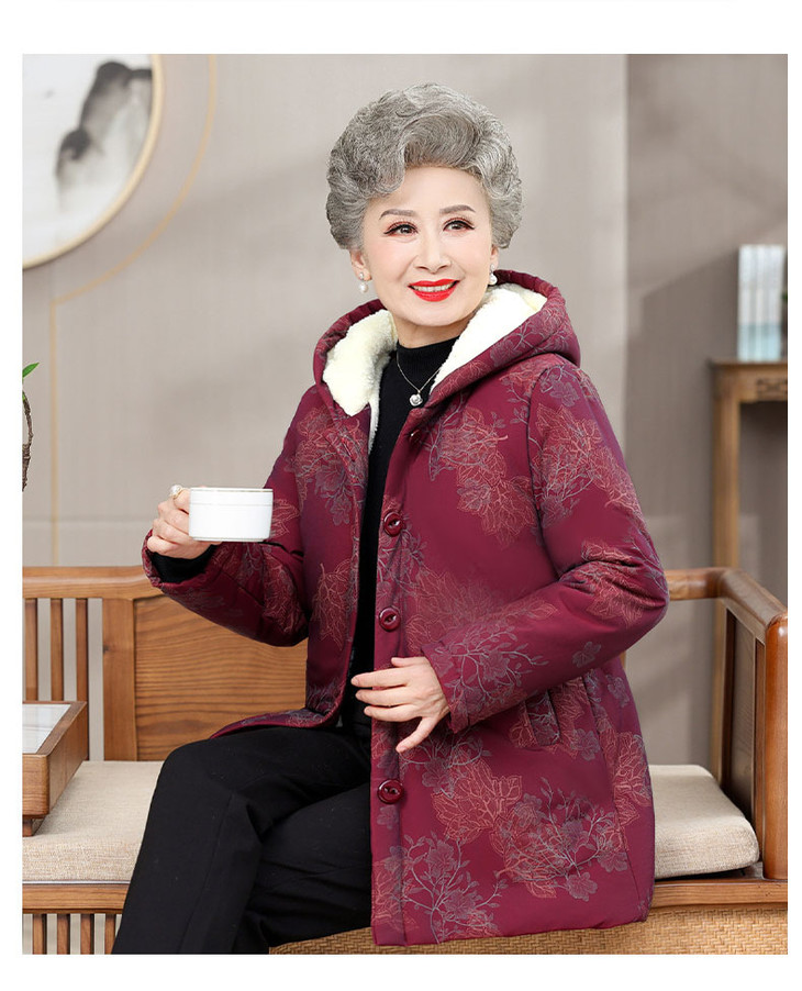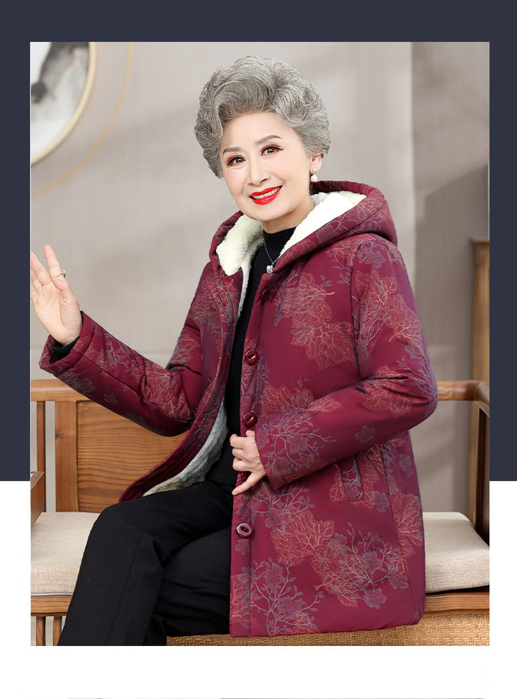 【70岁妈妈羊羔绒棉袄 】老年人冬装连帽棉衣女奶奶加绒加厚大码外套