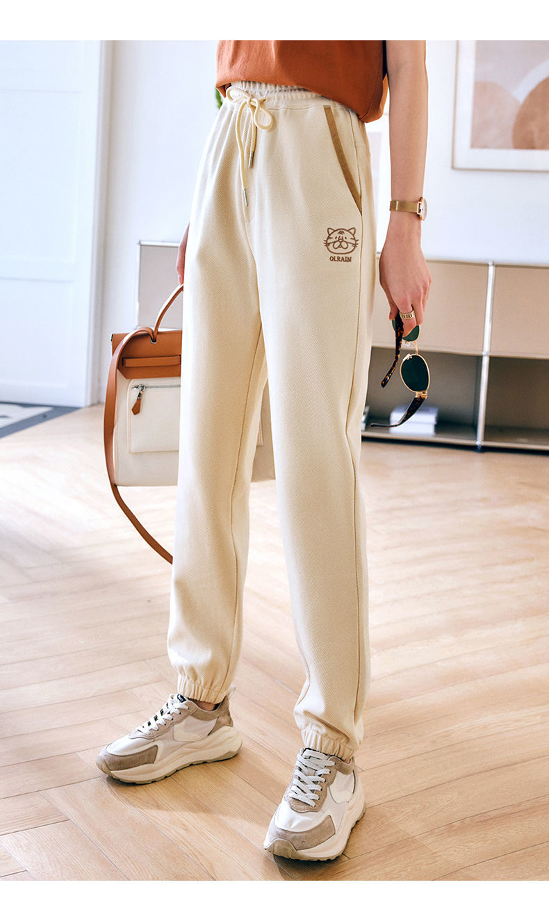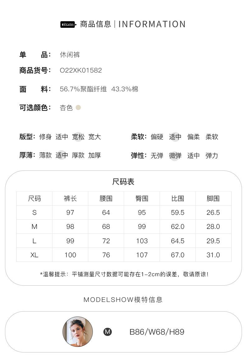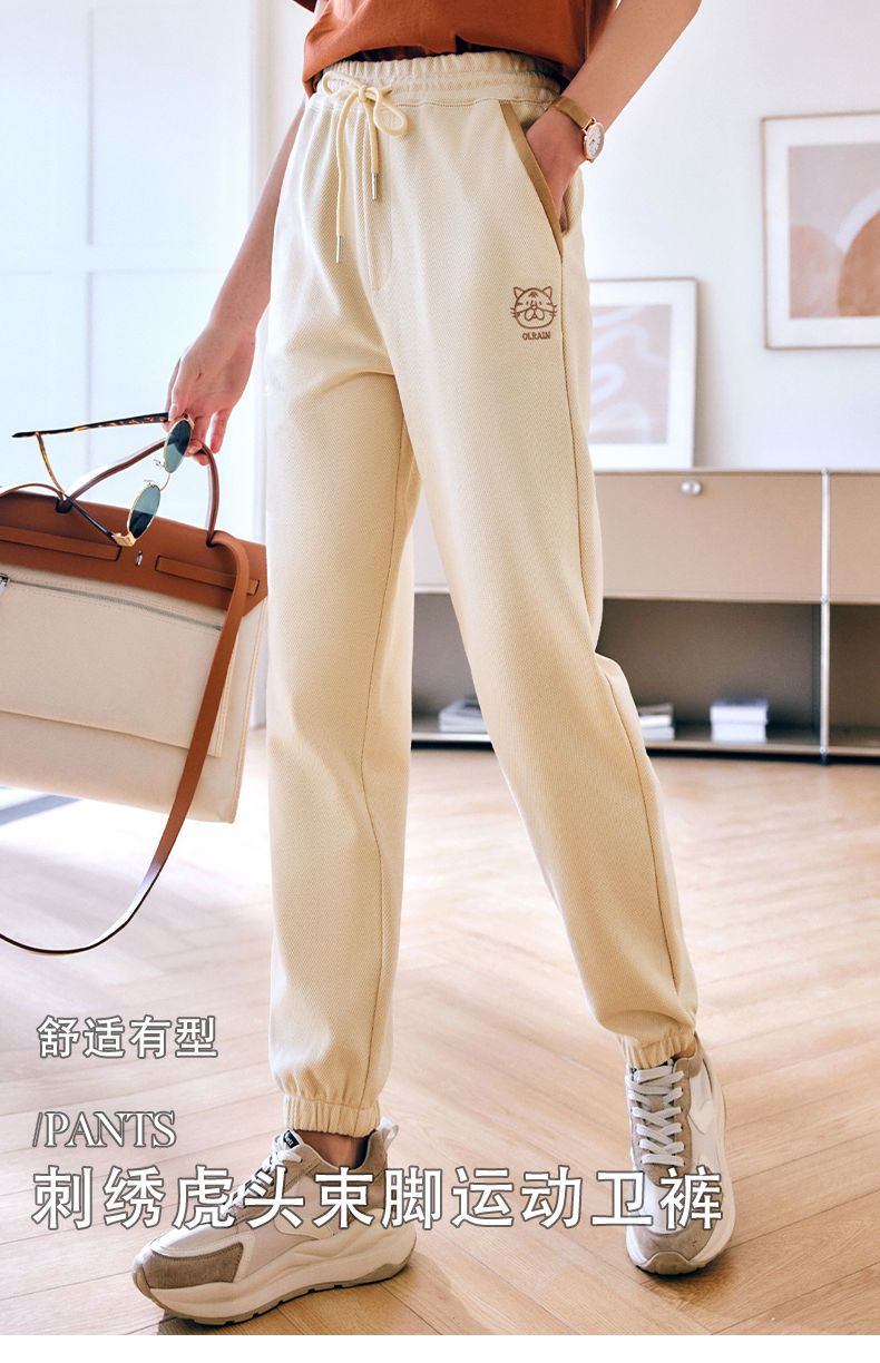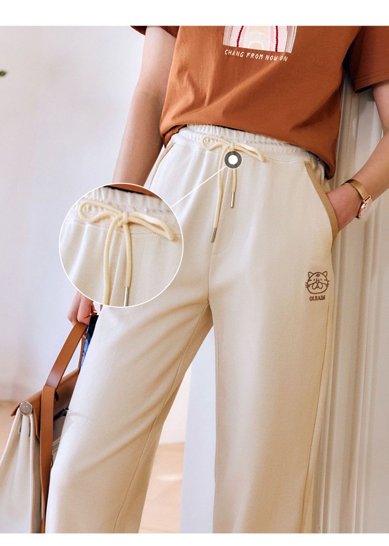 OLrain法式高级穿搭休闲裤女夏季2022年新款高腰直筒阔腿运动卫裤