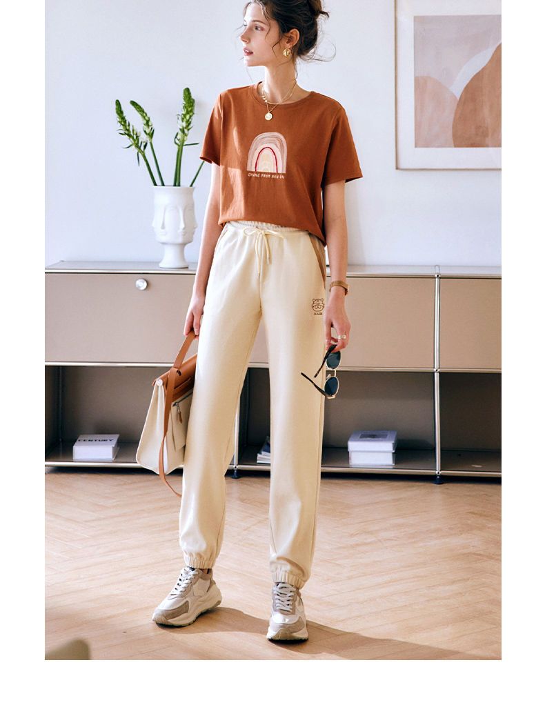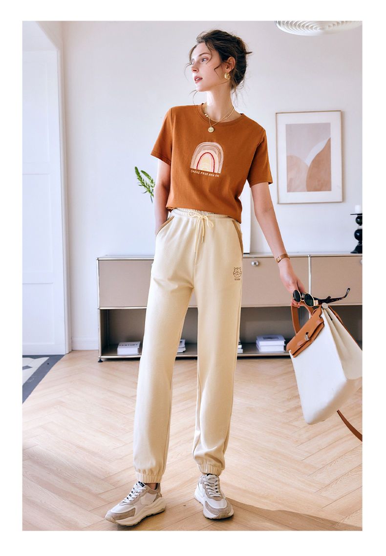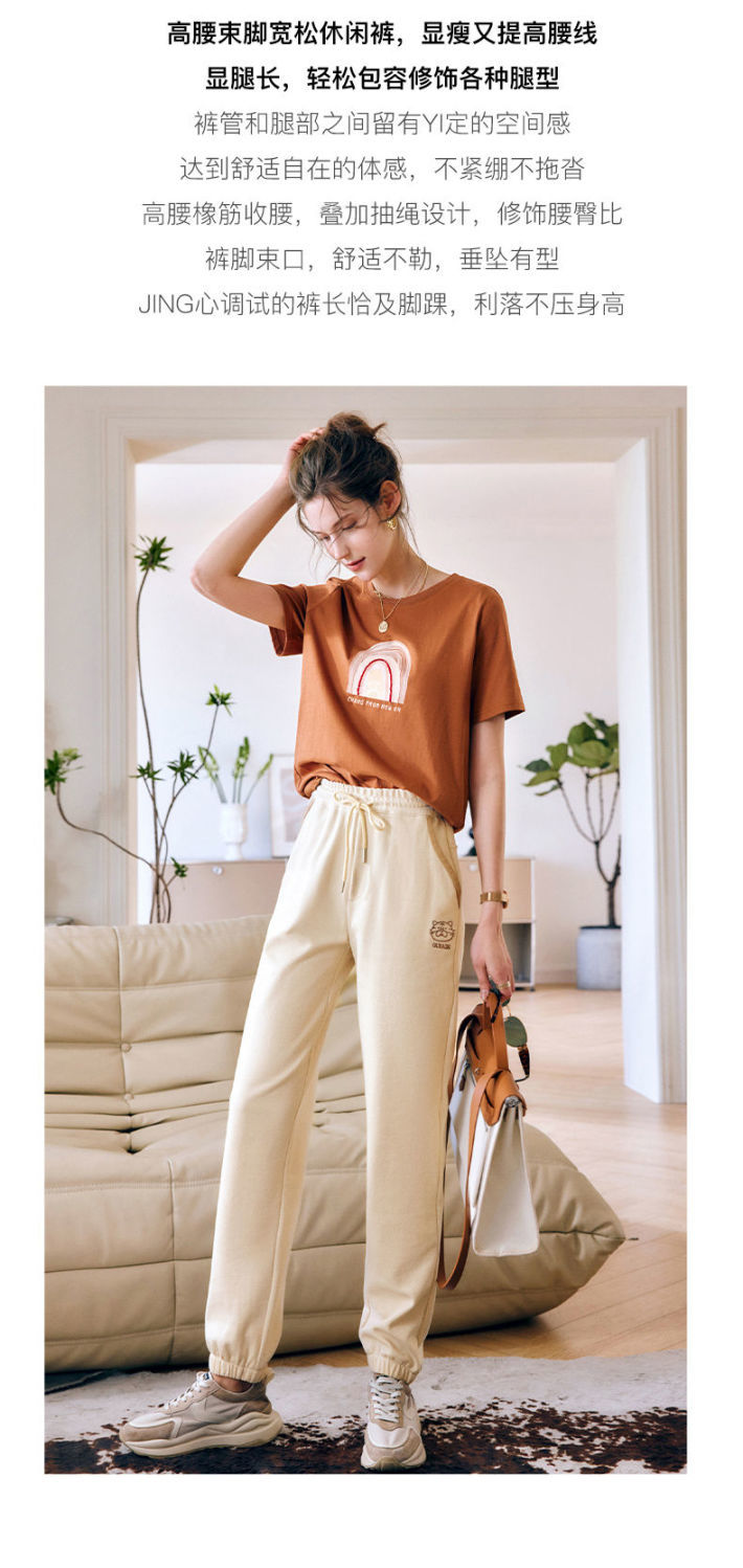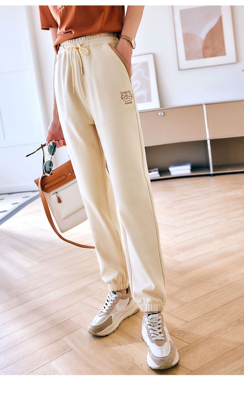 OLrain法式高级穿搭休闲裤女夏季2022年新款高腰直筒阔腿运动卫裤