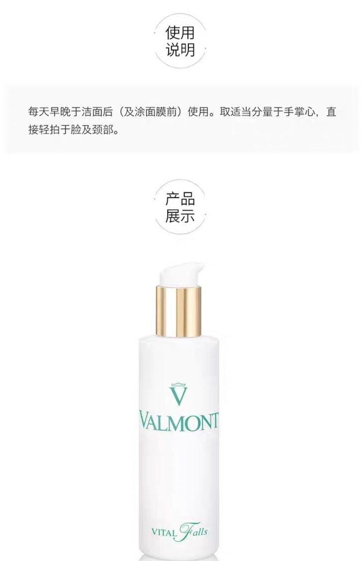 1、产品名称:Valmont/法尔曼生命之泉爽肤水