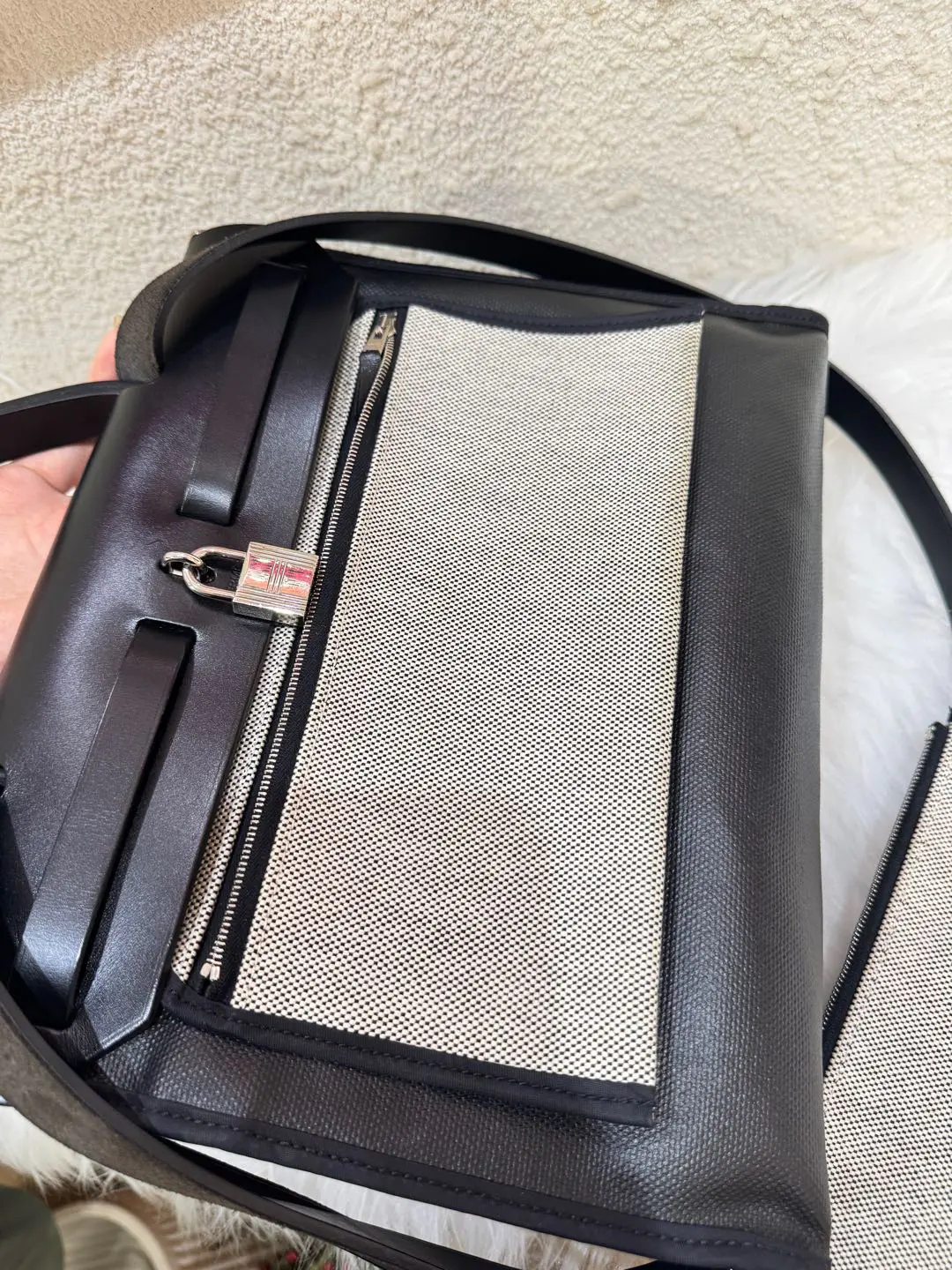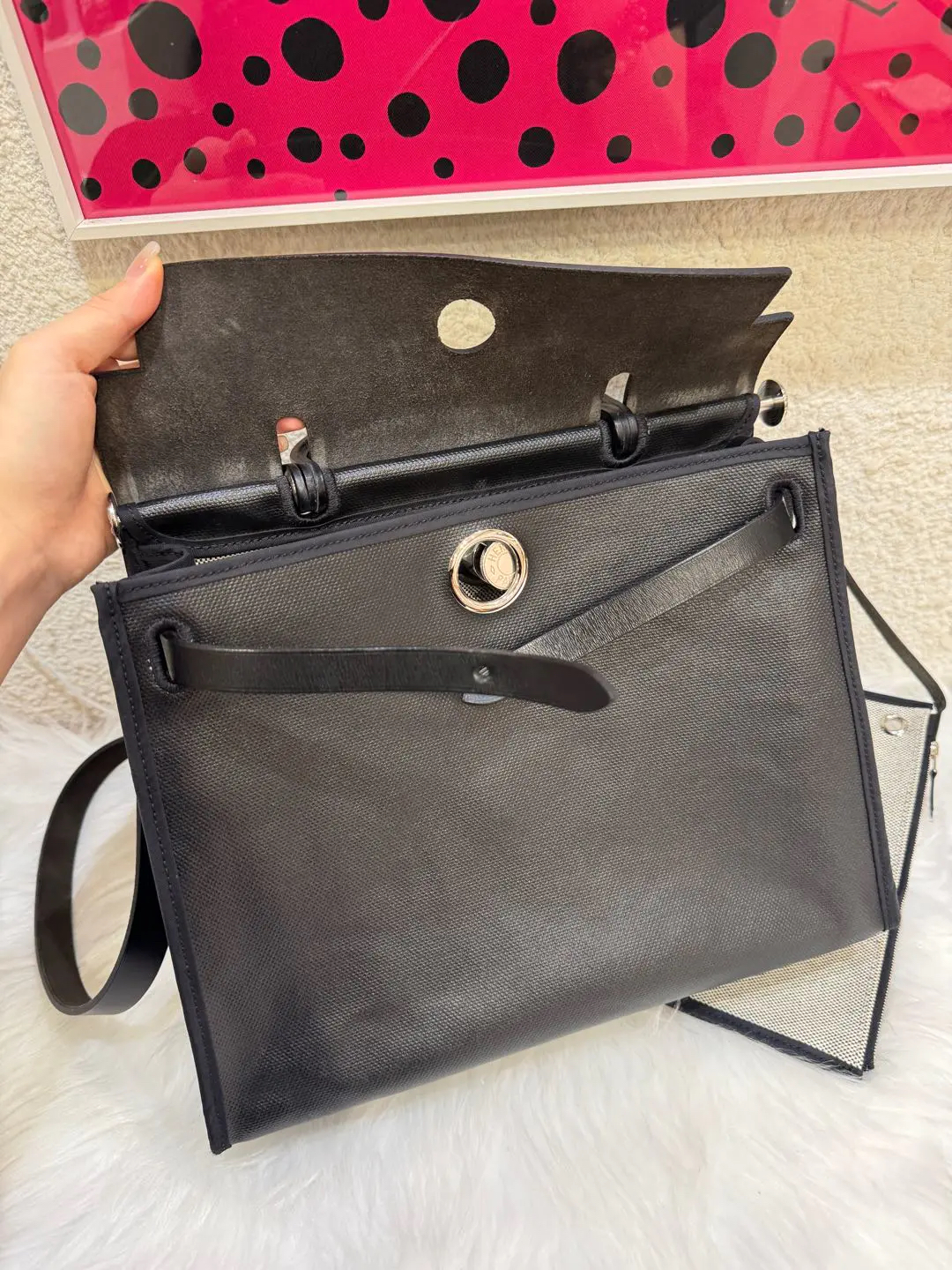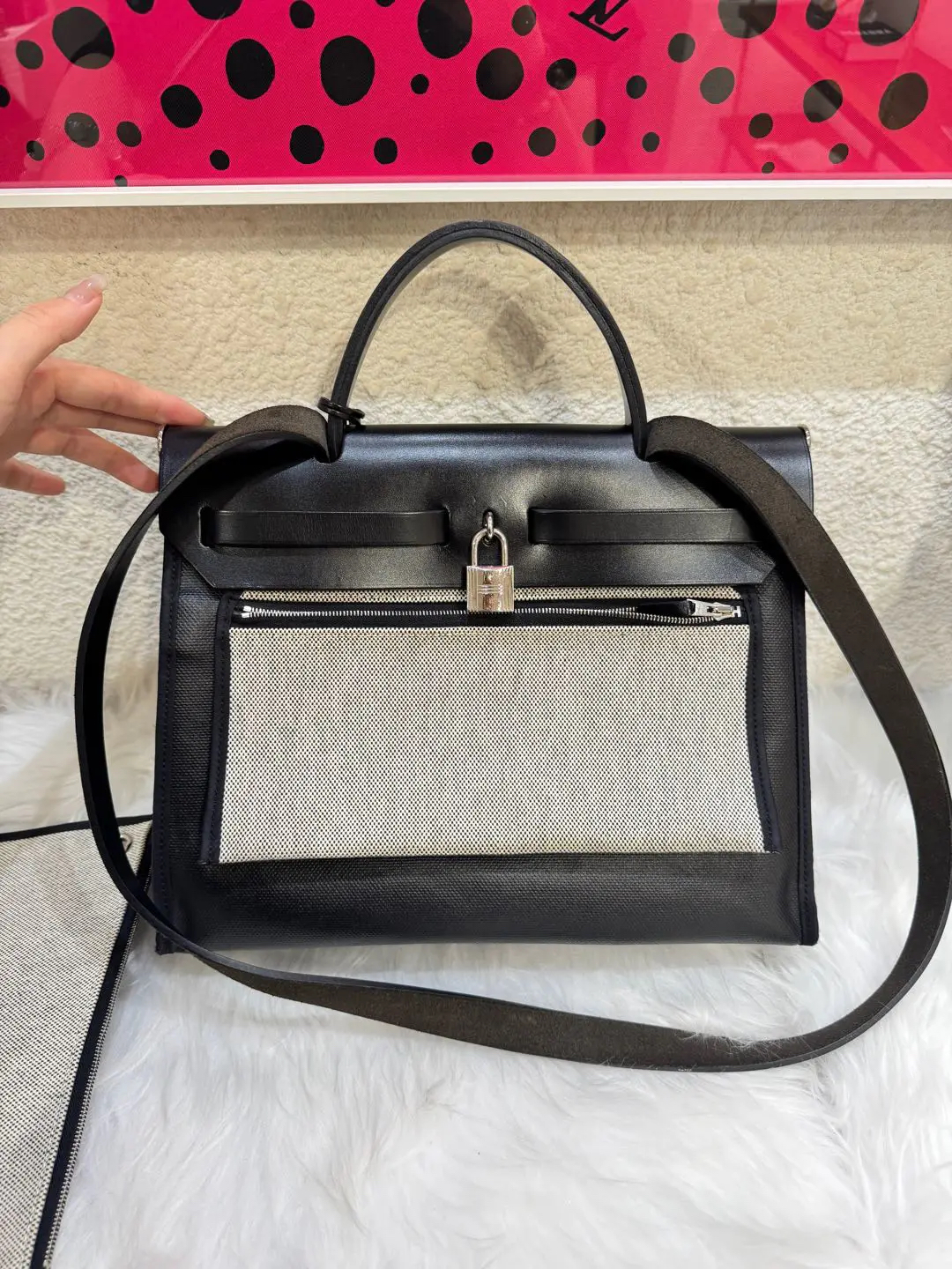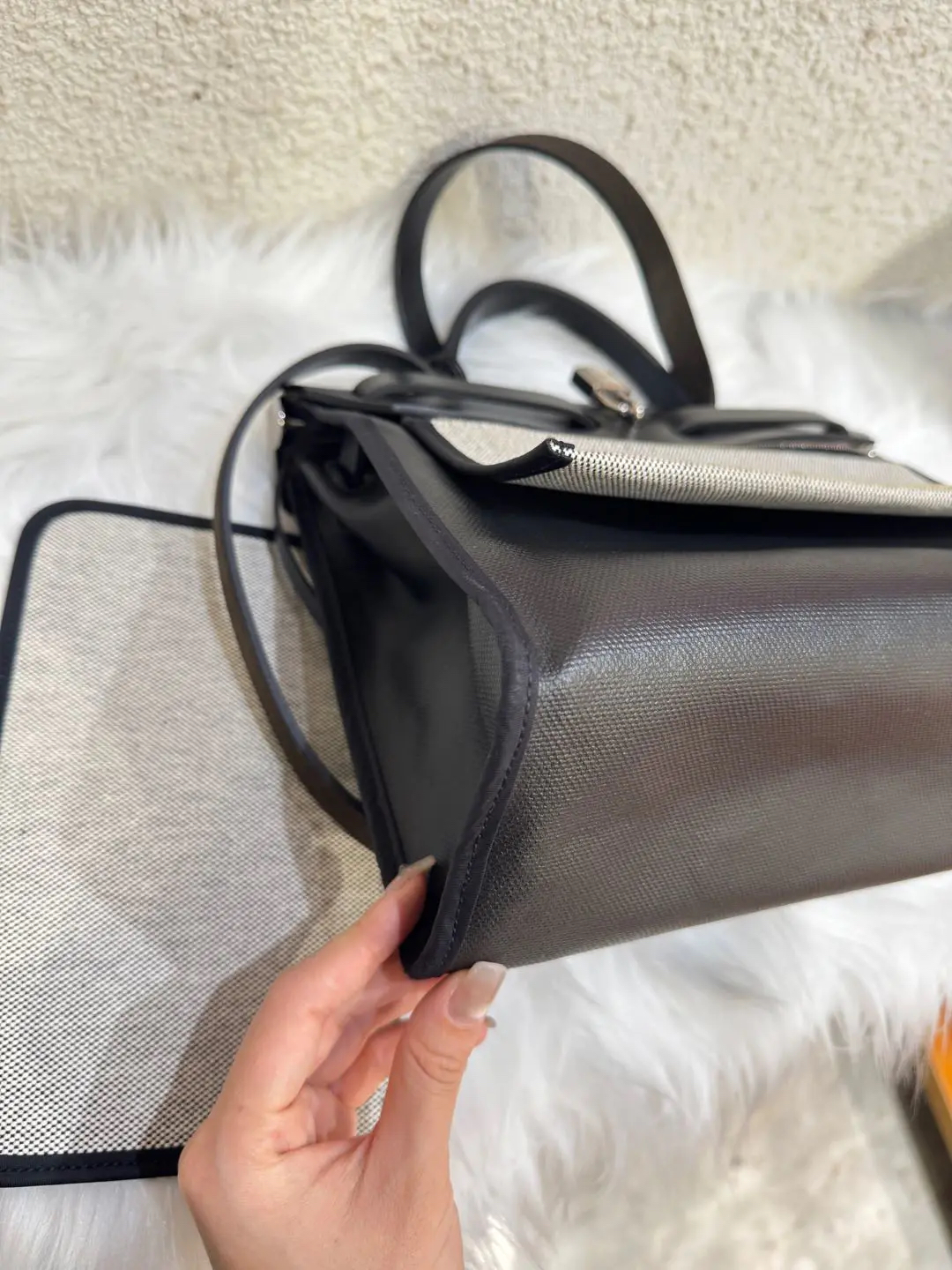 【商品详情】正品二手 爱马仕 herbag31 黑白熊猫 防水布 斜挎包 🥳97新 31*25 C刻。黄金尺寸!黄金大小!黄金成色!黄金黑银经典永恒快充‼️‼️