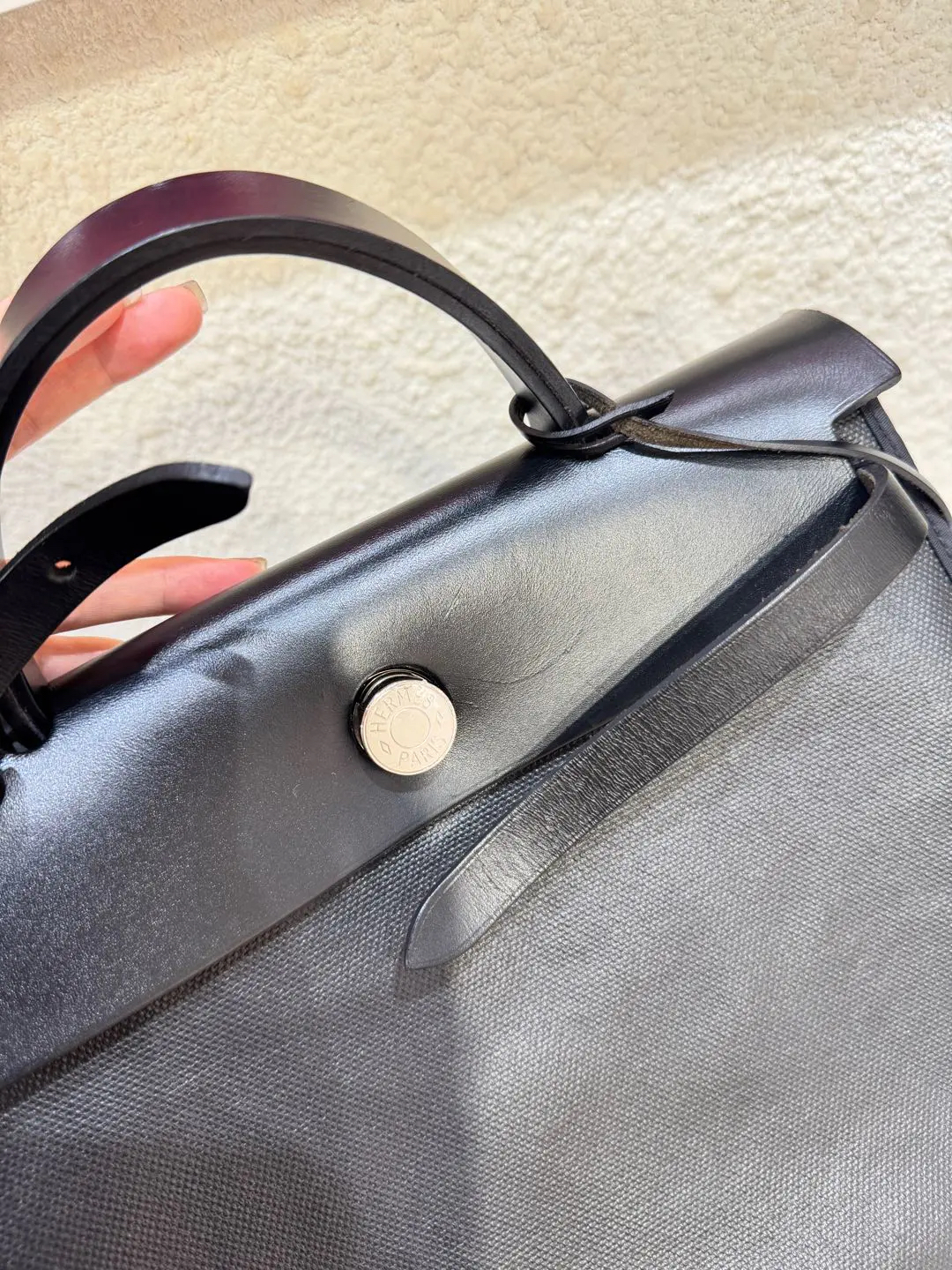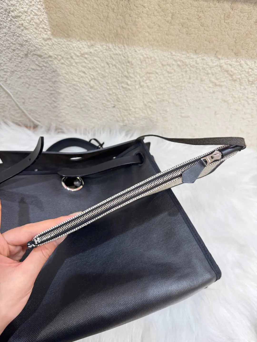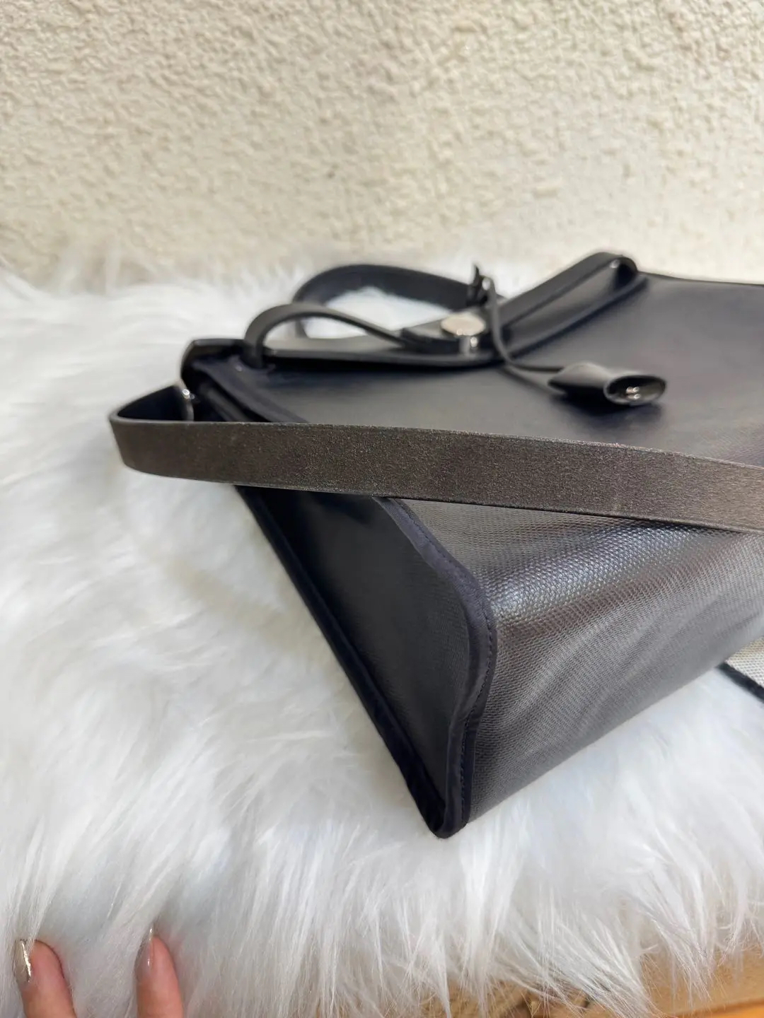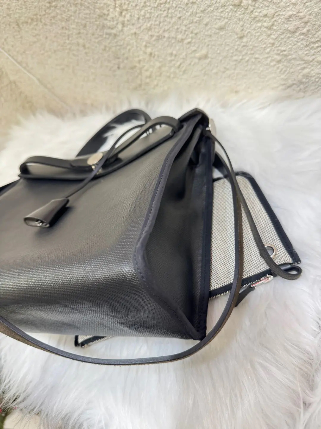 【商品详情】正品二手 爱马仕 herbag31 黑白熊猫 防水布 斜挎包 🥳97新 31*25 C刻。黄金尺寸!黄金大小!黄金成色!黄金黑银经典永恒快充‼️‼️