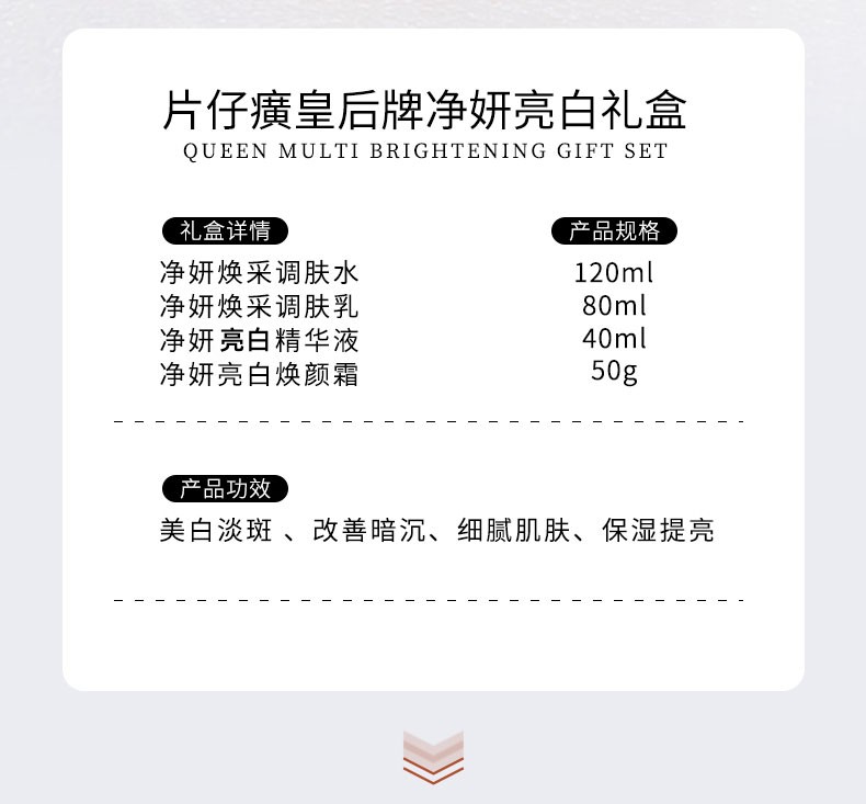 【片仔癀皇后牌】净妍亮白礼盒 | 送礼必备亮白不刺激无惧反黑明星张静初力荐(水120+乳80ml+精华40ml+面霜50g)