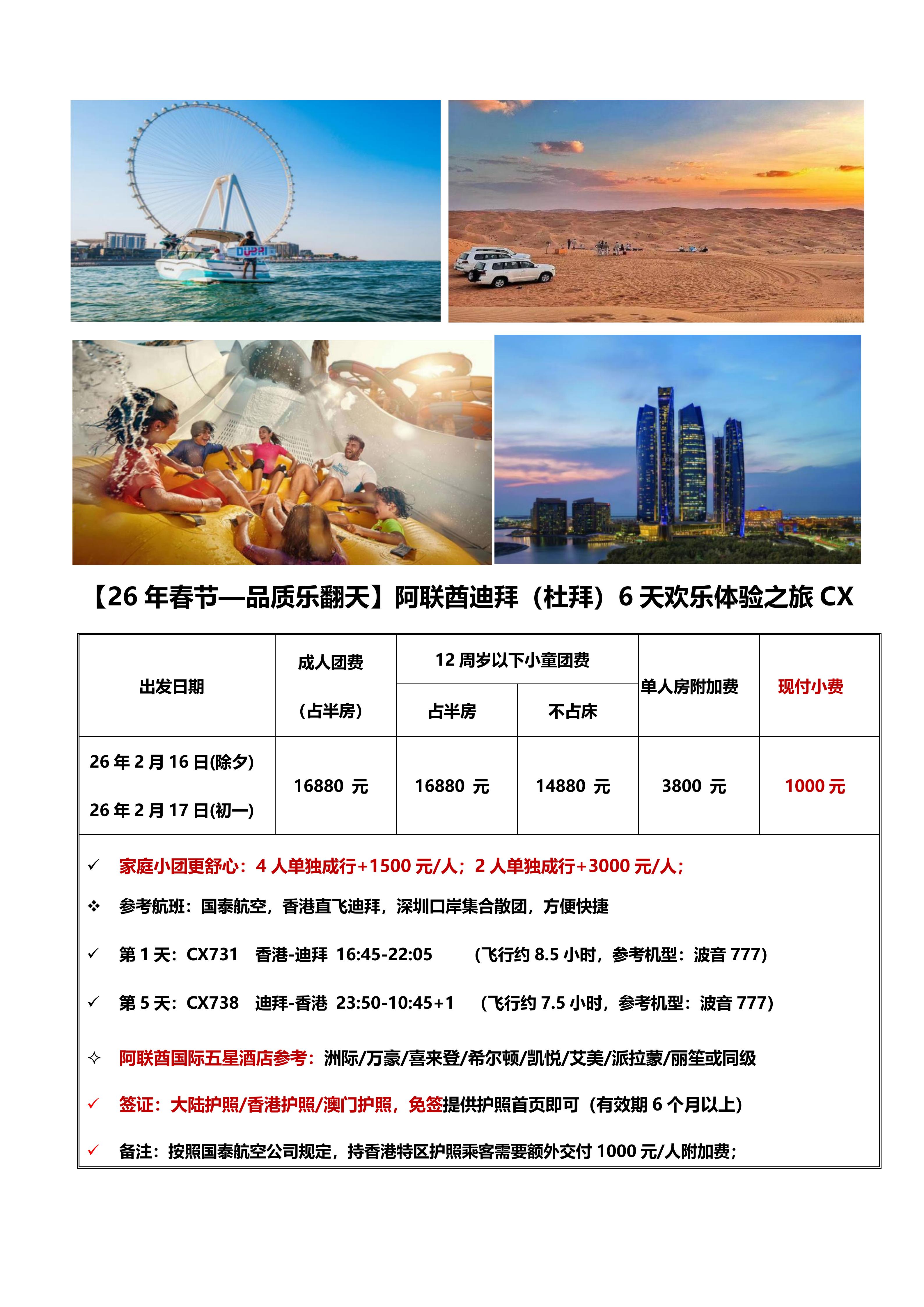 【春节】<阿联酋迪拜6天欢乐体验之旅-深圳起止>沙漠冲沙、法拉利主题乐园/华纳兄弟主题乐园/阿布扎比海洋世界/亚斯水世界(四园选一)、棕榈岛52层登塔、阿布扎比总统府、谢赫扎伊德清真寺