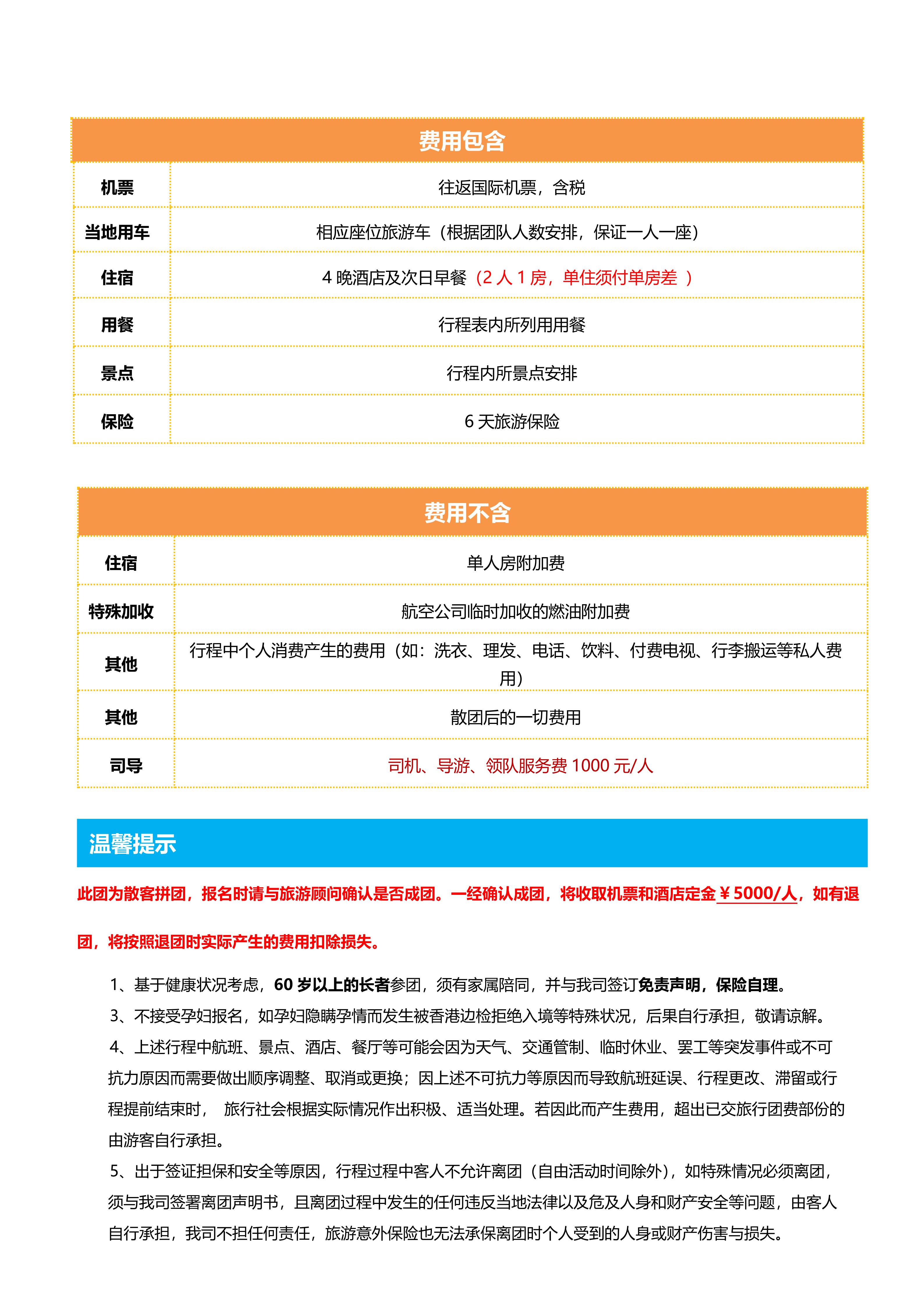 * 此行程非本社独立成团,均为与其他旅行社拼团出行,敬请知悉。