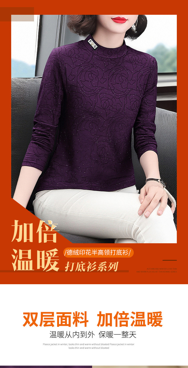 半高领德绒打底衫女冬季新款长袖内搭大码上衣加绒保暖修身t恤