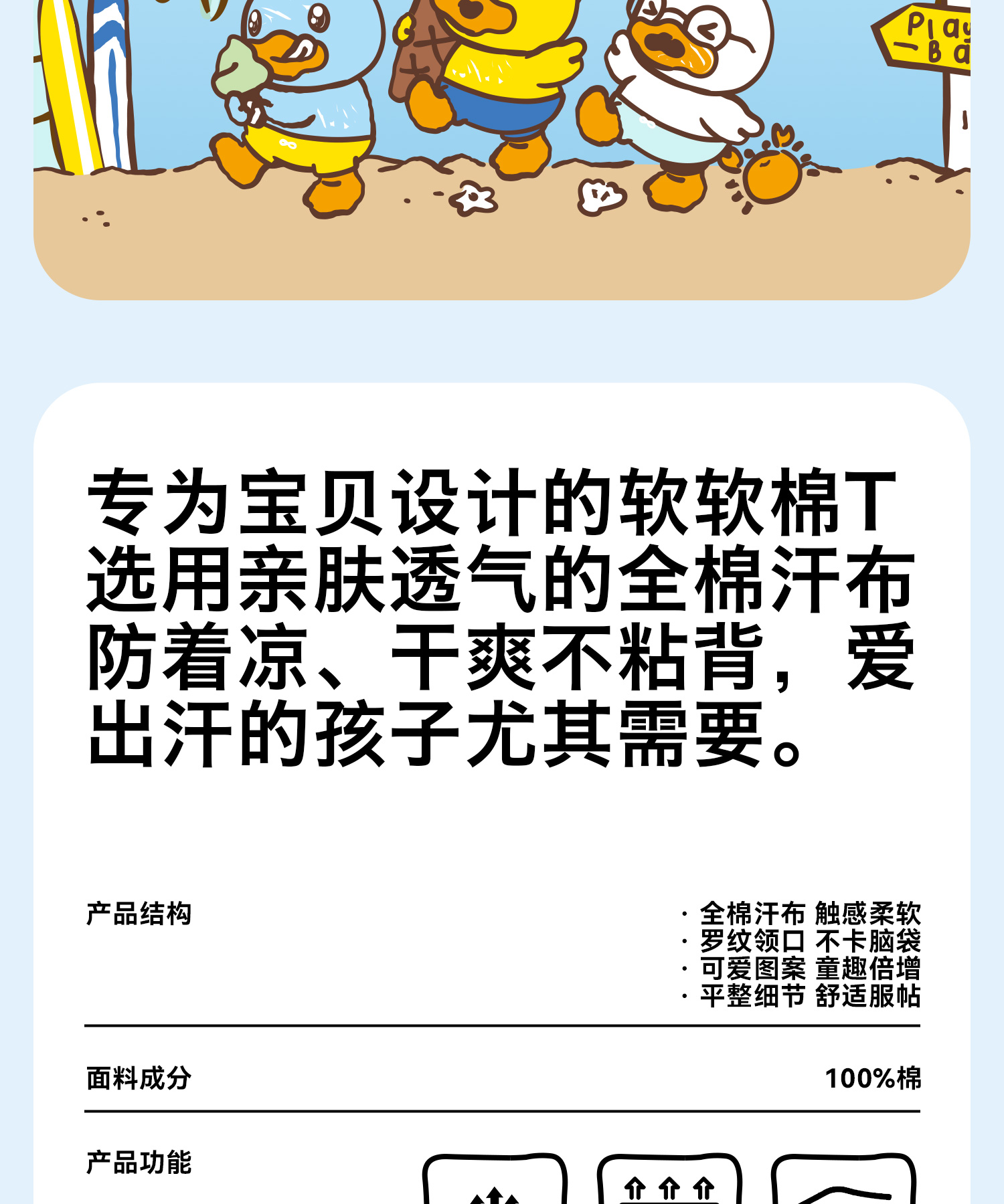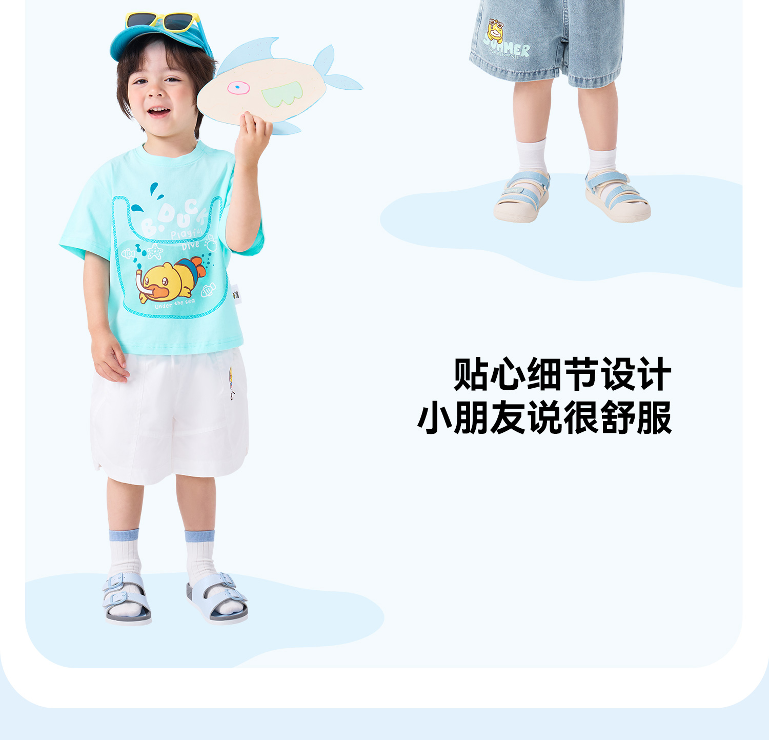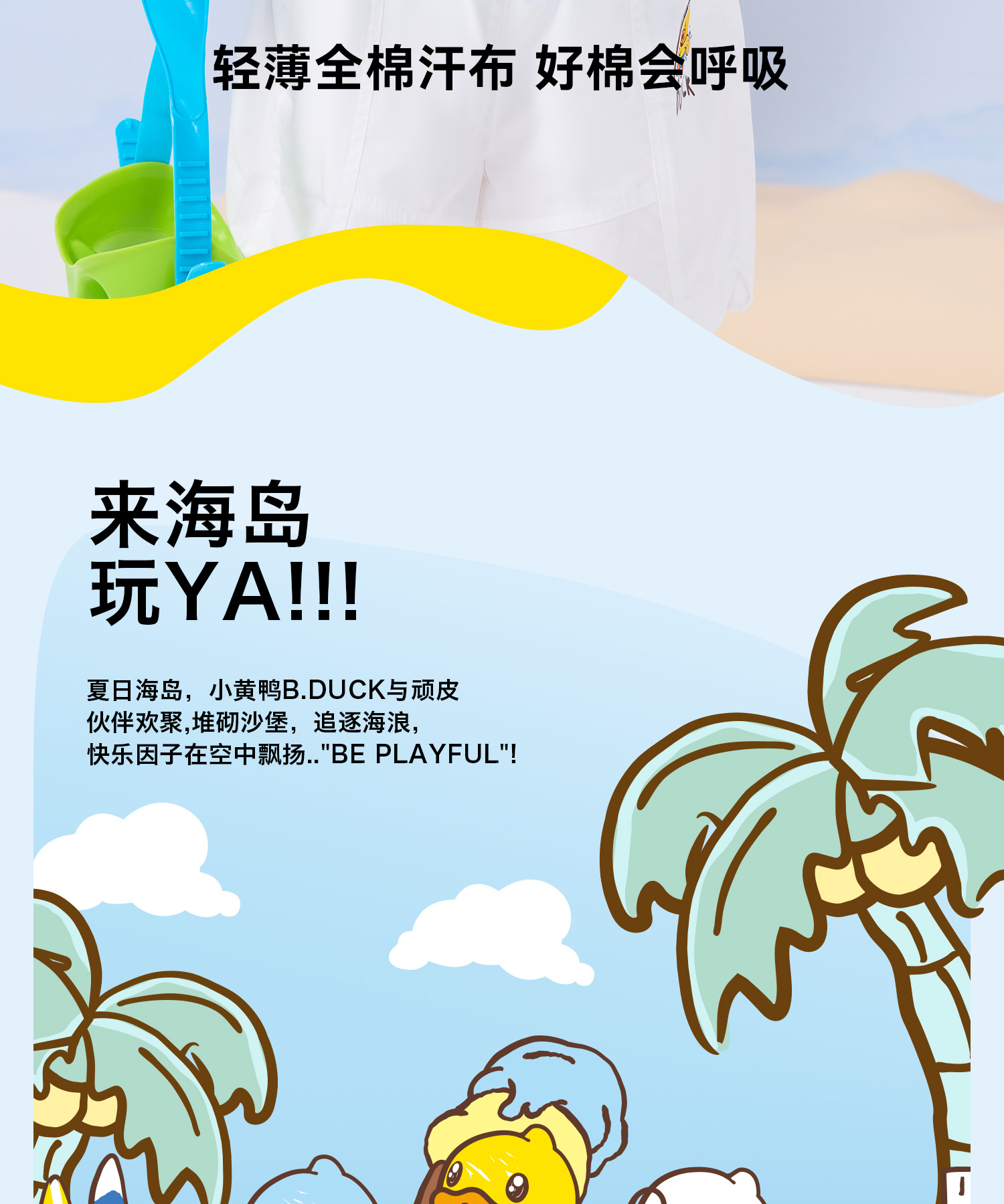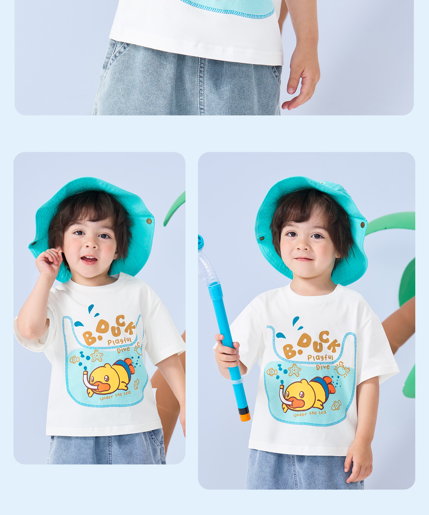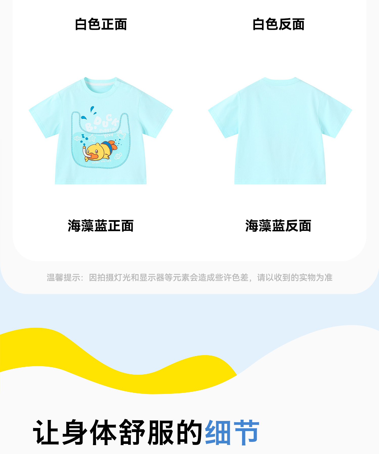 bduck小黄鸭童装夏季男童短袖T恤宝宝上衣夏季儿童纯棉衣服薄90-130 BF2601011