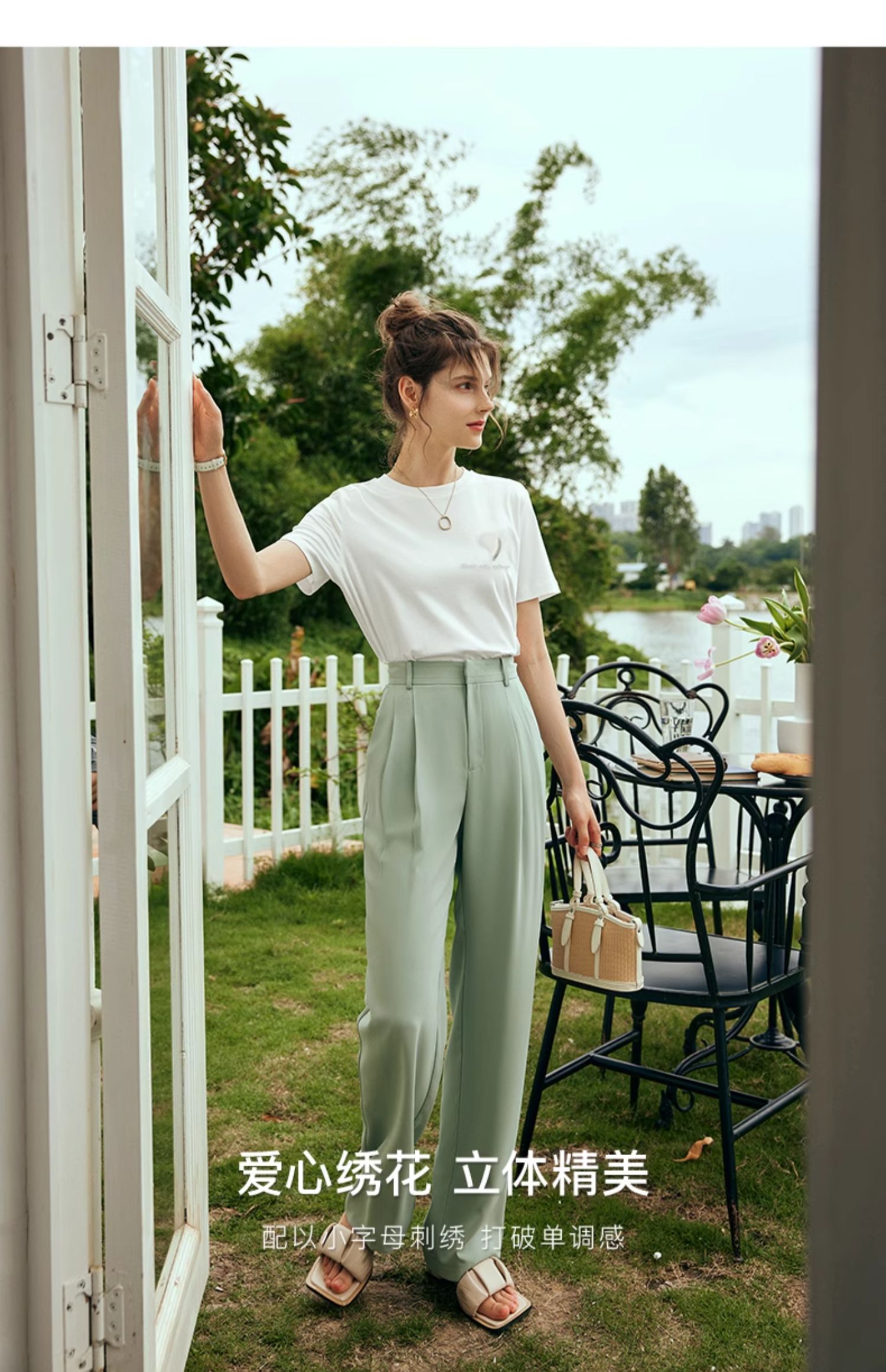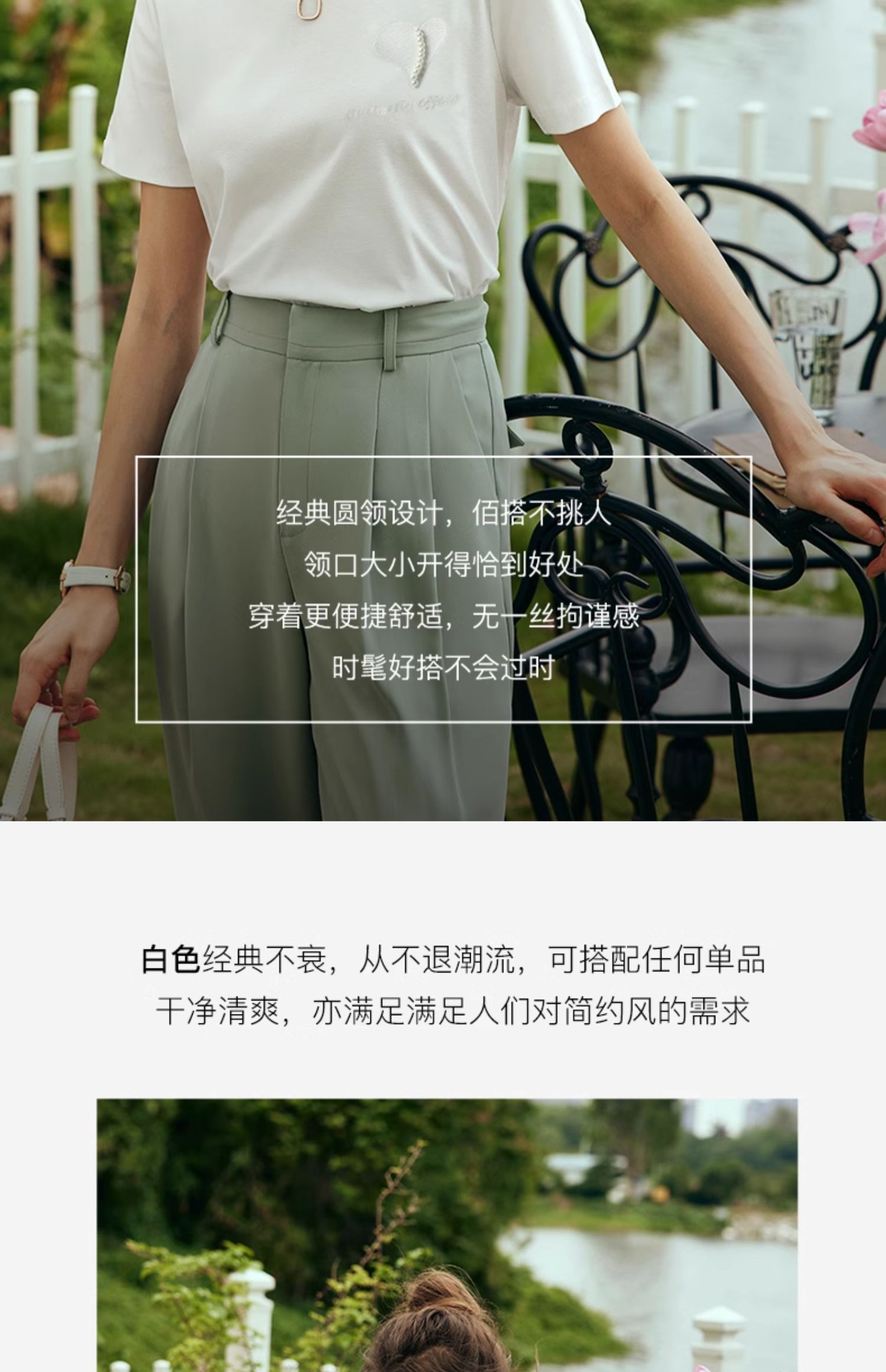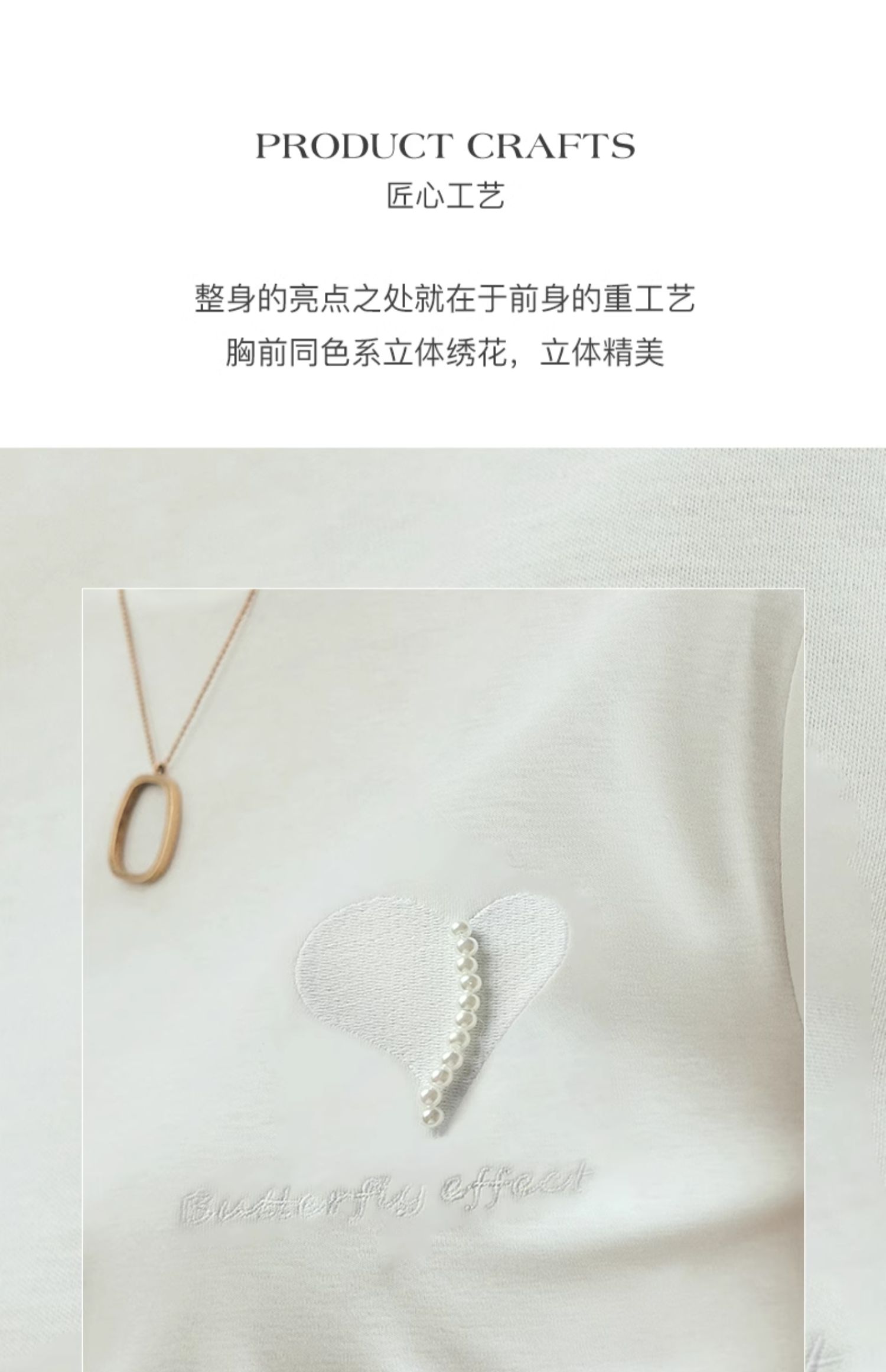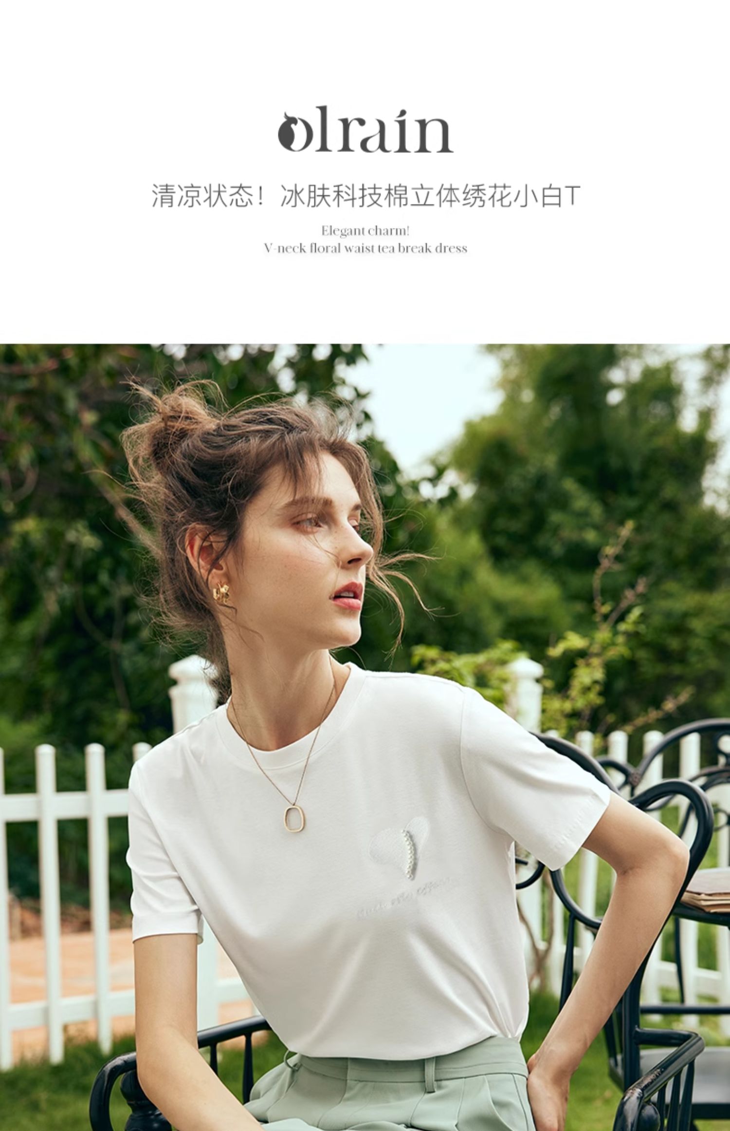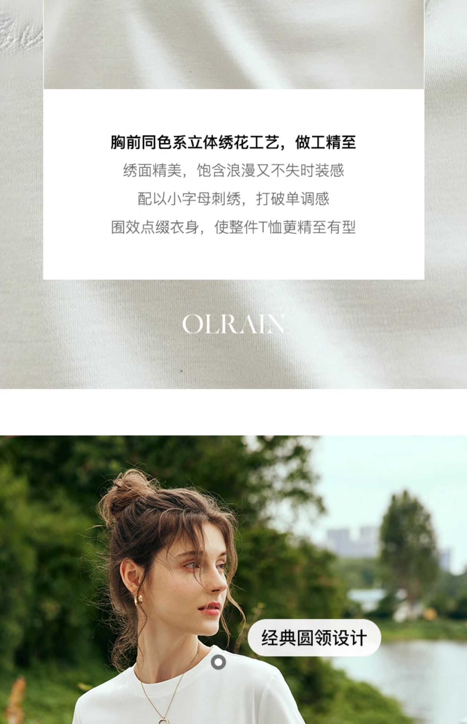 OLrain欧芮儿法式白色短袖T恤女夏2024新款冰肤立体刺绣钉珠上衣