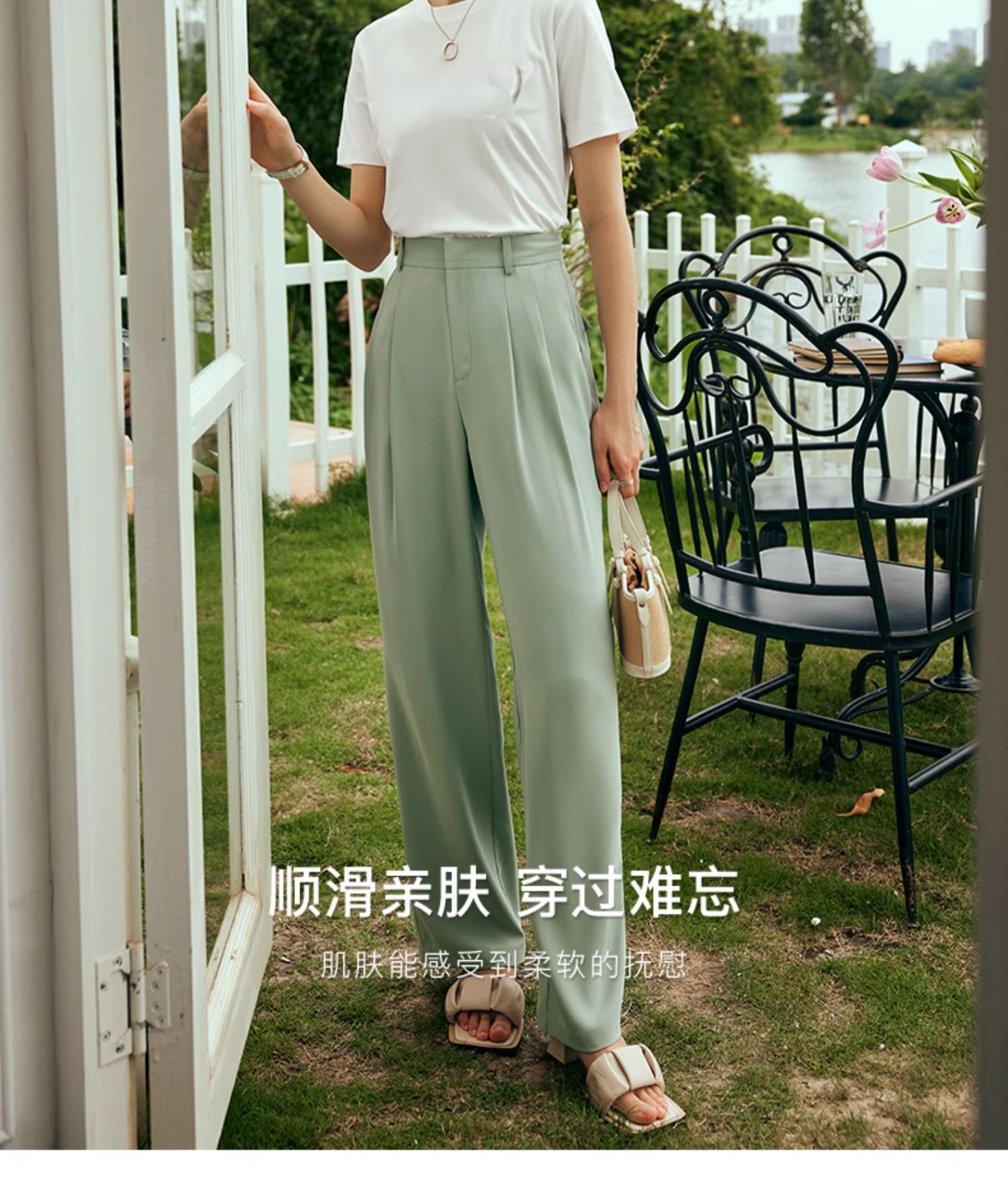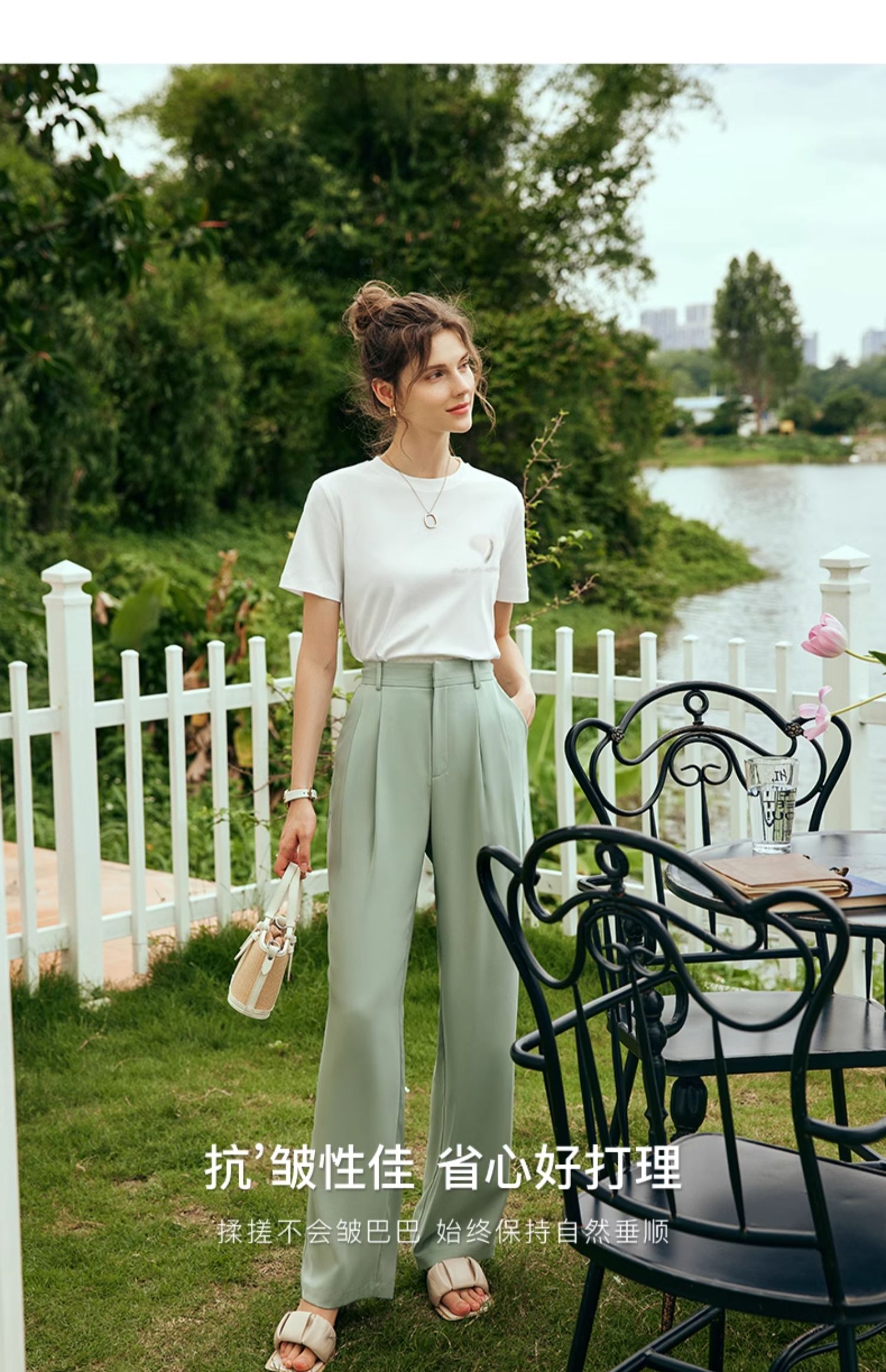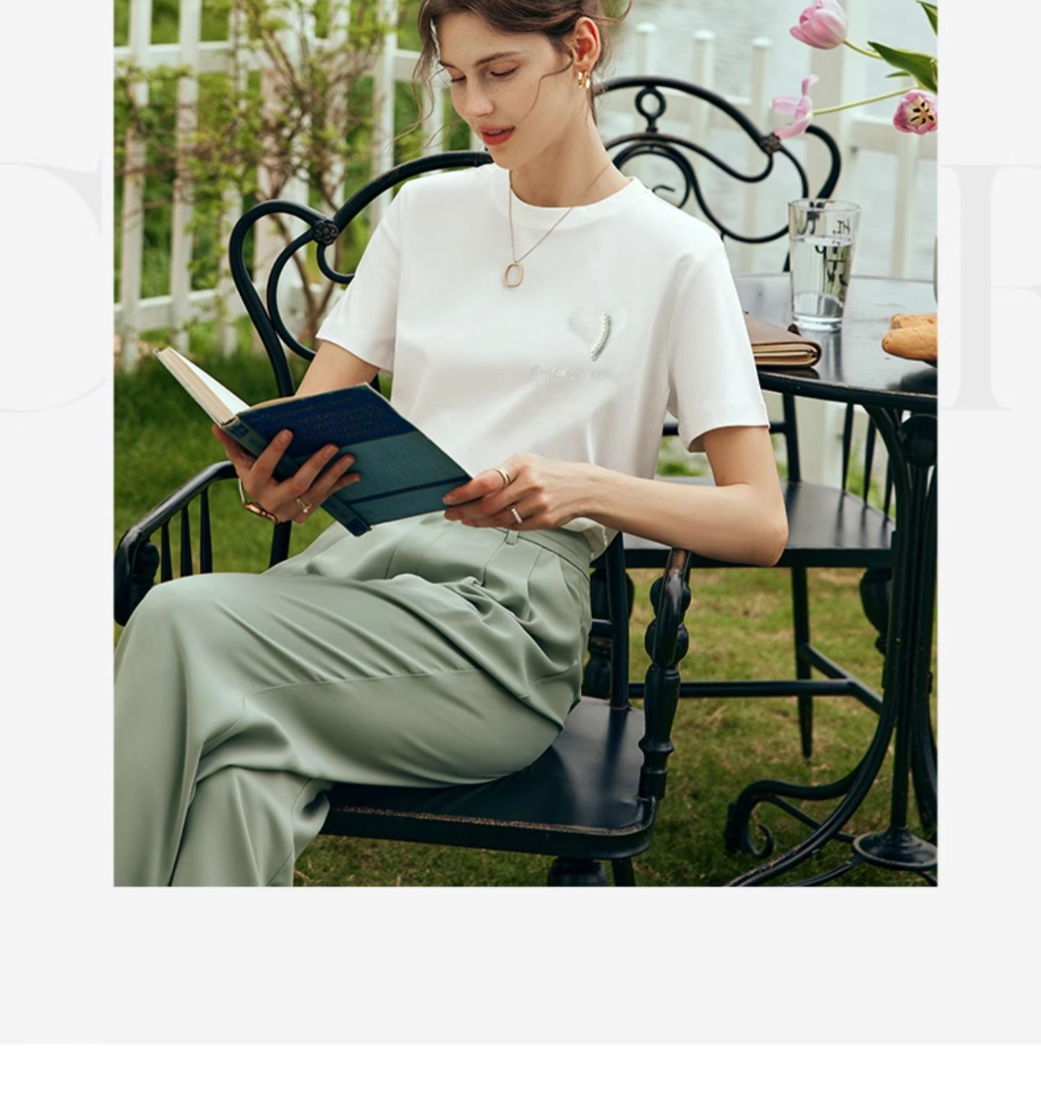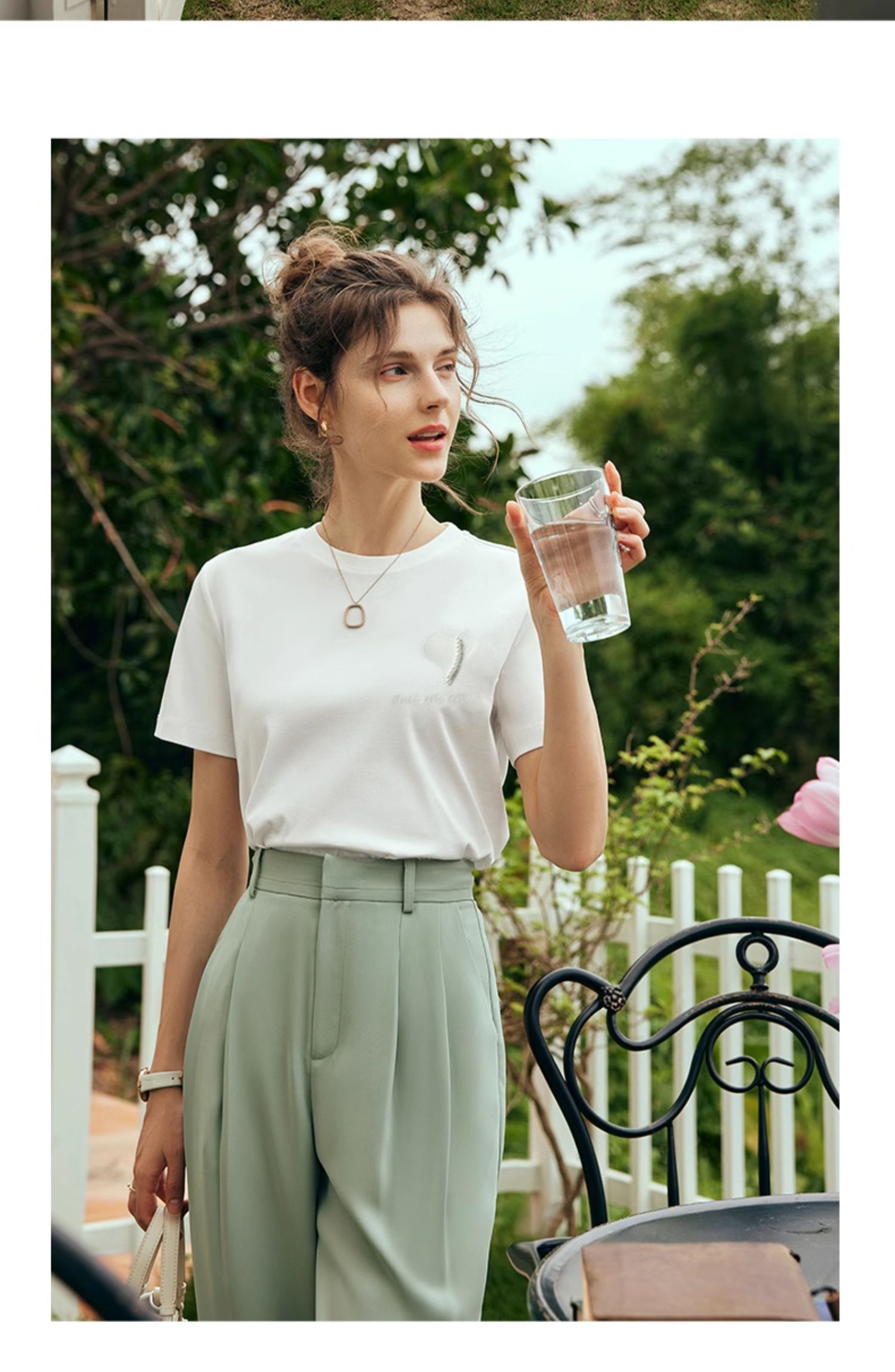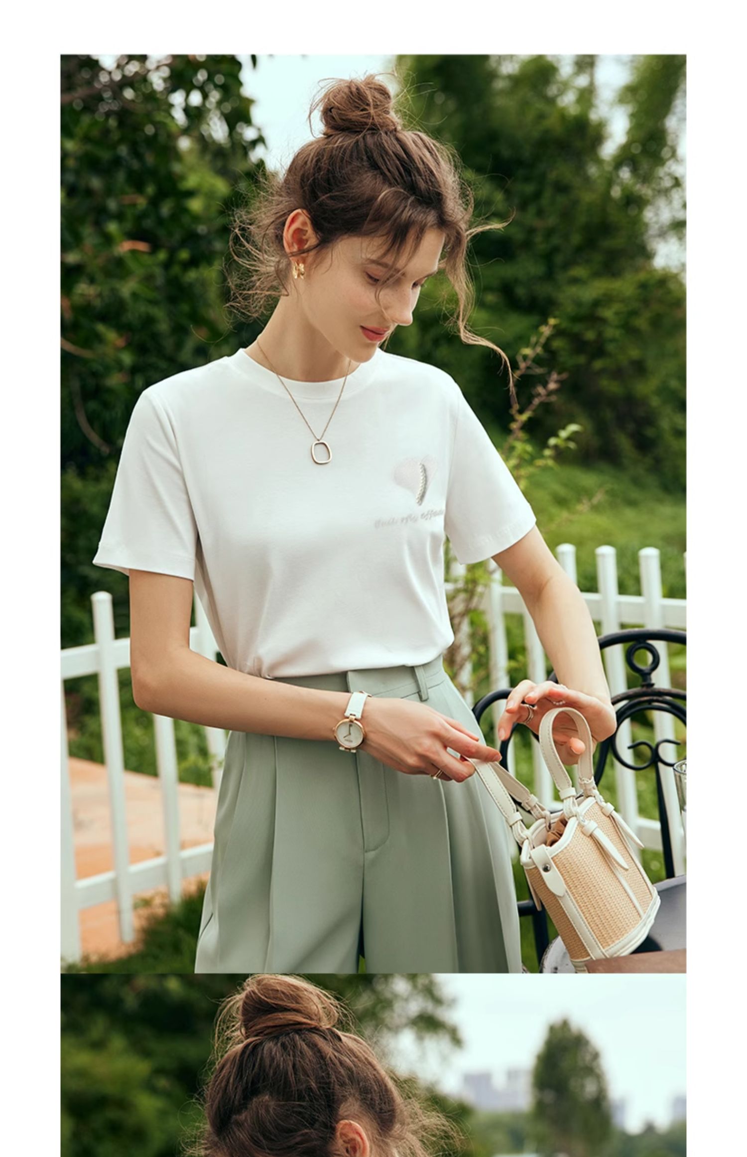 OLrain欧芮儿法式白色短袖T恤女夏2024新款冰肤立体刺绣钉珠上衣
