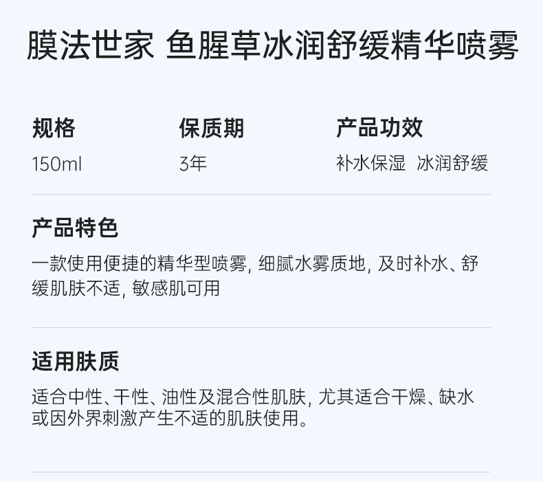 【100膜币+29.9元】膜法世家鱼腥草冰润舒缓精华喷雾150ml