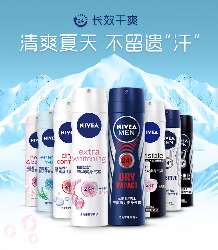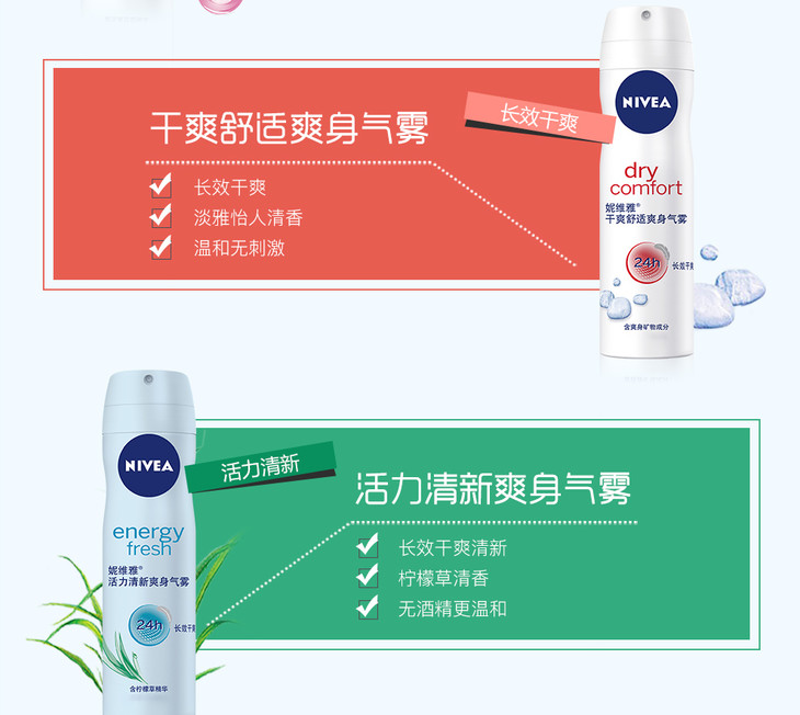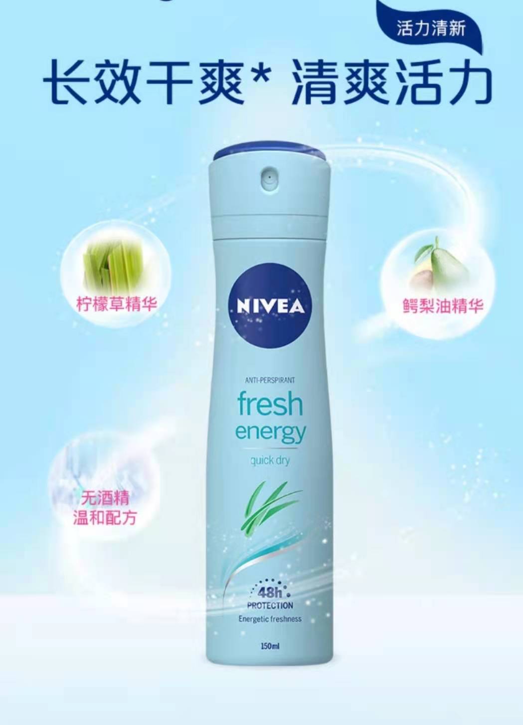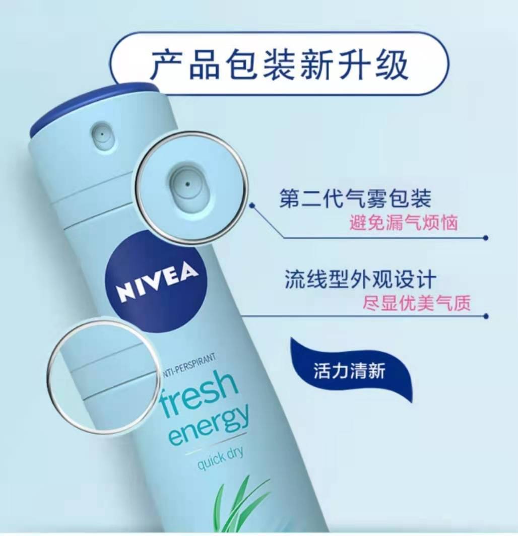 妮维雅活力清新爽身气雾150ml爽身喷雾抑汗香体液干爽气雾抑汗清爽腋下