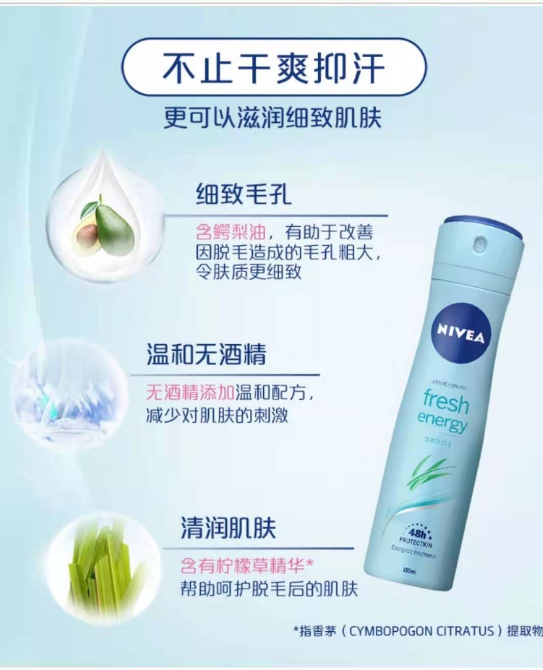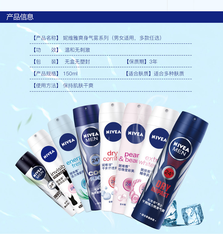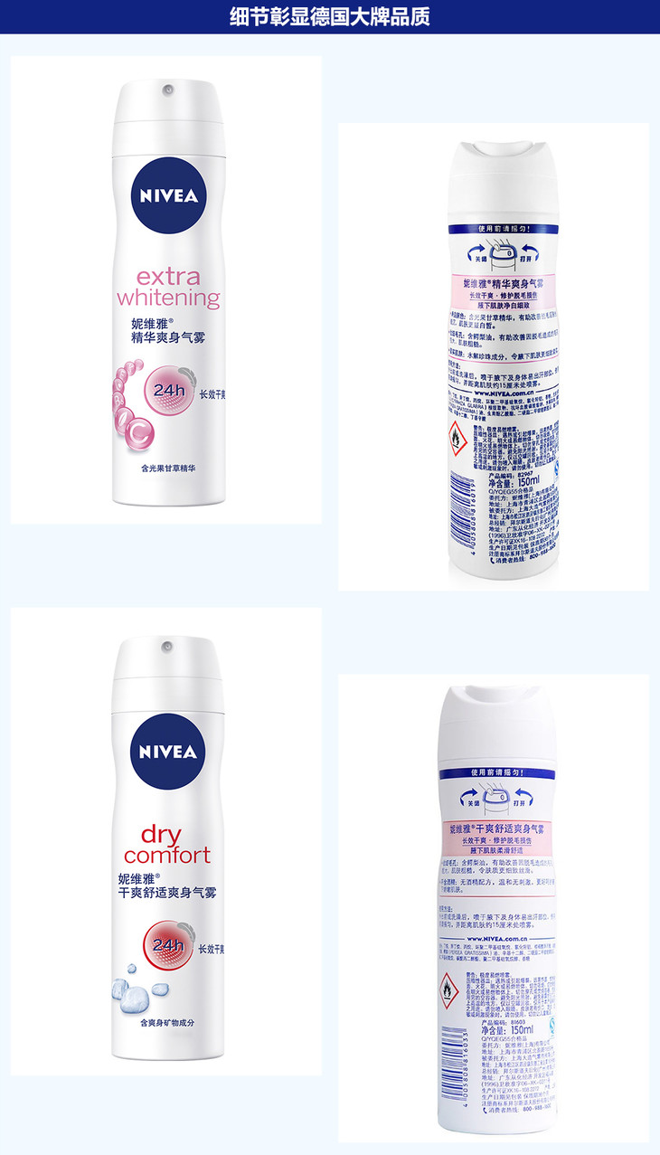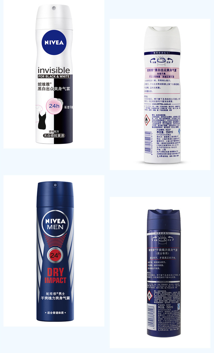 妮维雅活力清新爽身气雾150ml爽身喷雾抑汗香体液干爽气雾抑汗清爽腋下