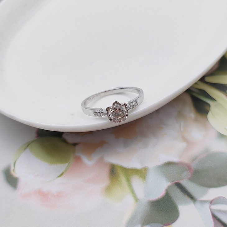 18K钻石戒指,金重:2.03克,主石:0.50ct, 圈号17#,颜色:H ,净度:VS, 火彩一流,爆闪耀眼夺目, 经典百搭 , 超级好看,现货超低价