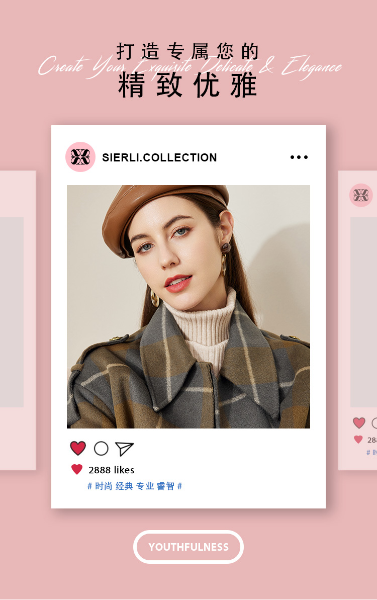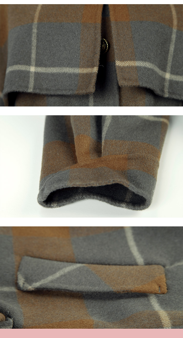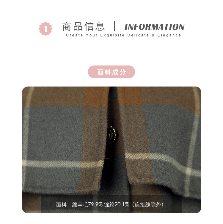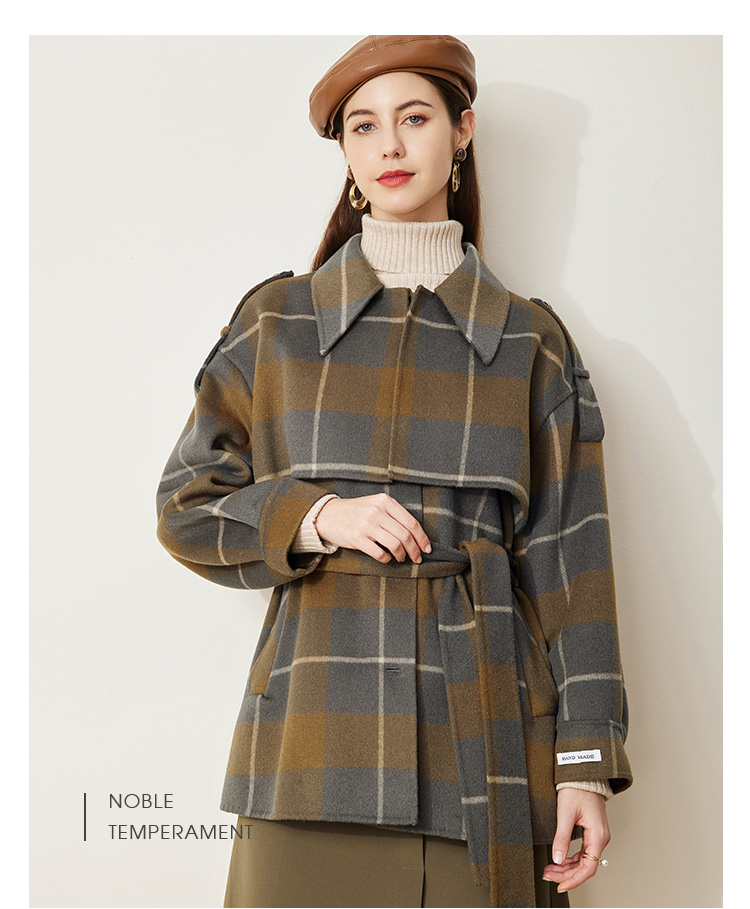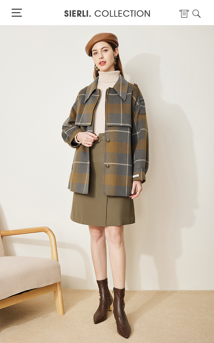 LH9H4斯尔丽2021新款秋冬瑟俪双面呢格子假两件式肩章羊毛大衣女