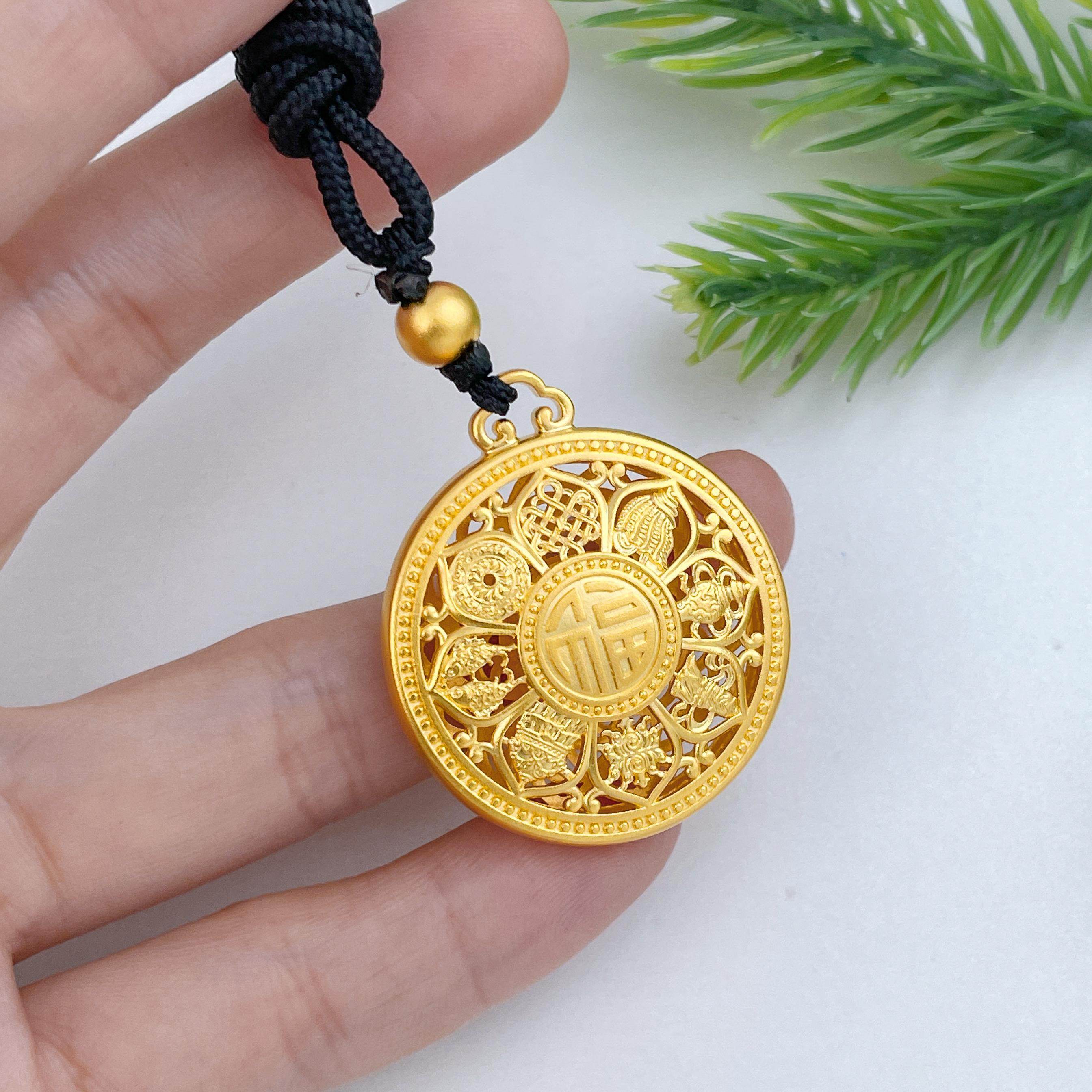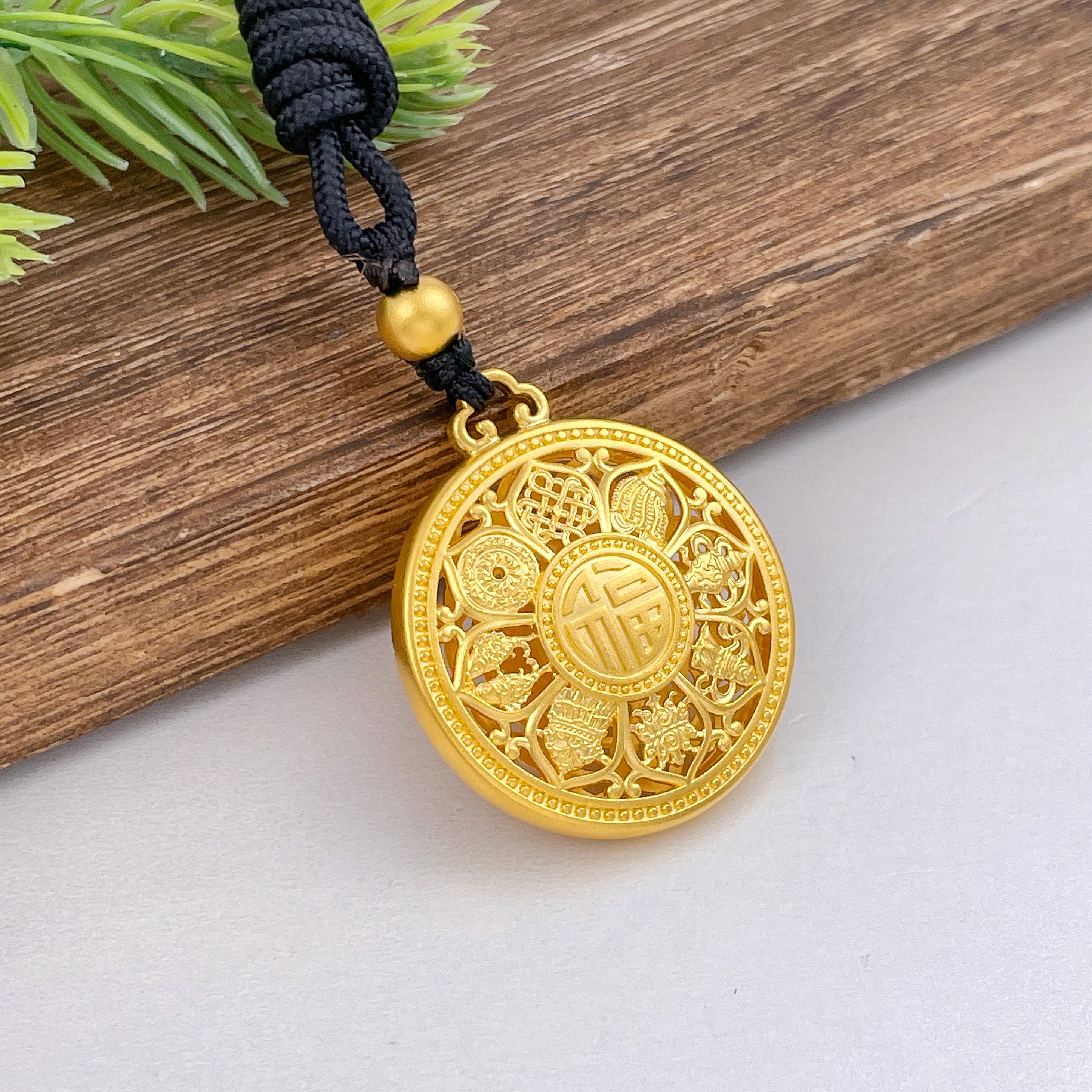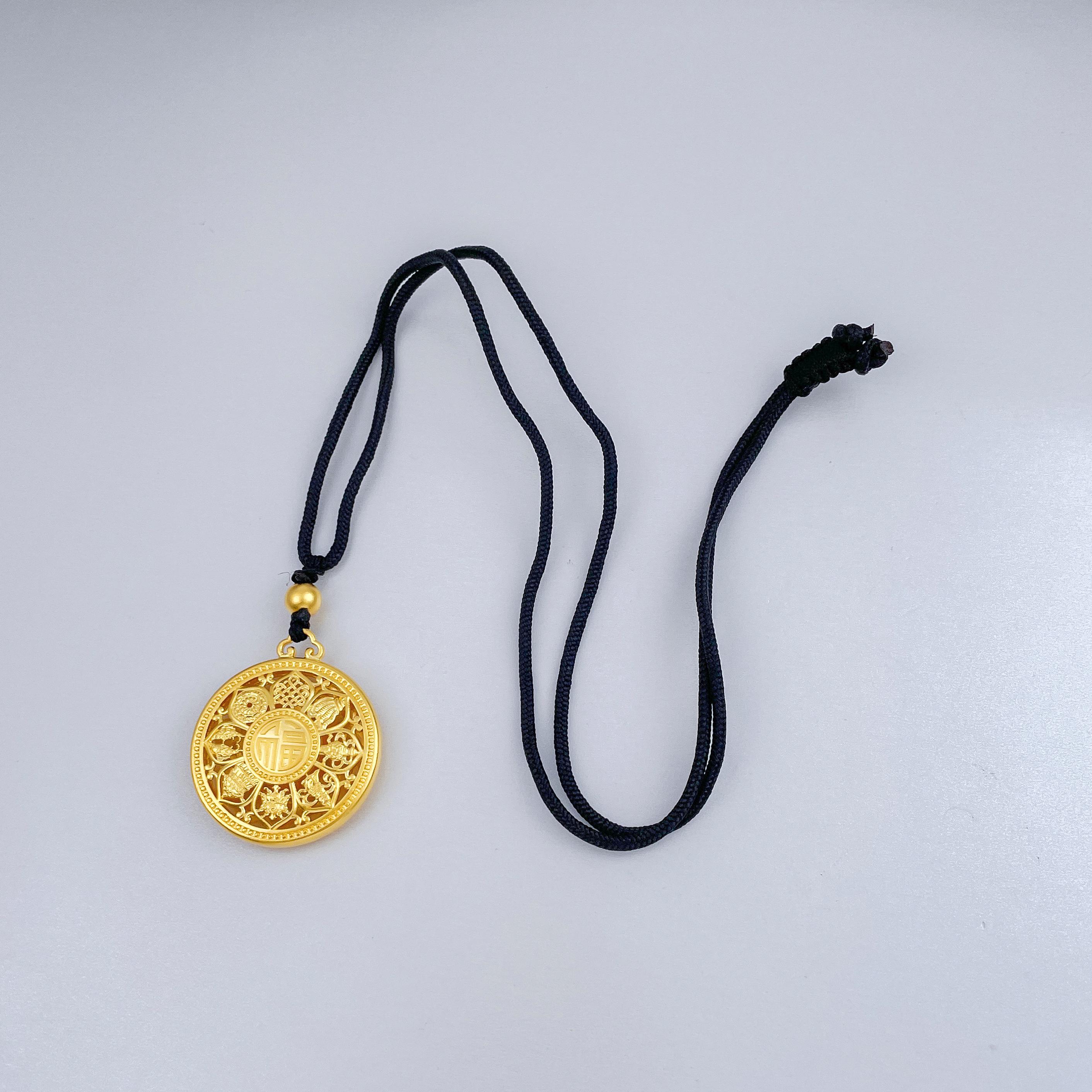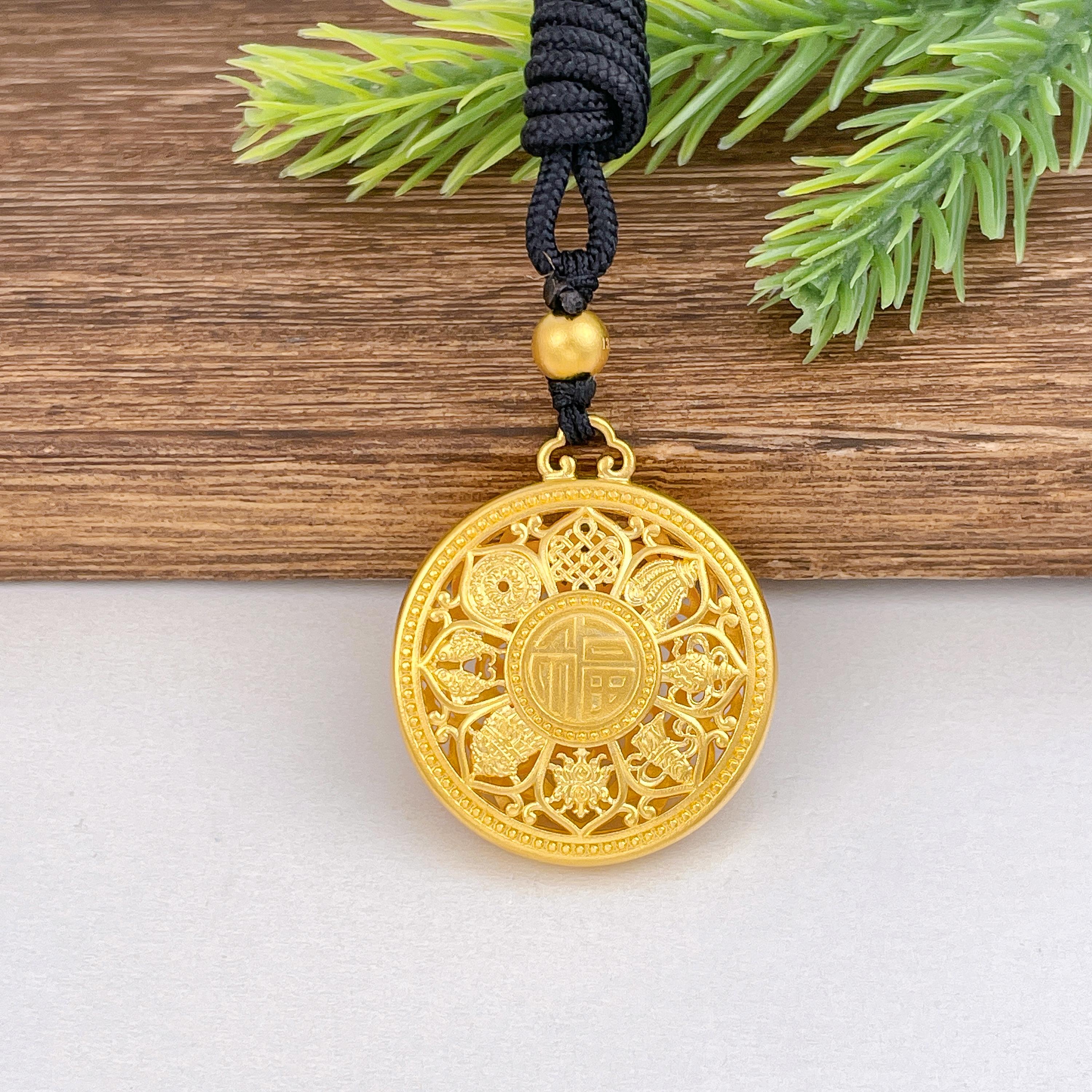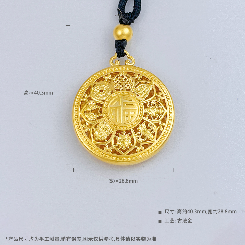 【限时克减150元】足金999.9 #八宝罗盘 # 古法挂绳镂空八方祥瑞福字八宝罗盘吊坠(含珠子,面宽约28.8mm)(AIGFDZ00021-7)(预售产品下单后不退款不退货不换货不补差价)