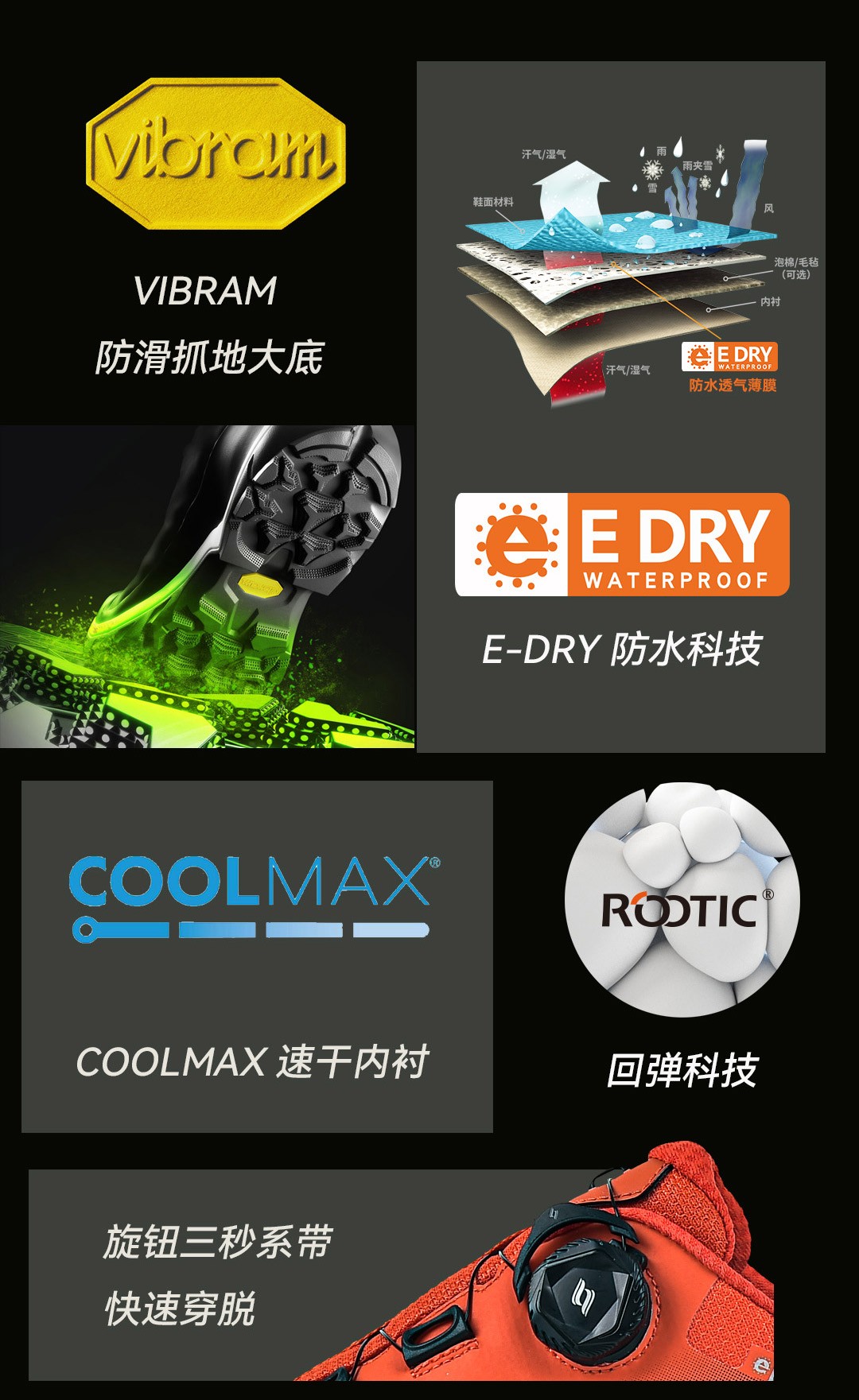 【299捡漏秒杀】天越/Extrek 野马旋钮E-dry防水VIBRAM低帮户外鞋徒步鞋