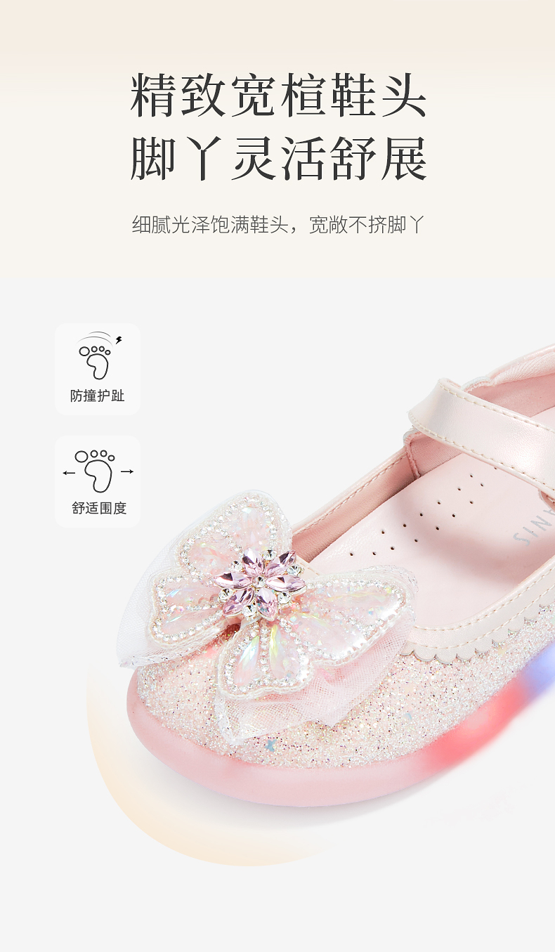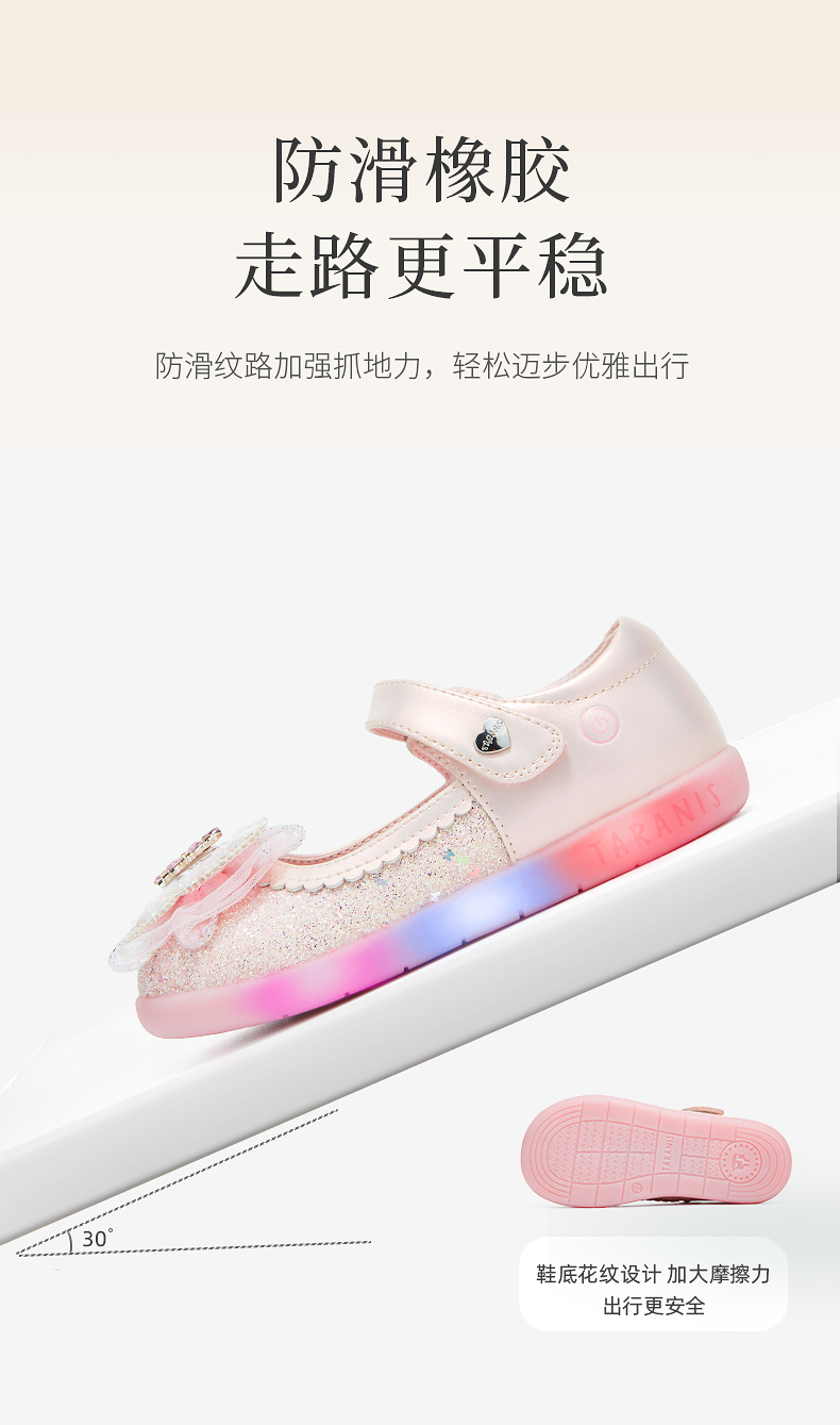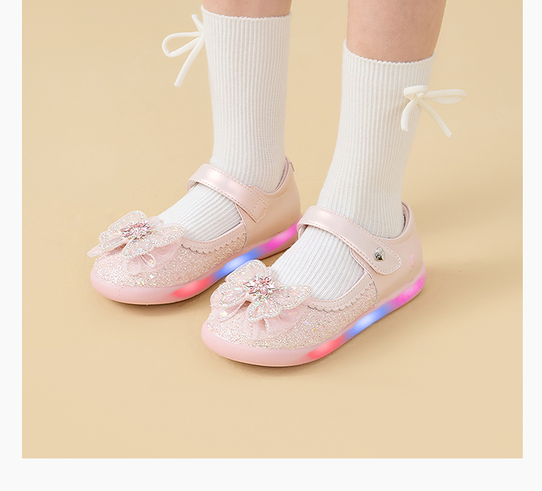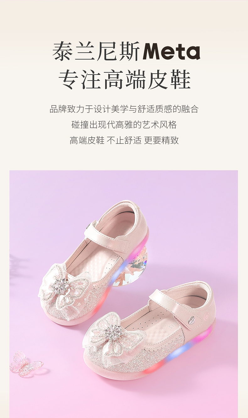 泰兰尼斯meta皮鞋新款闪灯鞋公主水晶鞋童鞋儿童洋气单鞋女童宝宝 M03X5C7445