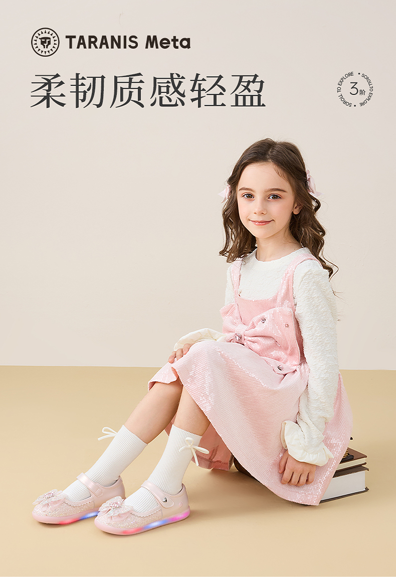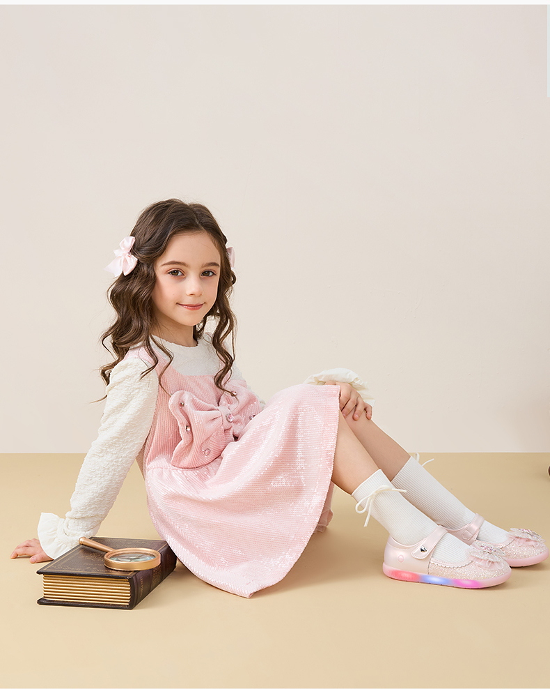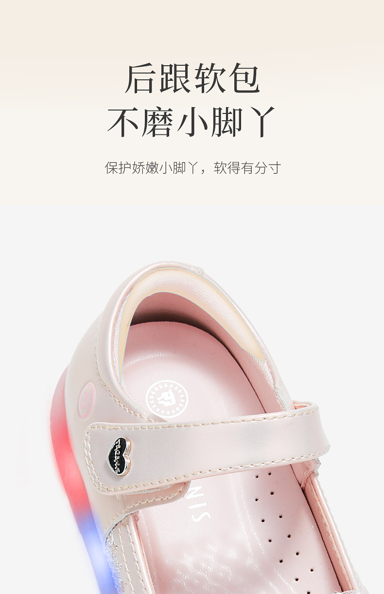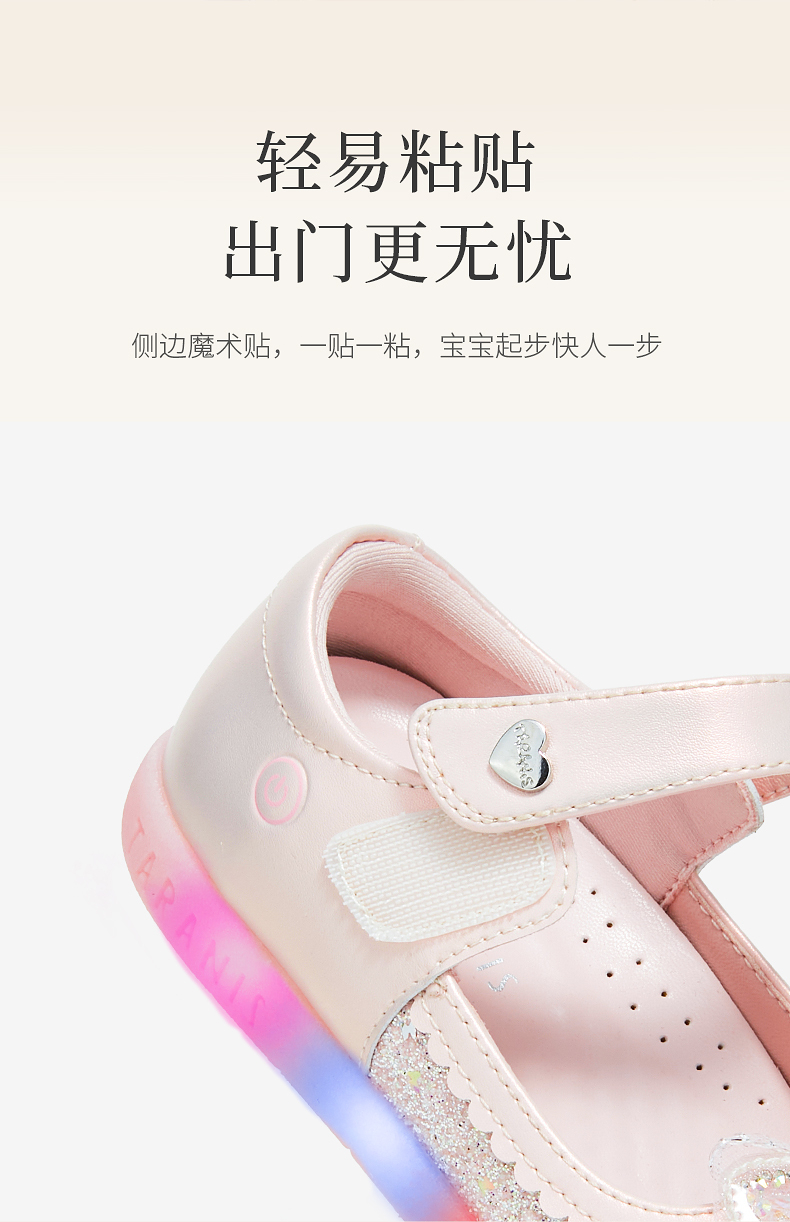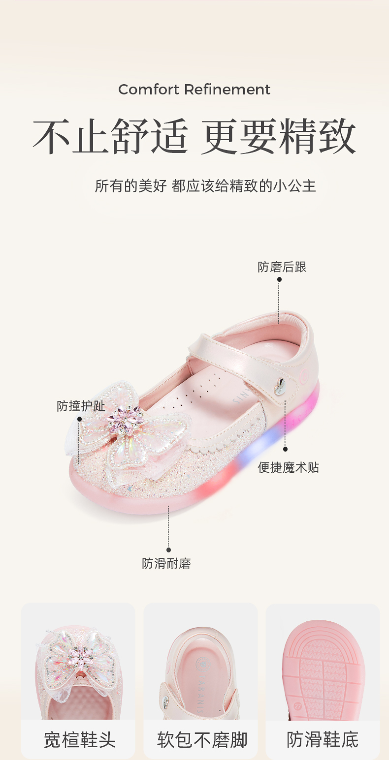 泰兰尼斯meta皮鞋新款闪灯鞋公主水晶鞋童鞋儿童洋气单鞋女童宝宝 M03X5C7445