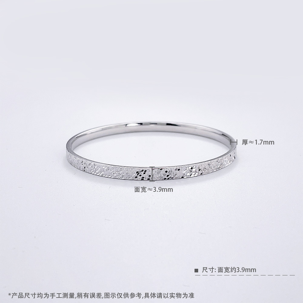 【限时8.8折】【线上铂金馆】PT950 #碎碎冰 【国际铂金协会】铂金实心固口碎碎冰四方手镯(面宽约3.9-4.1mm,厚约1.7mm)(BSZ00121)预售产品下单后不退款不退货不换货不补差价)