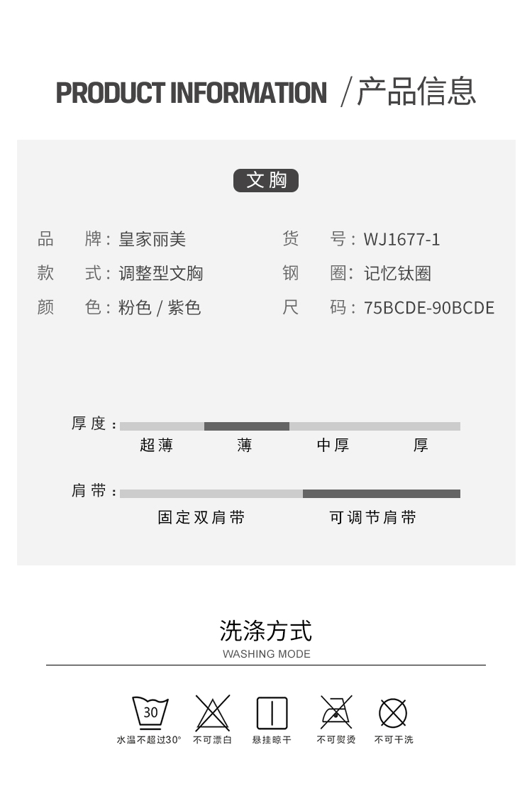 【秒杀品不退不换】皇家丽美薄杯大胸显小软钢圈收副乳文胸WJ1677-1