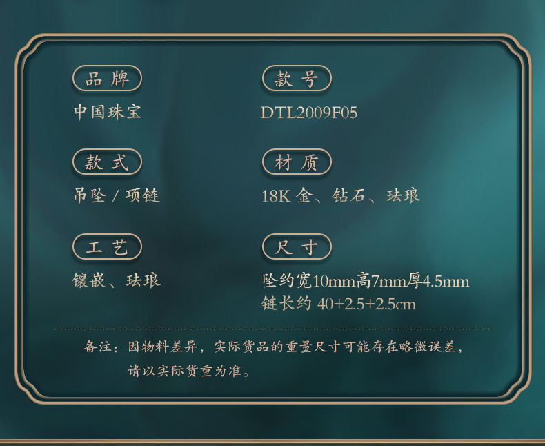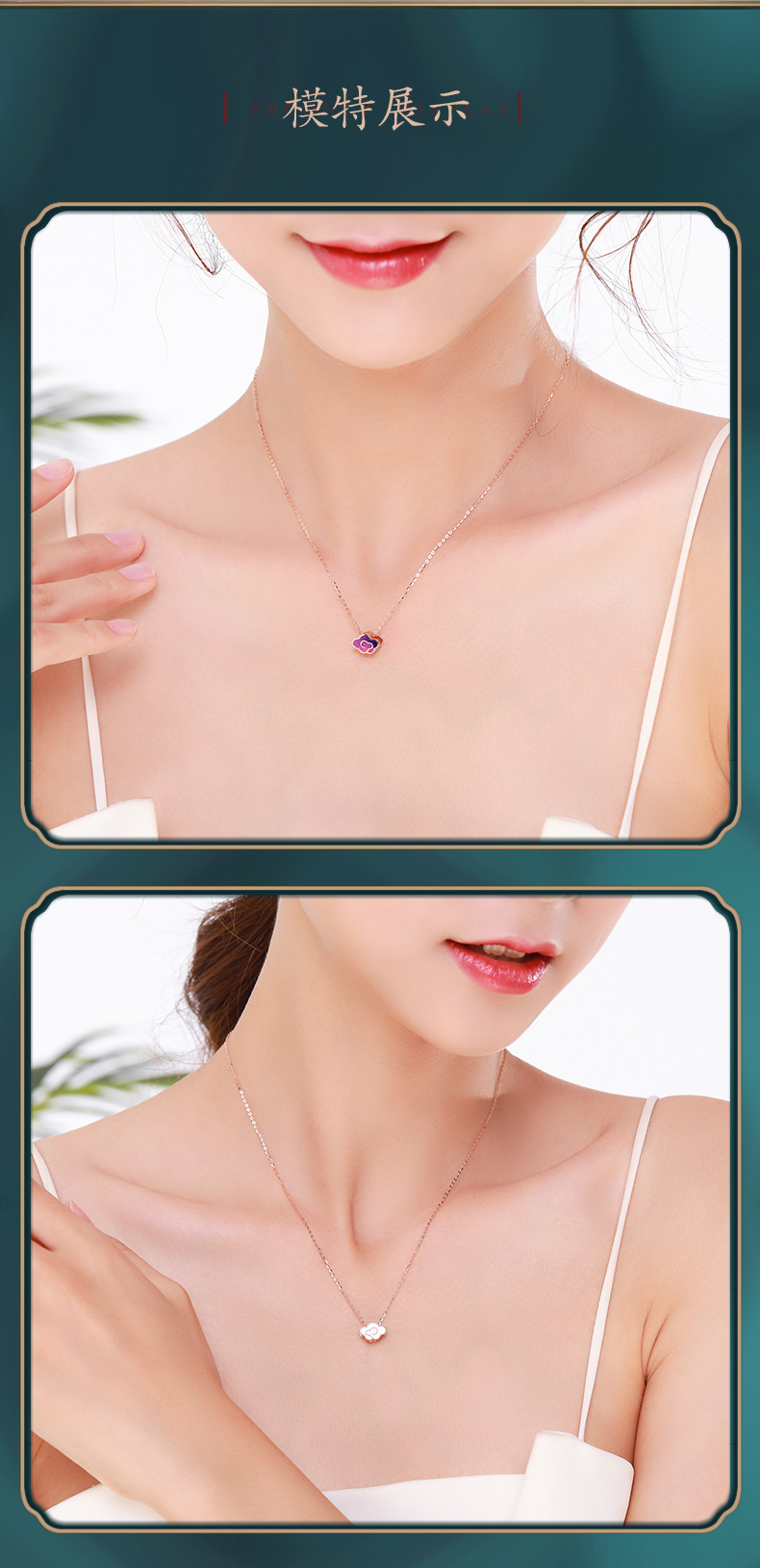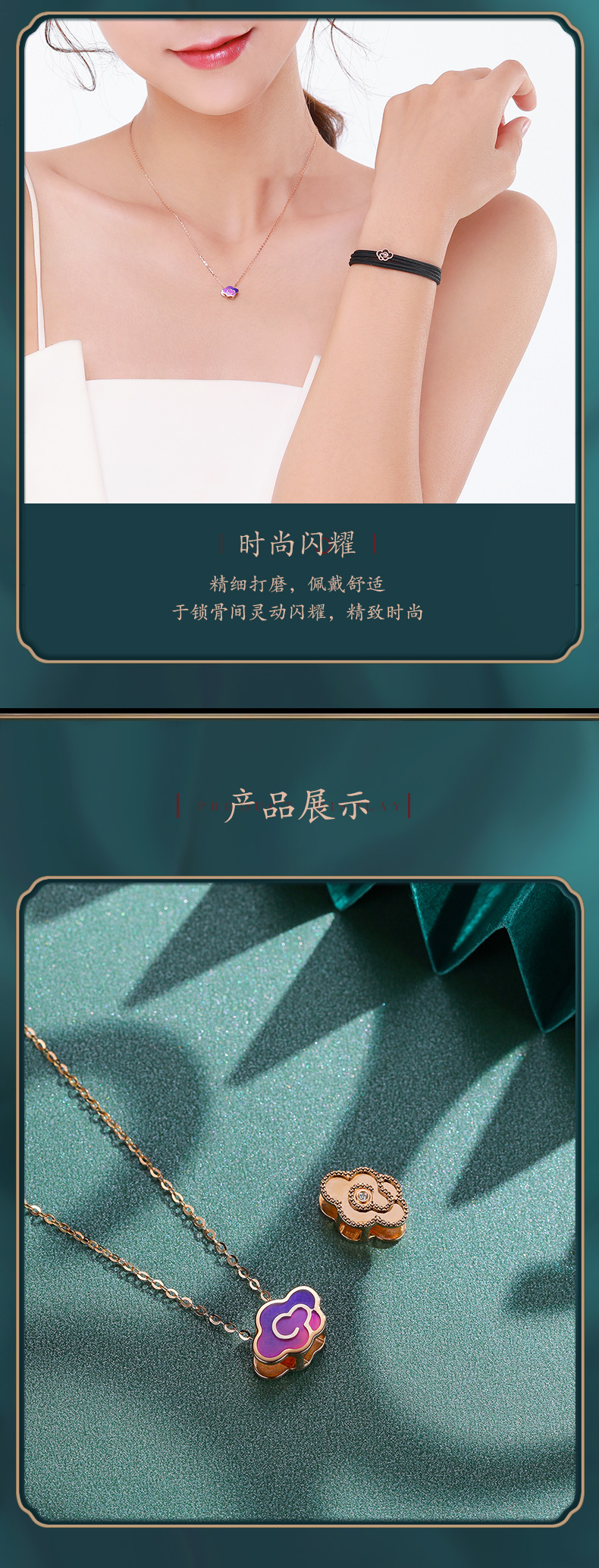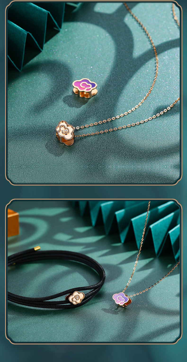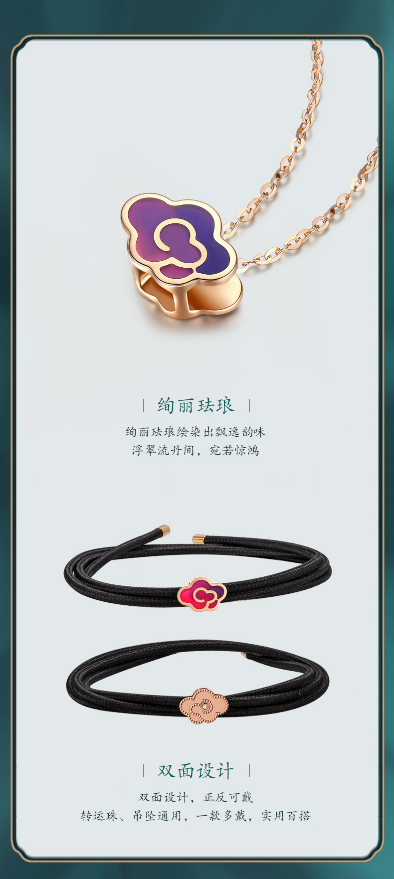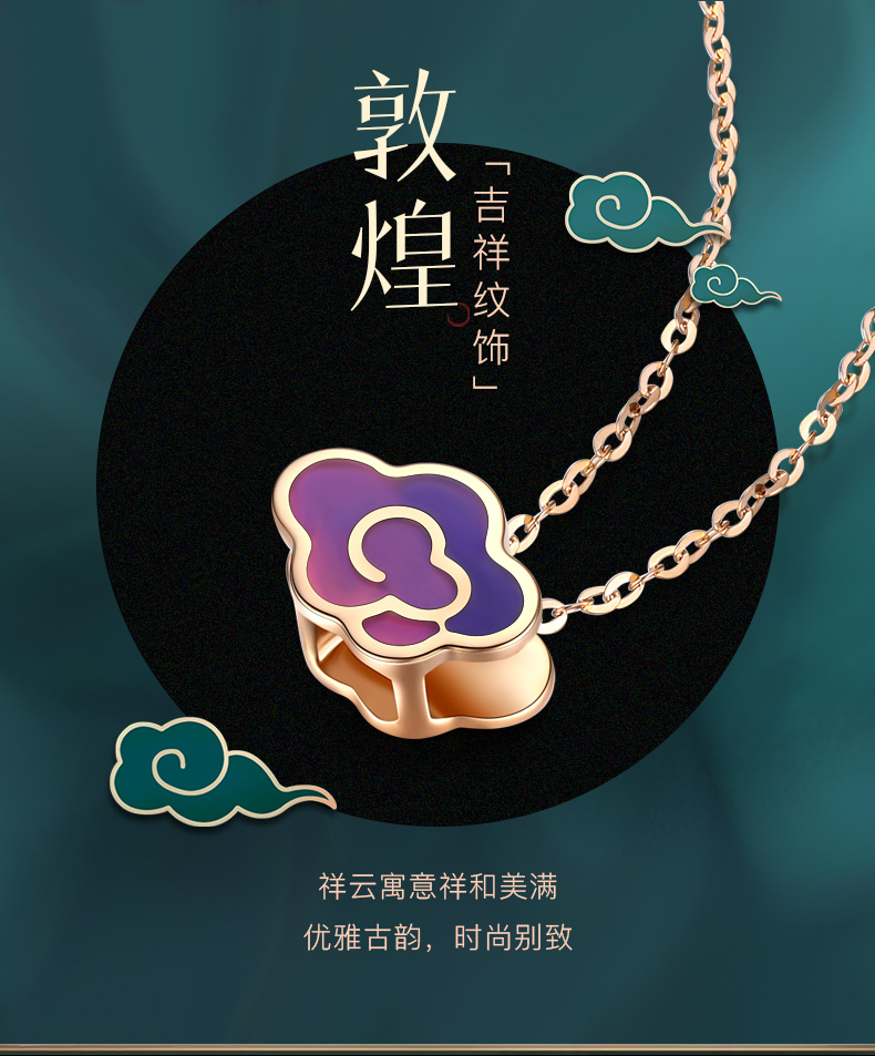 「敦煌」18K金钻石珐琅吊坠项链 祥云祥瑞套链 紫气东来转运珠