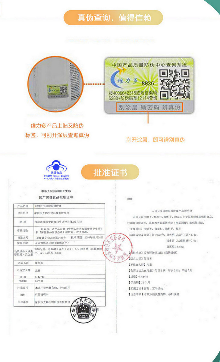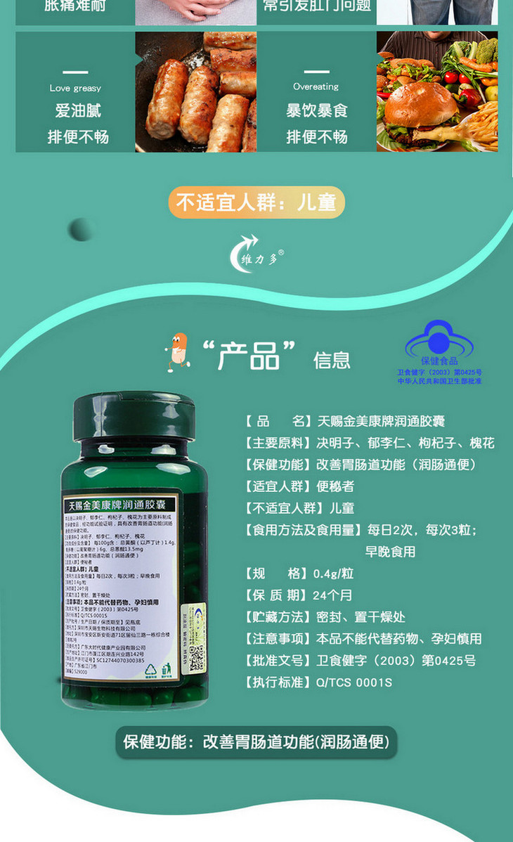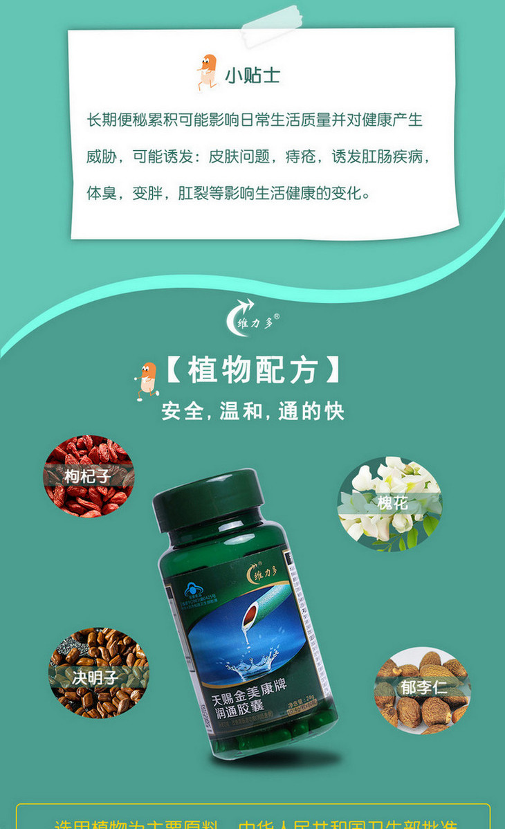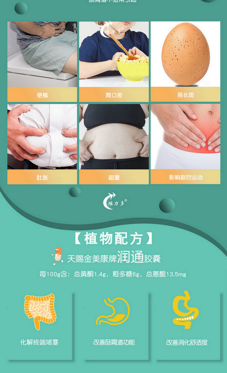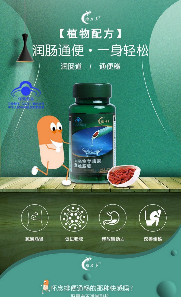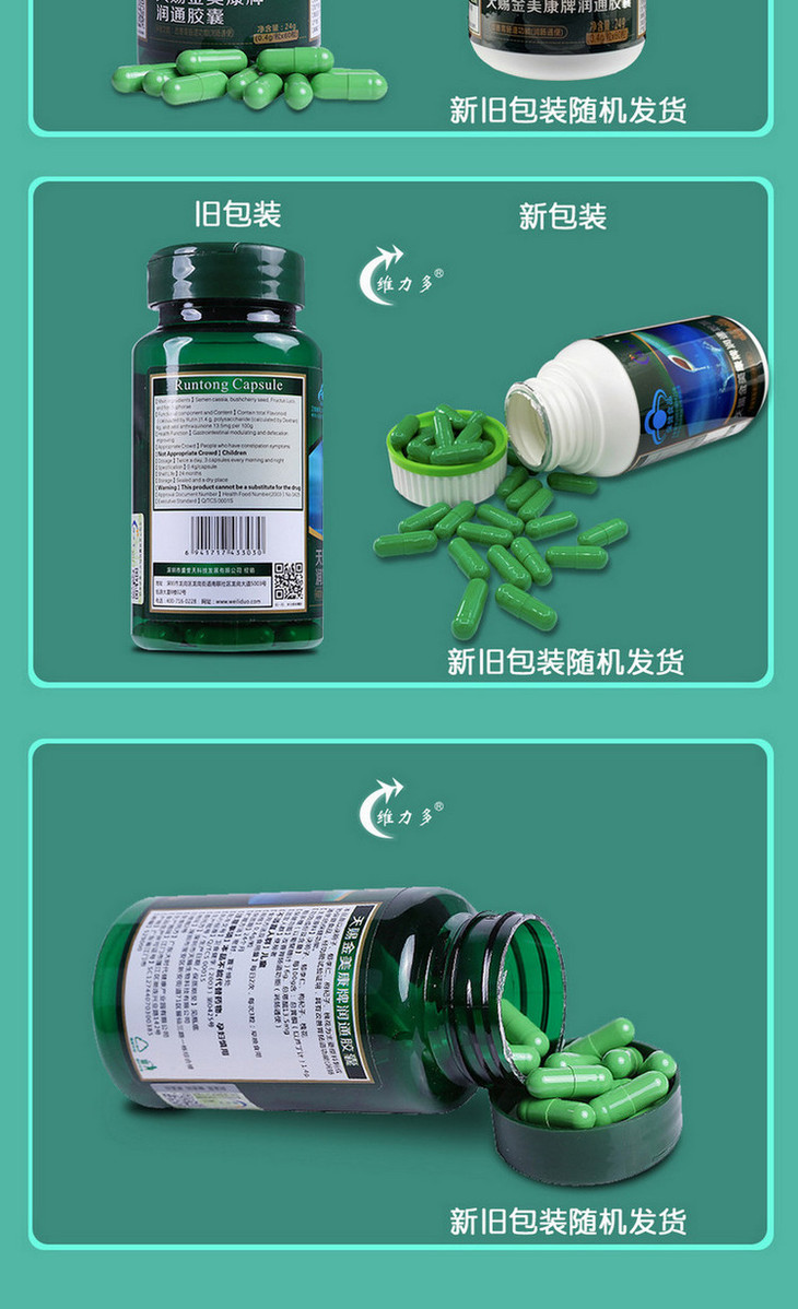 【一般贸易】维力多 润通胶囊 改善胃肠道功能(润肠通便)60粒*400mg