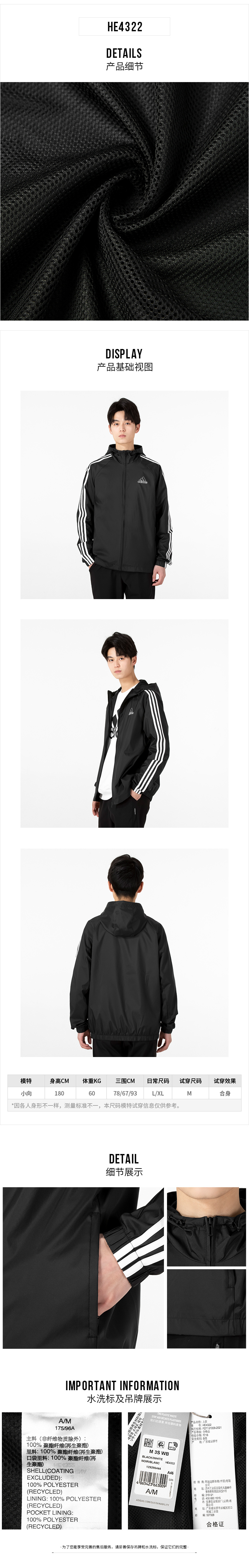 阿迪达斯外套男装2022春季新款运动服跑步连帽梭织防风夹克HE4322
