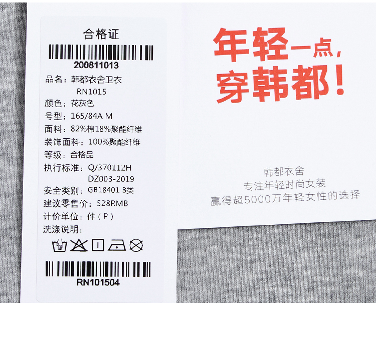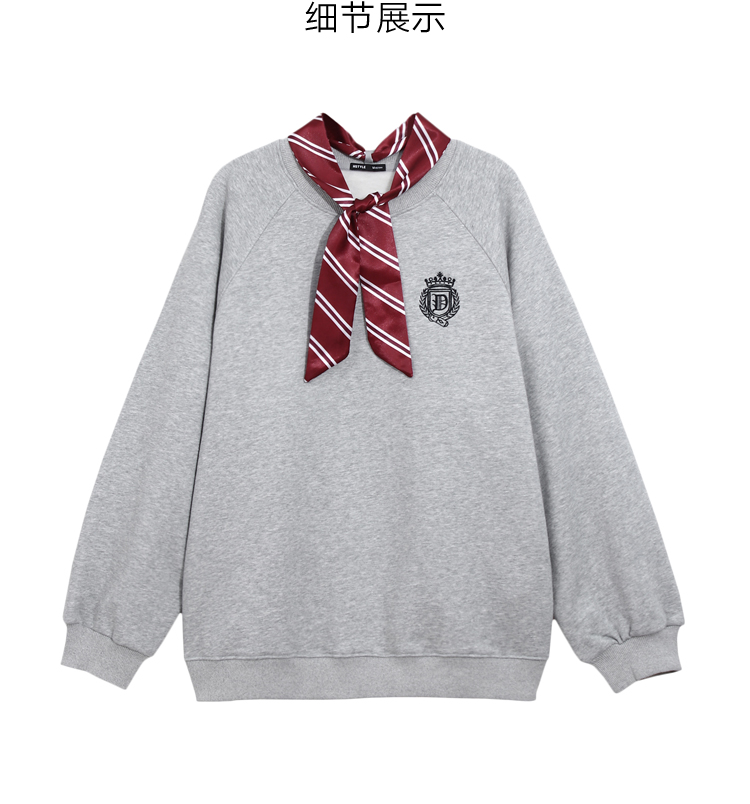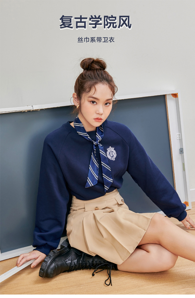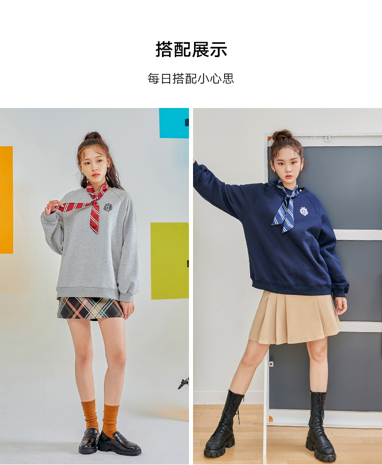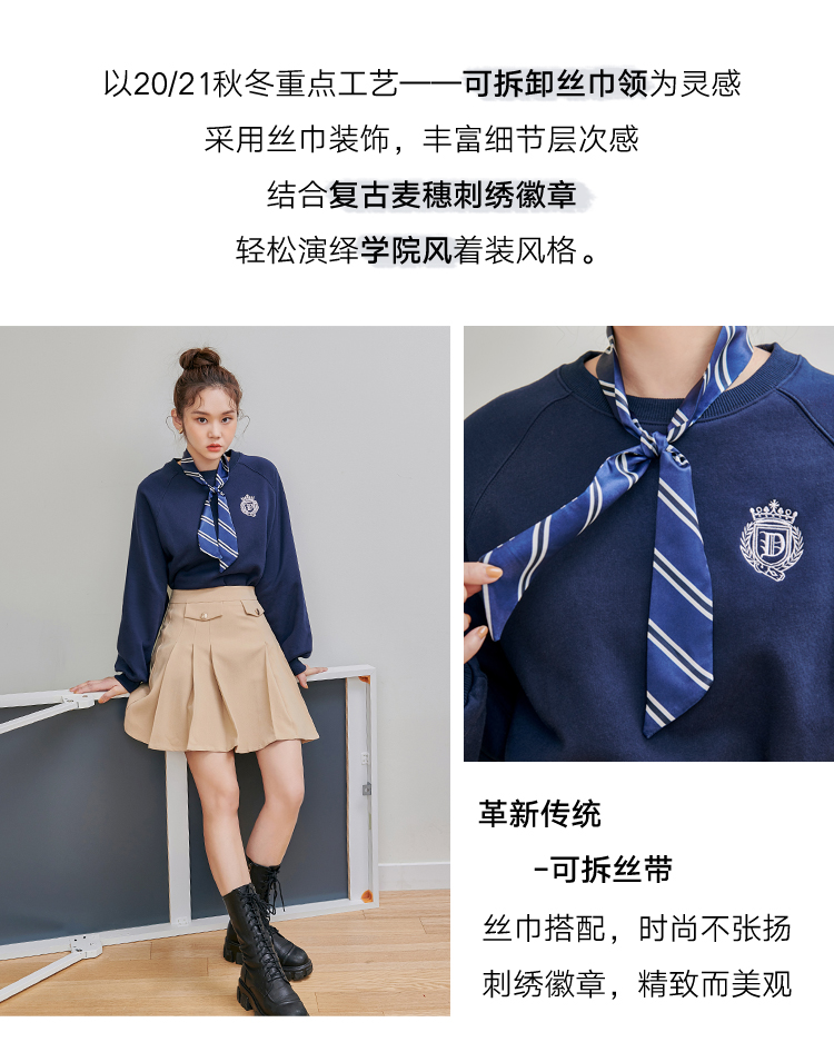 韩都衣舍2020秋季新款女装韩版学院风刺绣套头加绒圆领卫衣RN1015