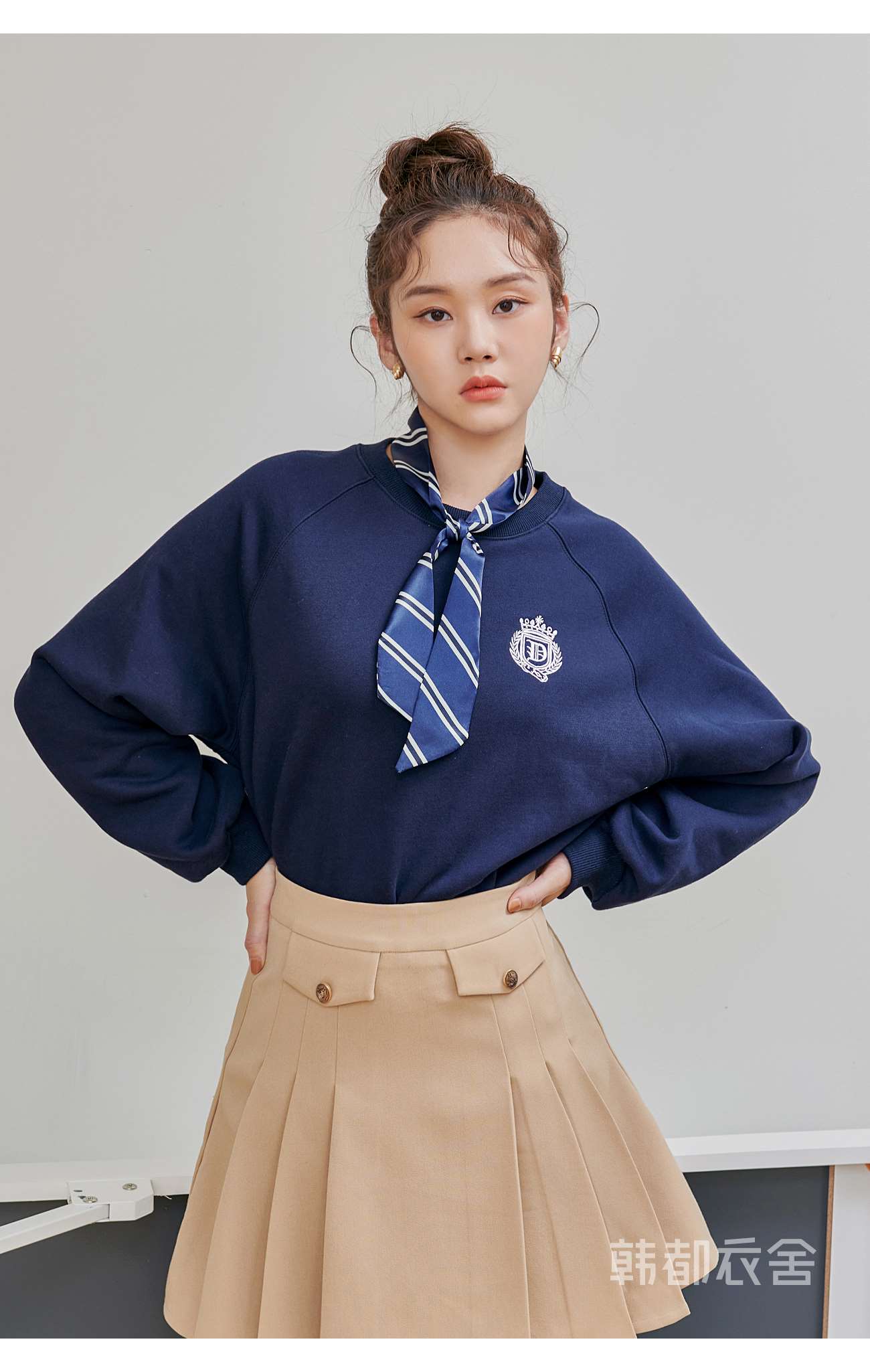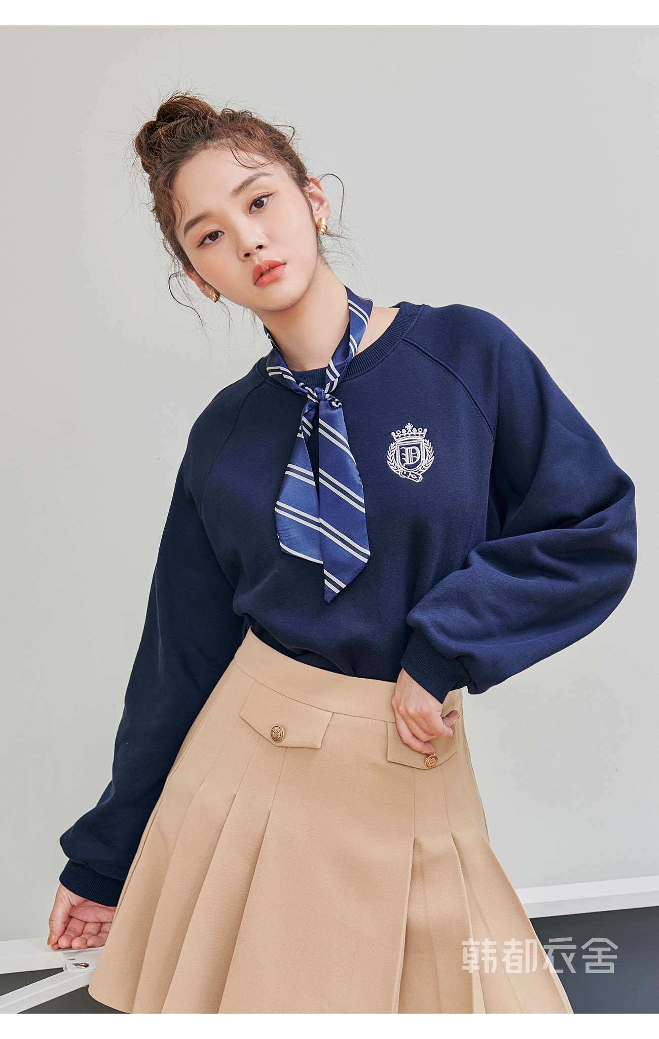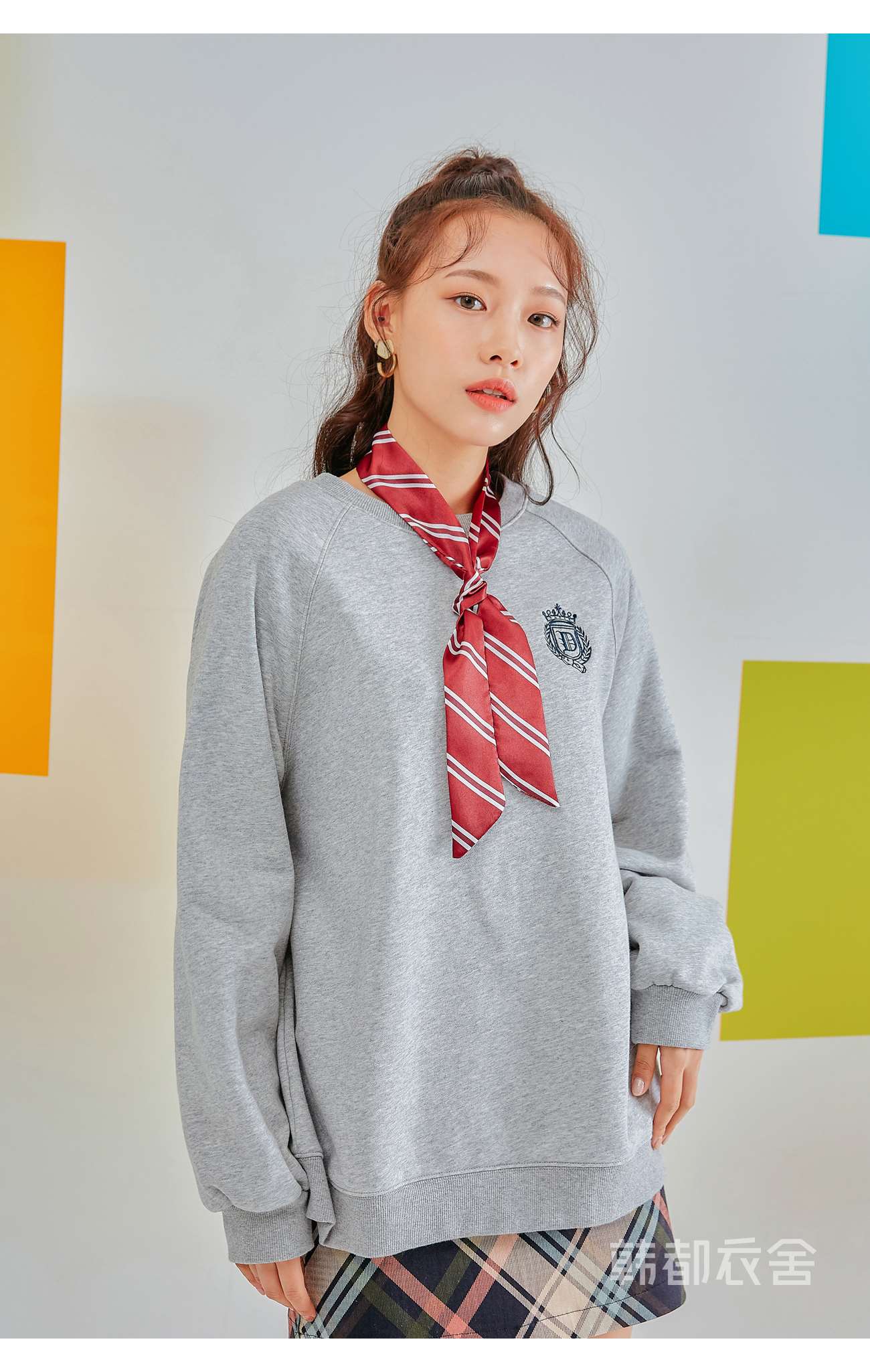 韩都衣舍2020秋季新款女装韩版学院风刺绣套头加绒圆领卫衣RN1015