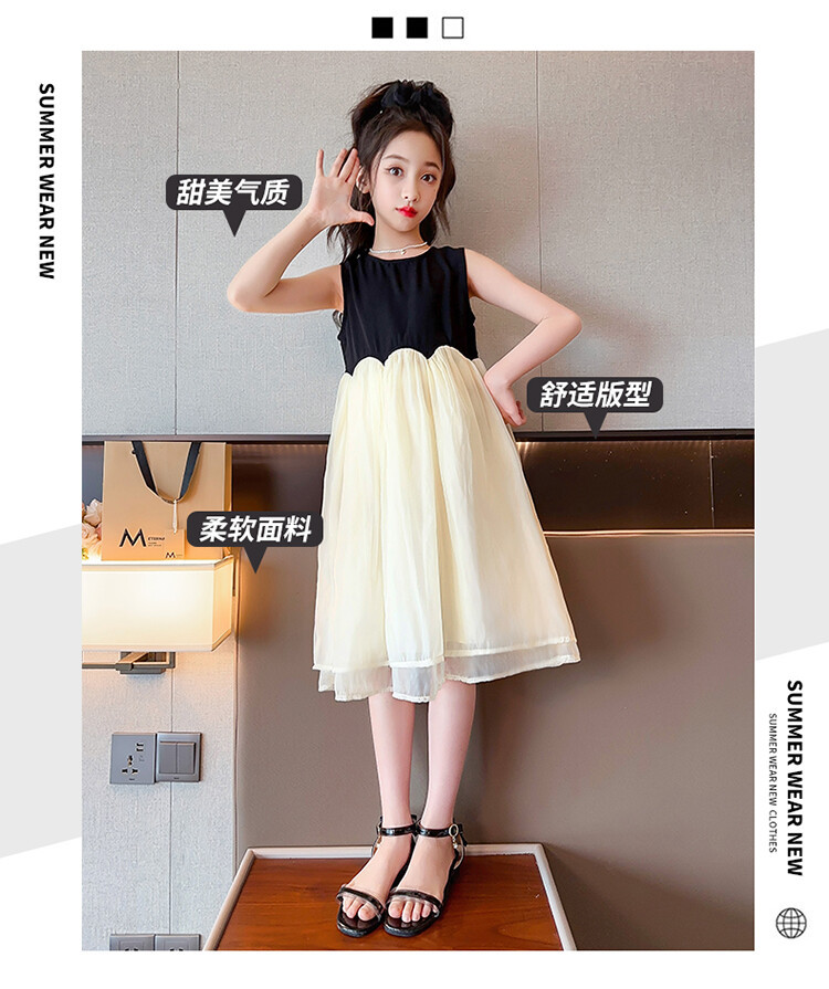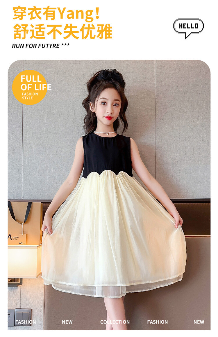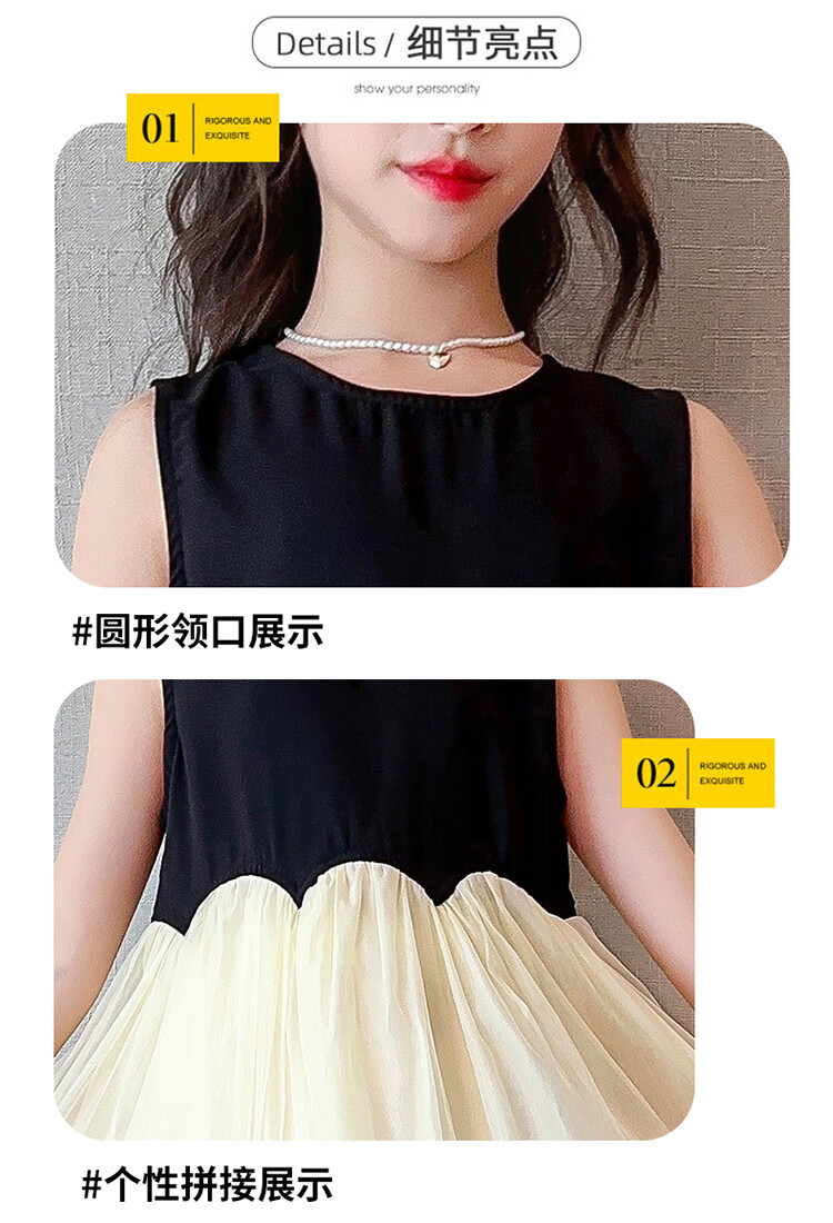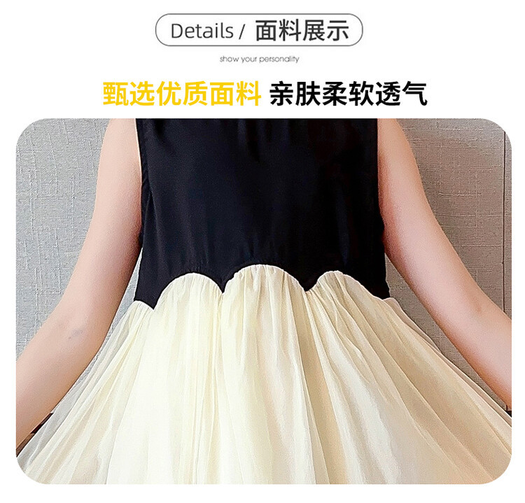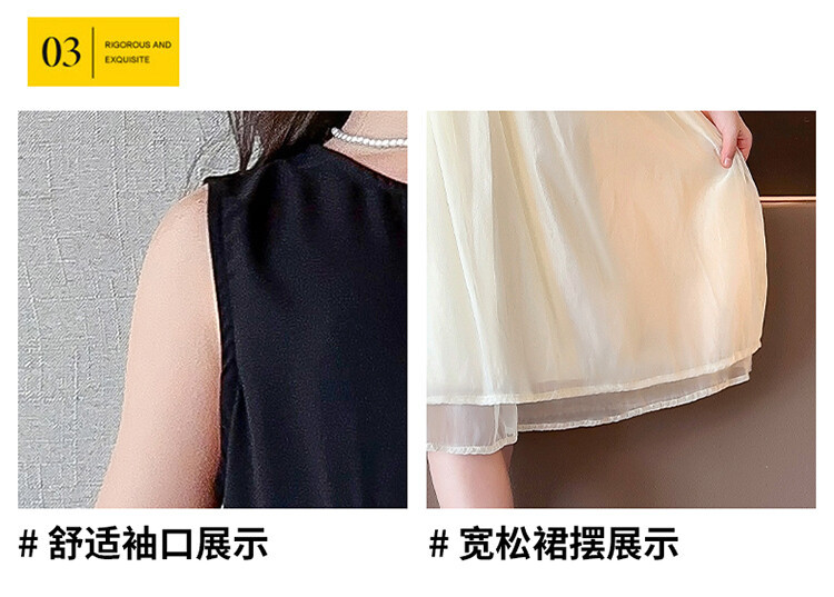 2582黑米拼接纱裙是上衣面料100棉+下摆聚酯纤维100