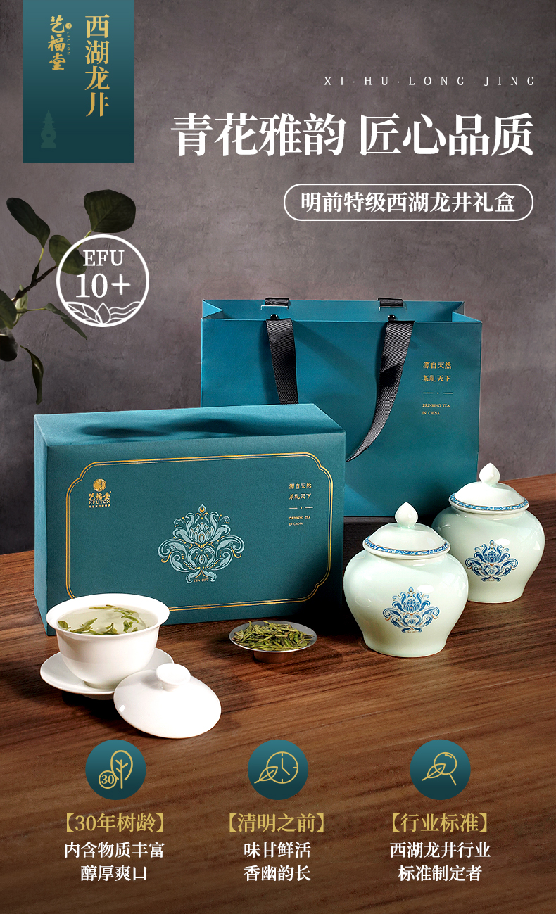 【新茶上市】艺福堂杭韵西湖龙井茶2025新茶青花雅韵礼盒150g/盒EFU10+