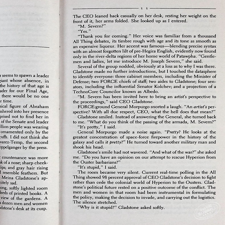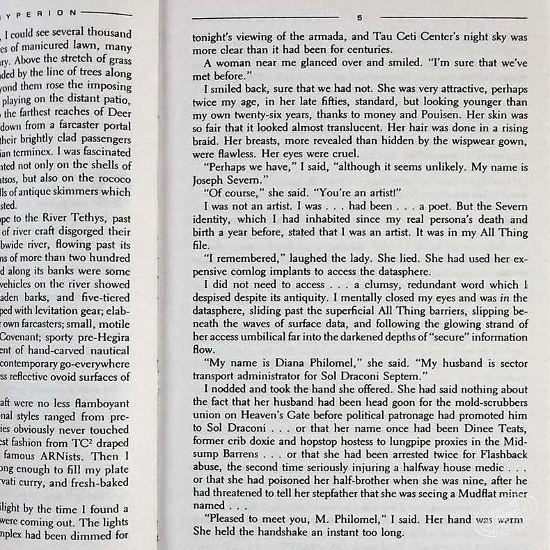 In the stunning continuation of the epic adventure begun in "Hyperion,"Simmons returns us to a far future resplendent with drama and invention. Onthe world of Hyperion, the mysterious Time Tombs are opening. And the secretsthey contain mean that nothing--nothing anywhere in the universe--will ever bethe same.