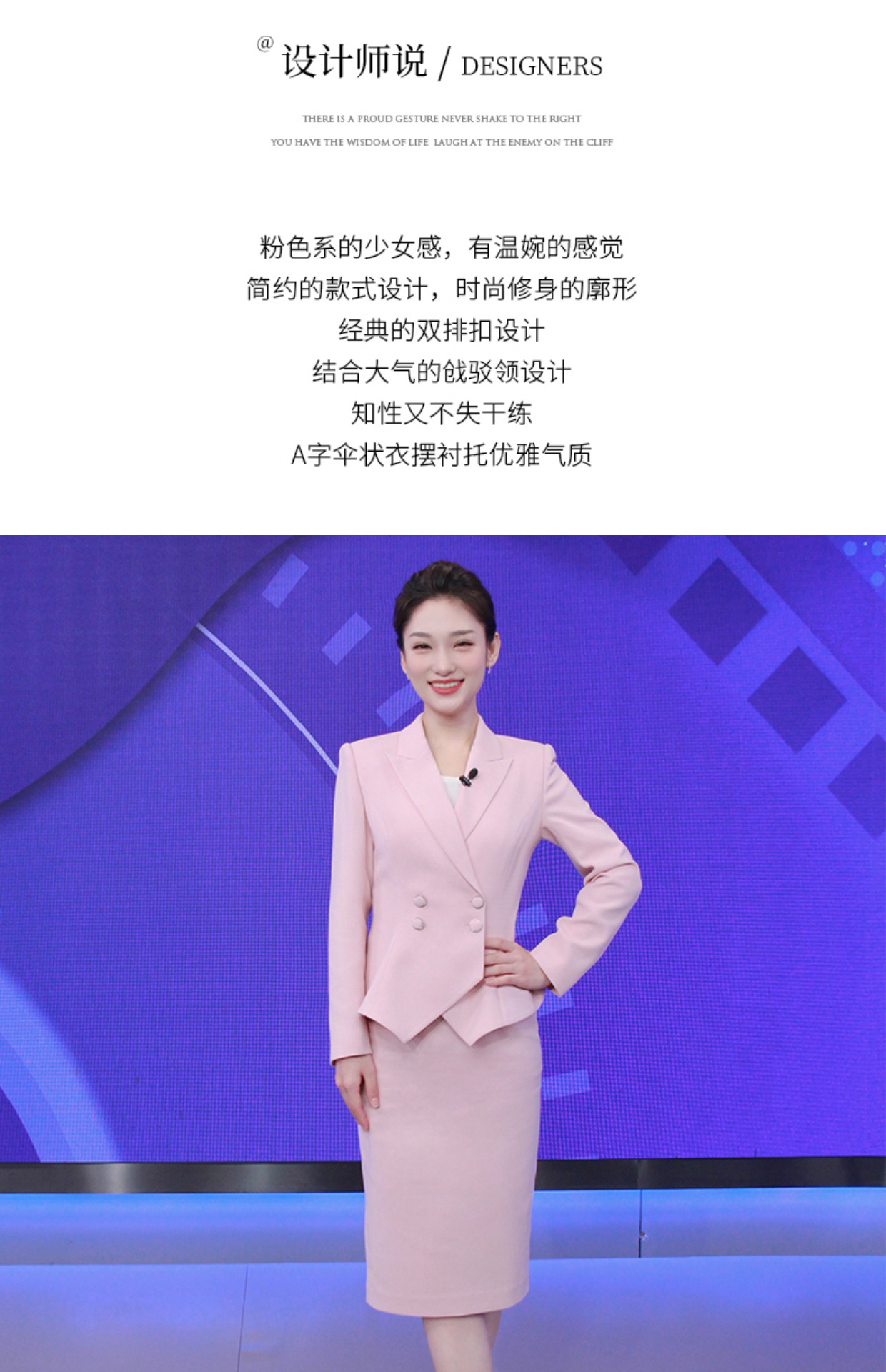 IWY/粉色小香风西装套裙女气质时尚职业装女神范播音主持人上镜工作服22CS2160
