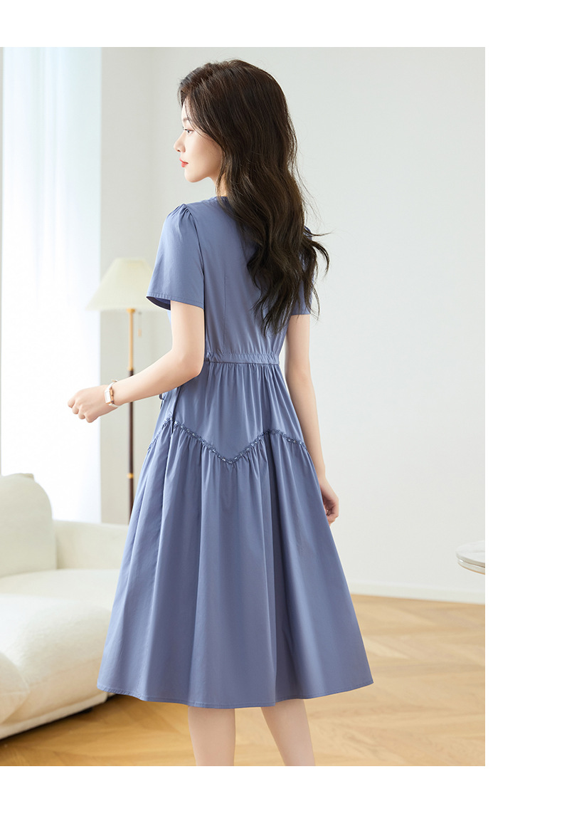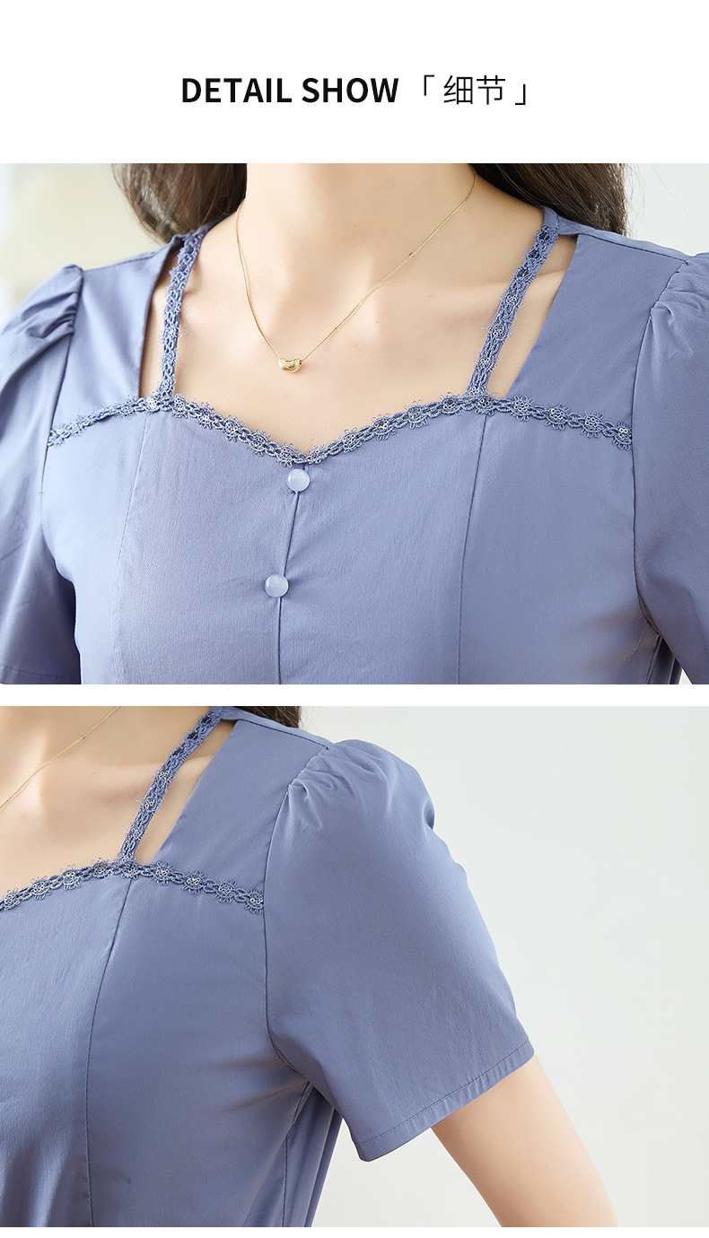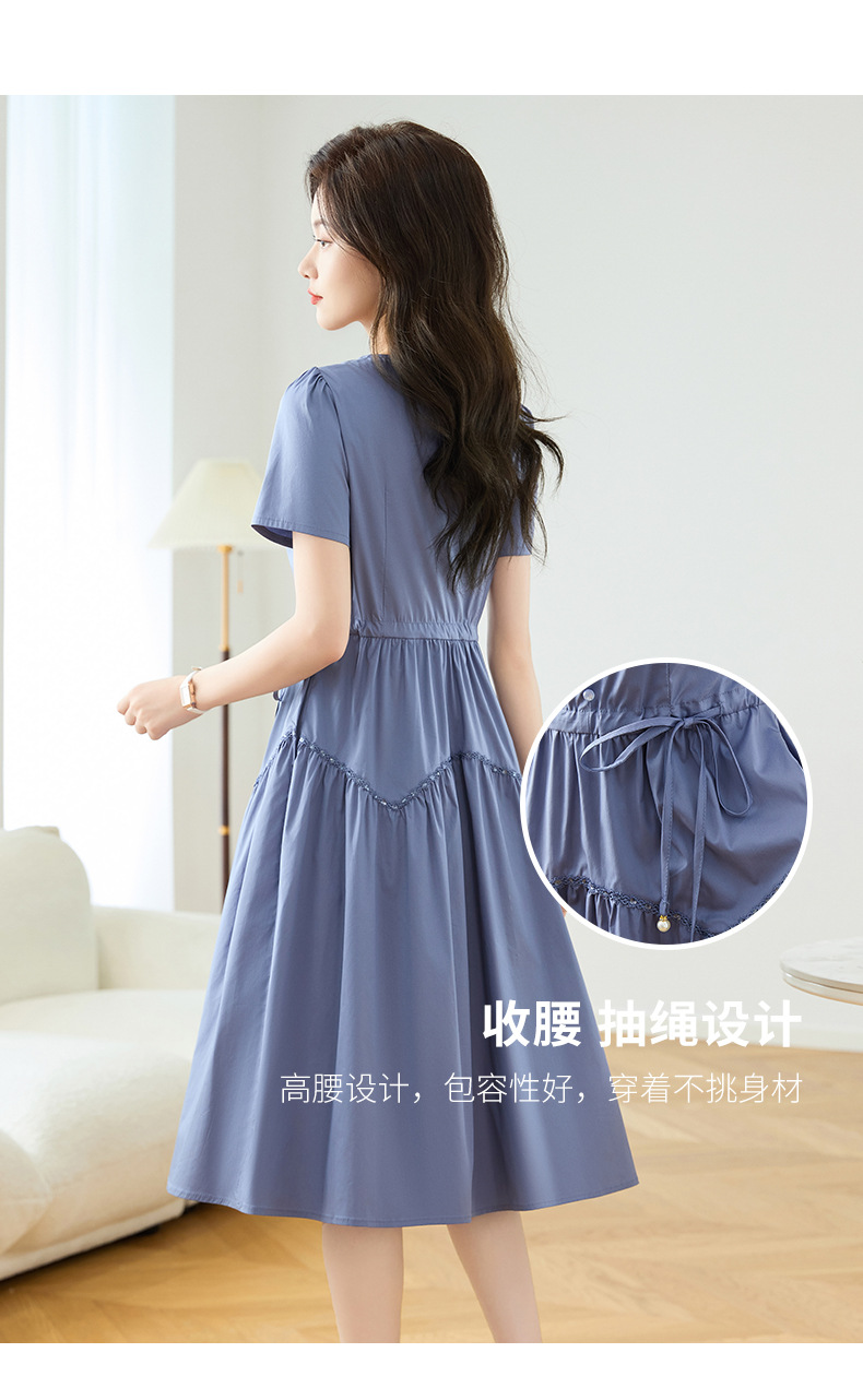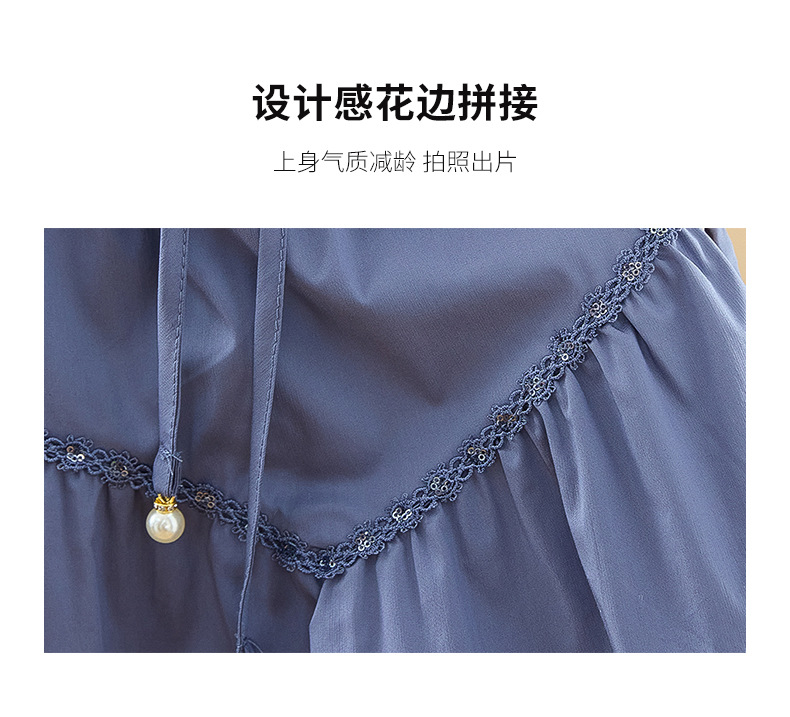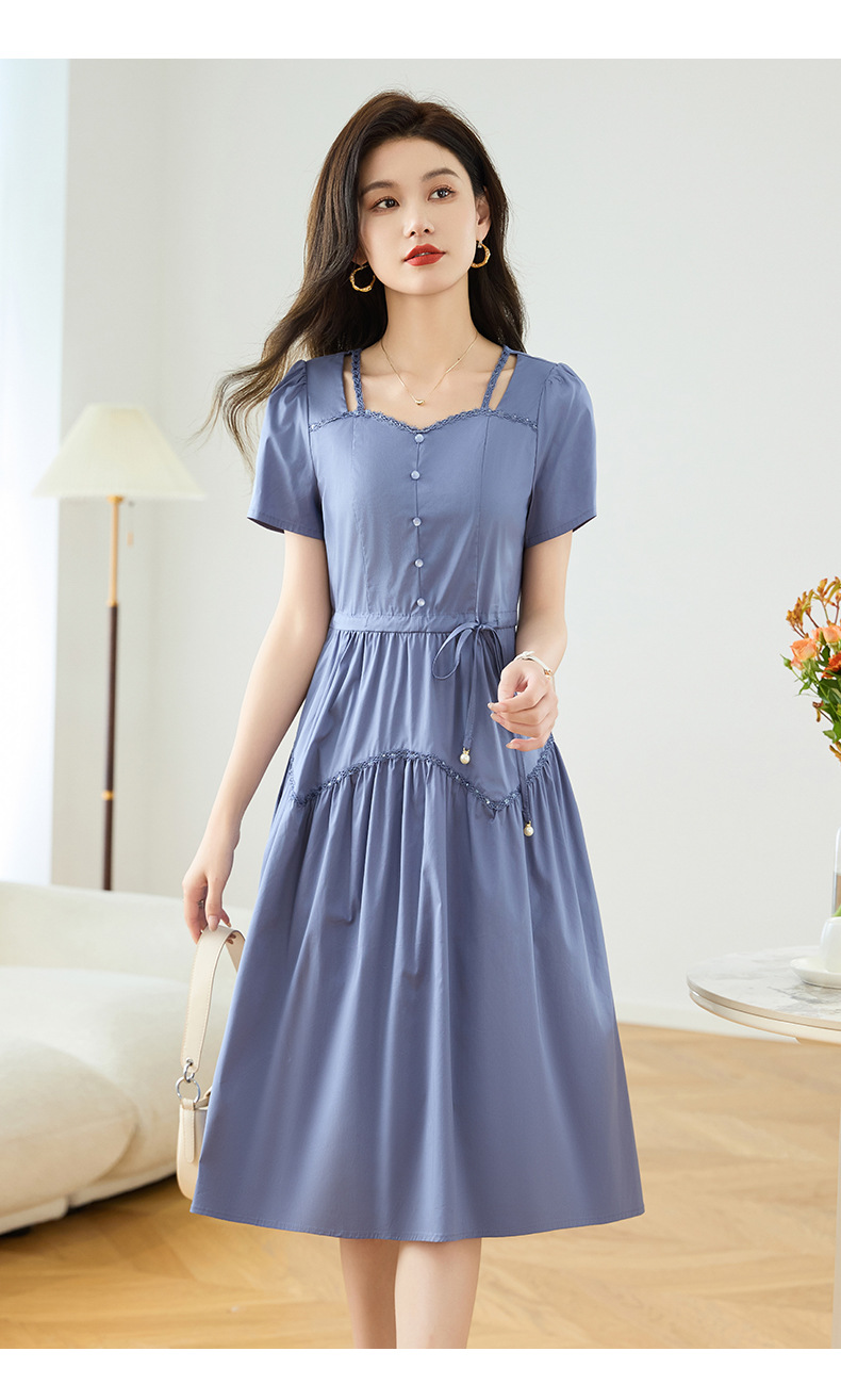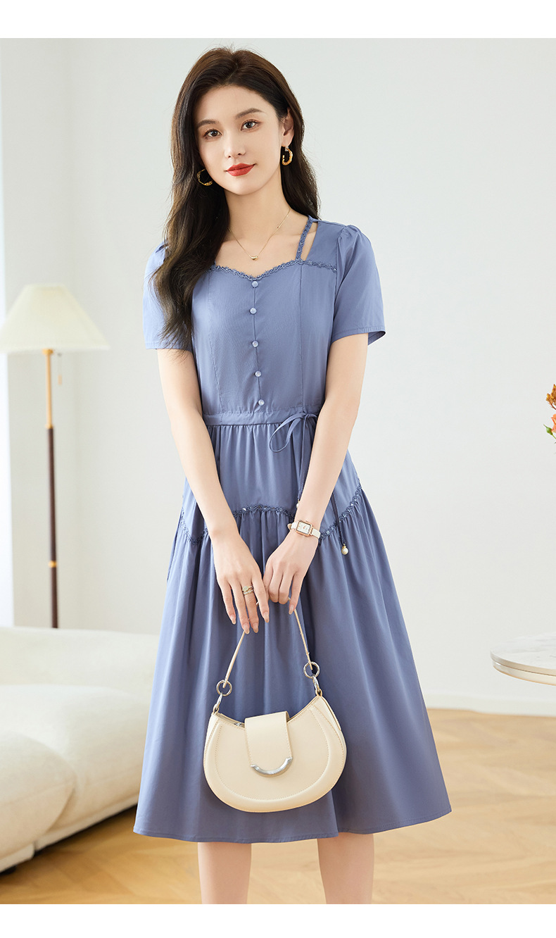 设计感花边拼结短袖裙,系带收腰中长裙QYM-TB-FD1681-Y