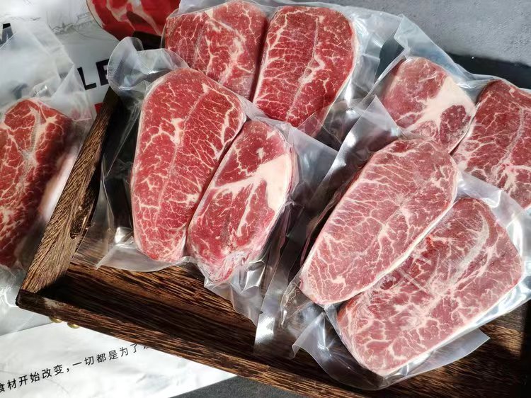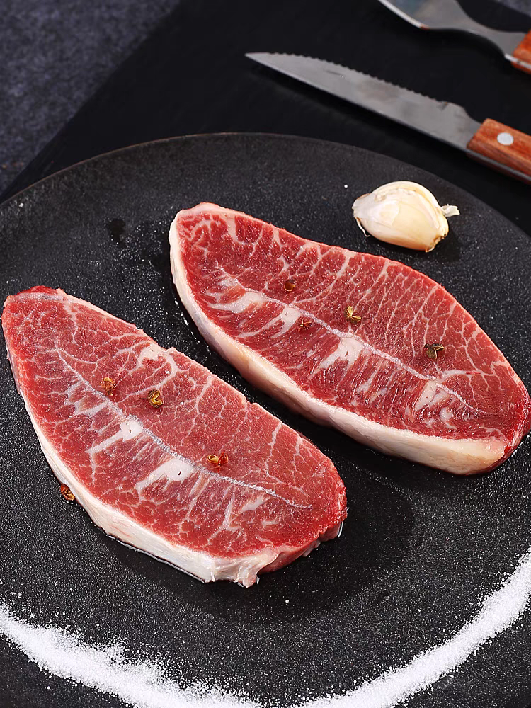 我们的原切霜降和牛板腱牛排有着超越级别的雪花