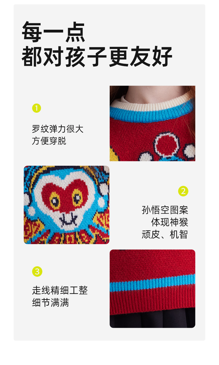 【品牌优选】儿童”悟空“趣味提花毛衣 PDMY2435