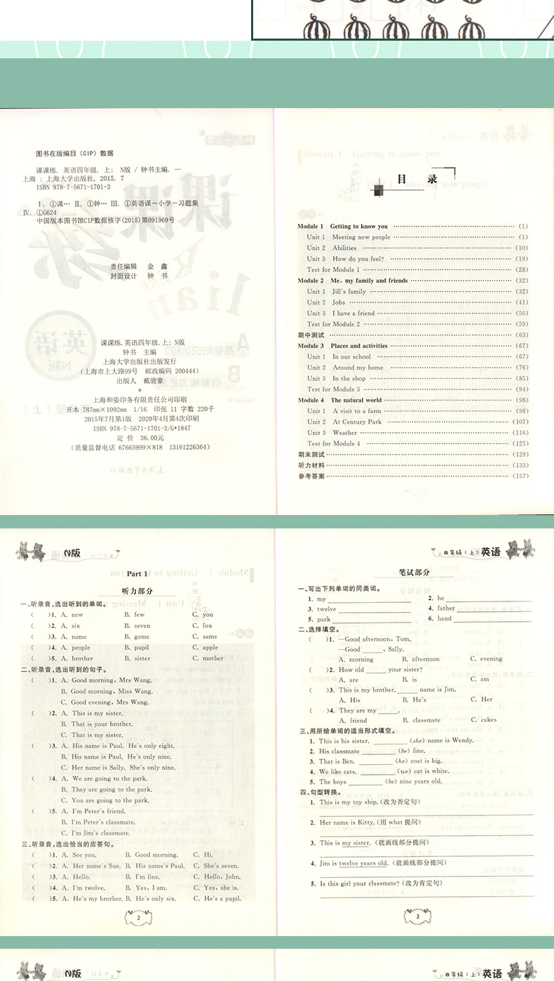 钟书金牌课课练 全新修订版 四年级上 英语N版 4年级上册/第一学期 上海小学教辅课后配套练习期中期末单元测试训练