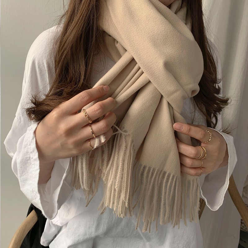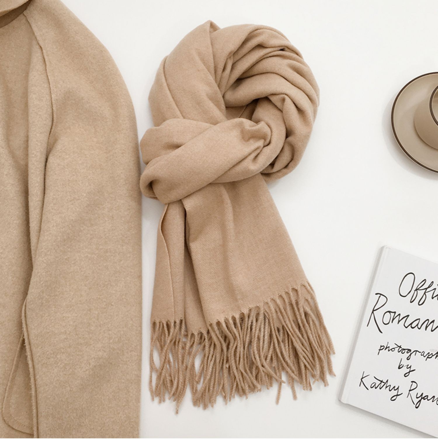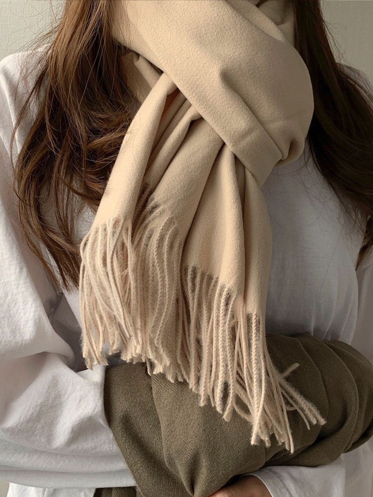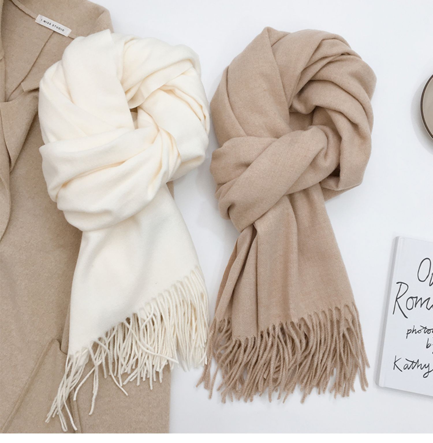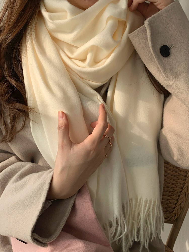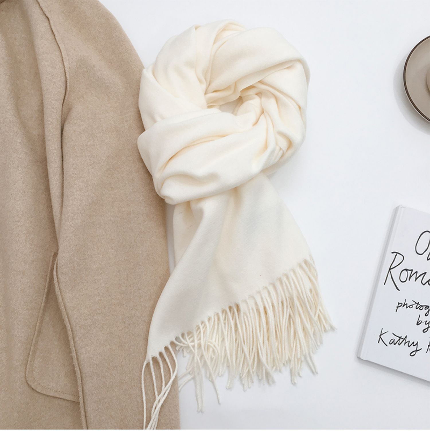 【冬季必备!羊毛羊绒围巾女】冬季纯色新款白色披肩围巾秋冬男士仿羊绒围巾,为你的衣橱增添时尚必备单品。ry