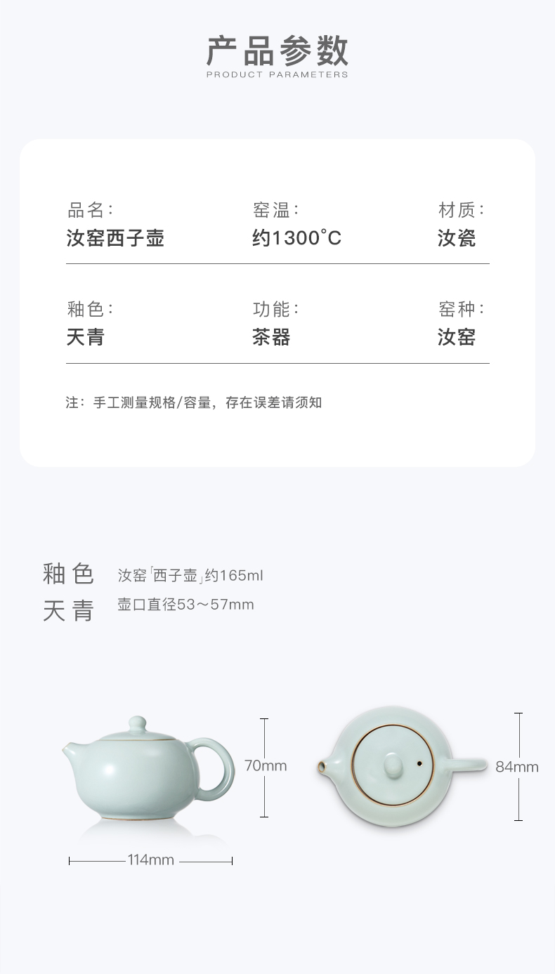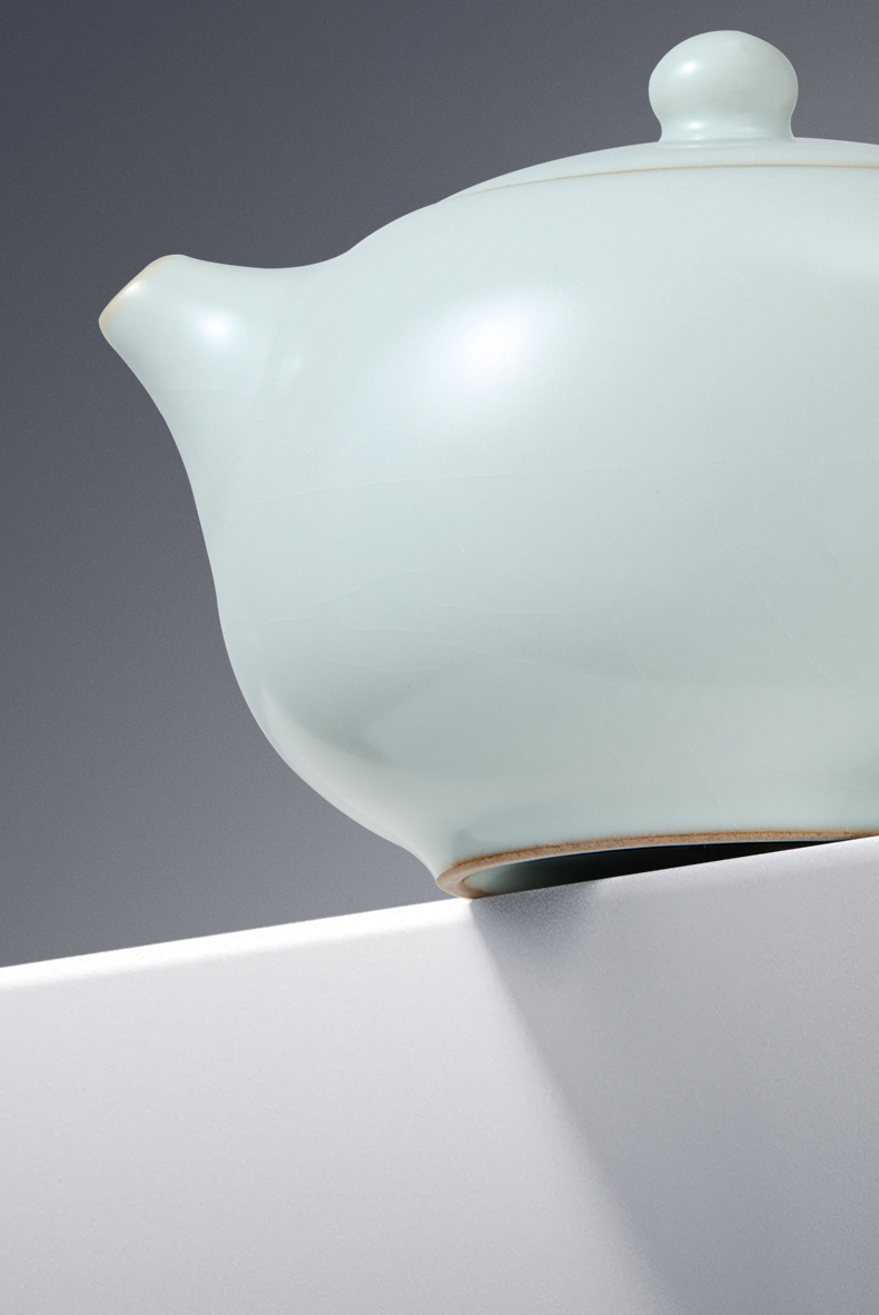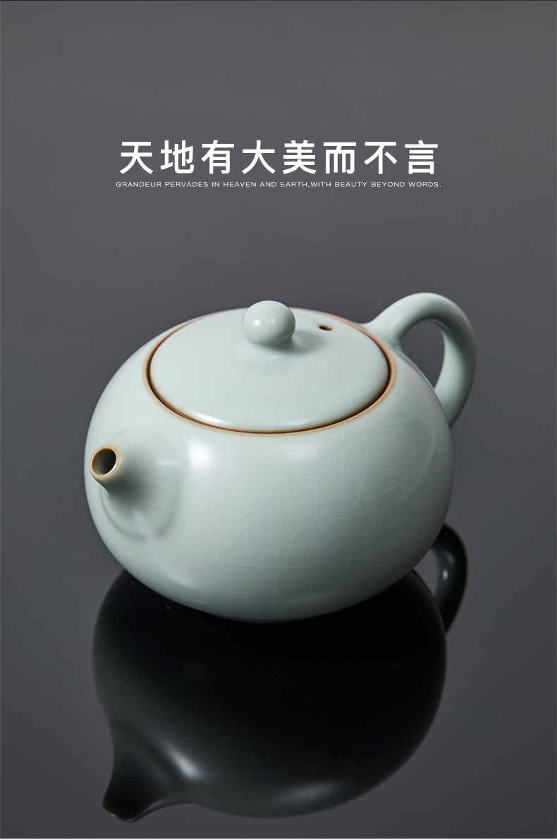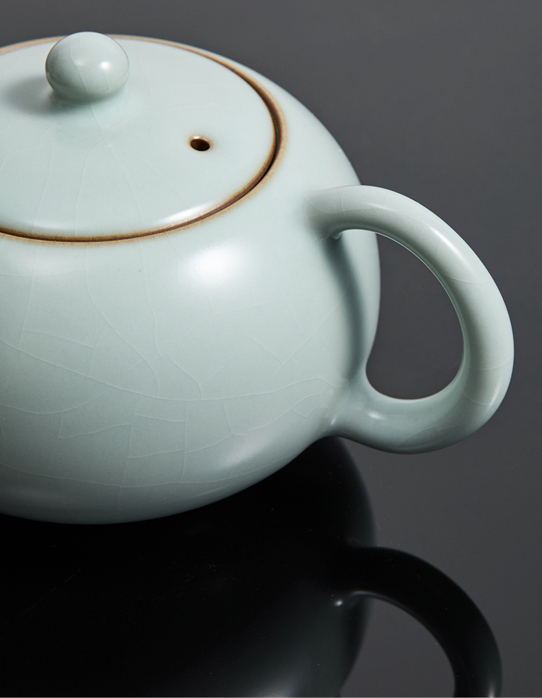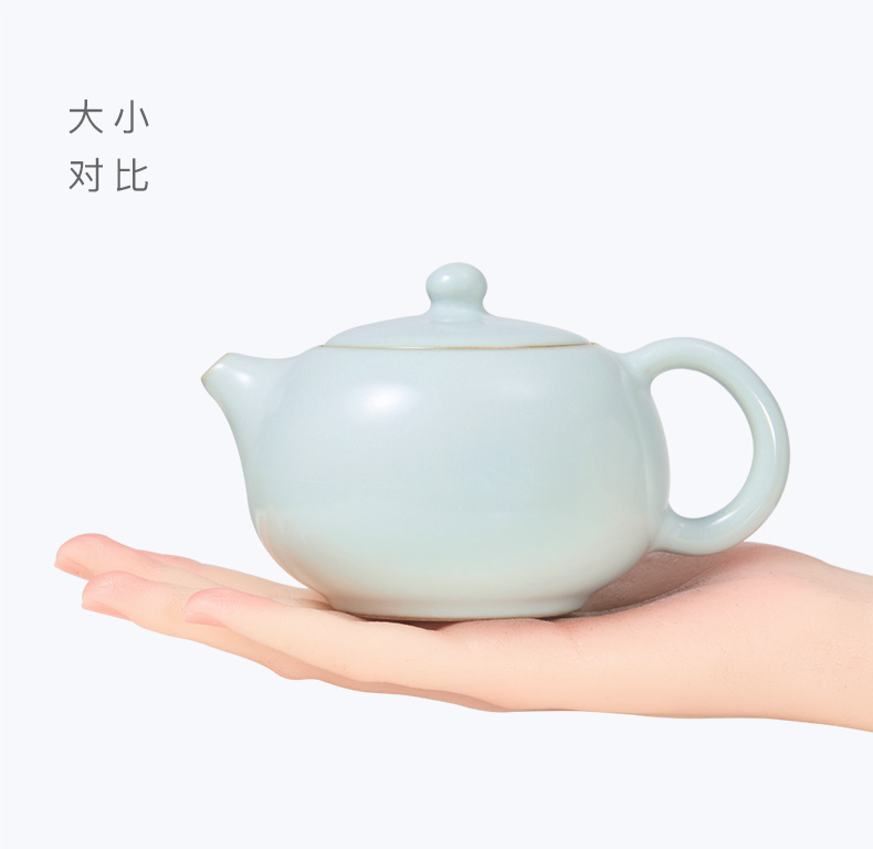 汝窑小坐侧把壶小套装 (一壶二杯)