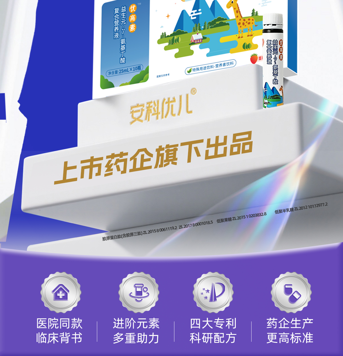 新优高素水 γ-氨基丁酸胶原三肽 营养饮品益生元儿童钙铁锌