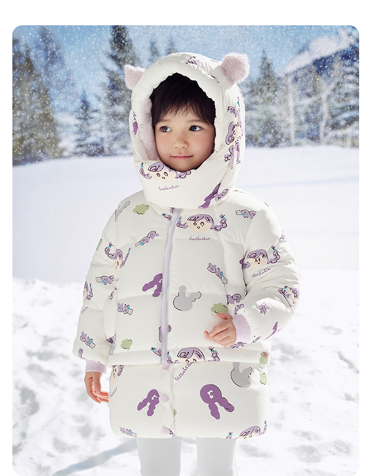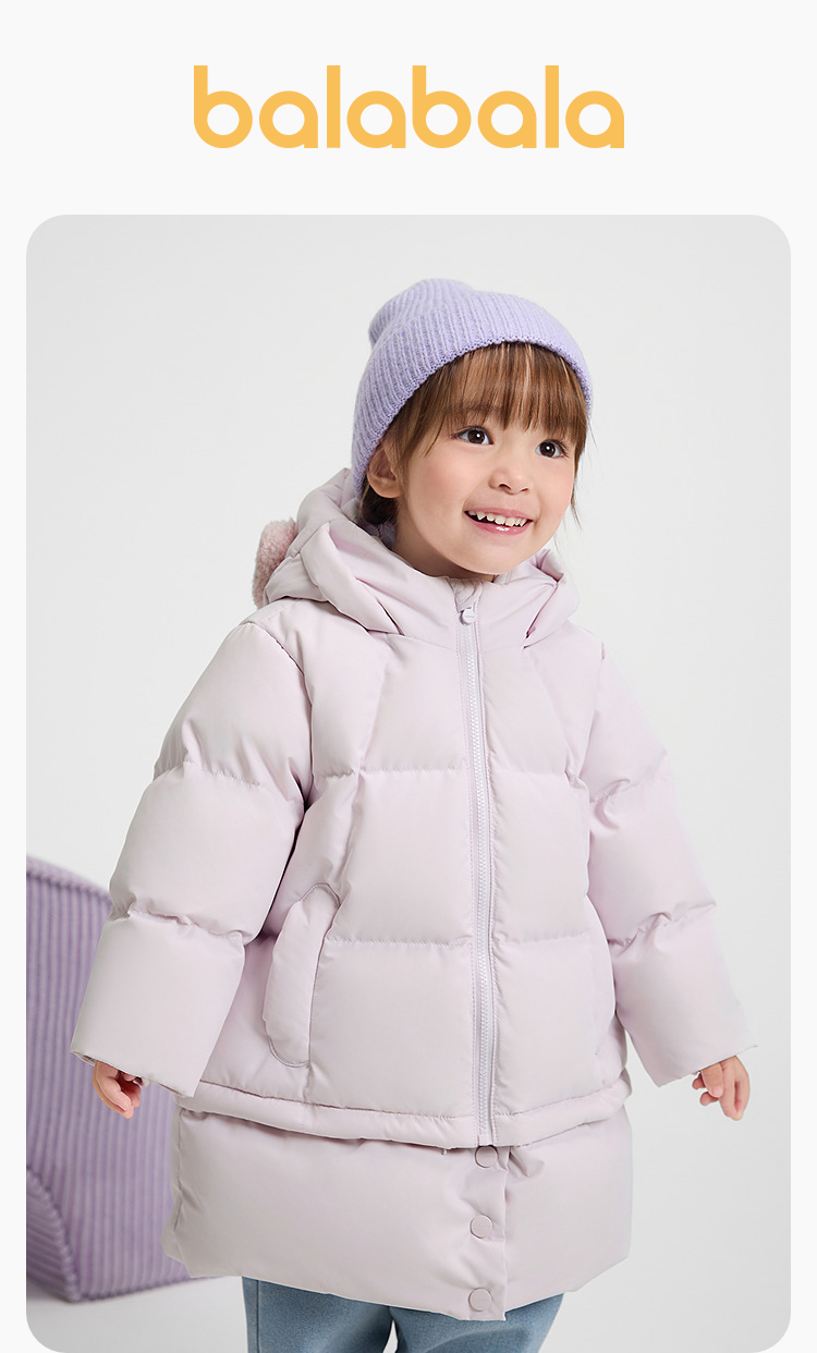 【商场同款】巴拉巴拉女童羽绒服保暖连帽外套2025新款冬装带口罩