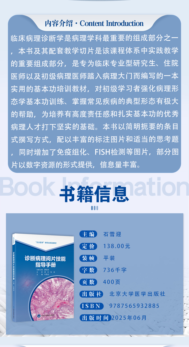 书名:诊断病理阅片技能指导手册 北大医学研究生规划教材